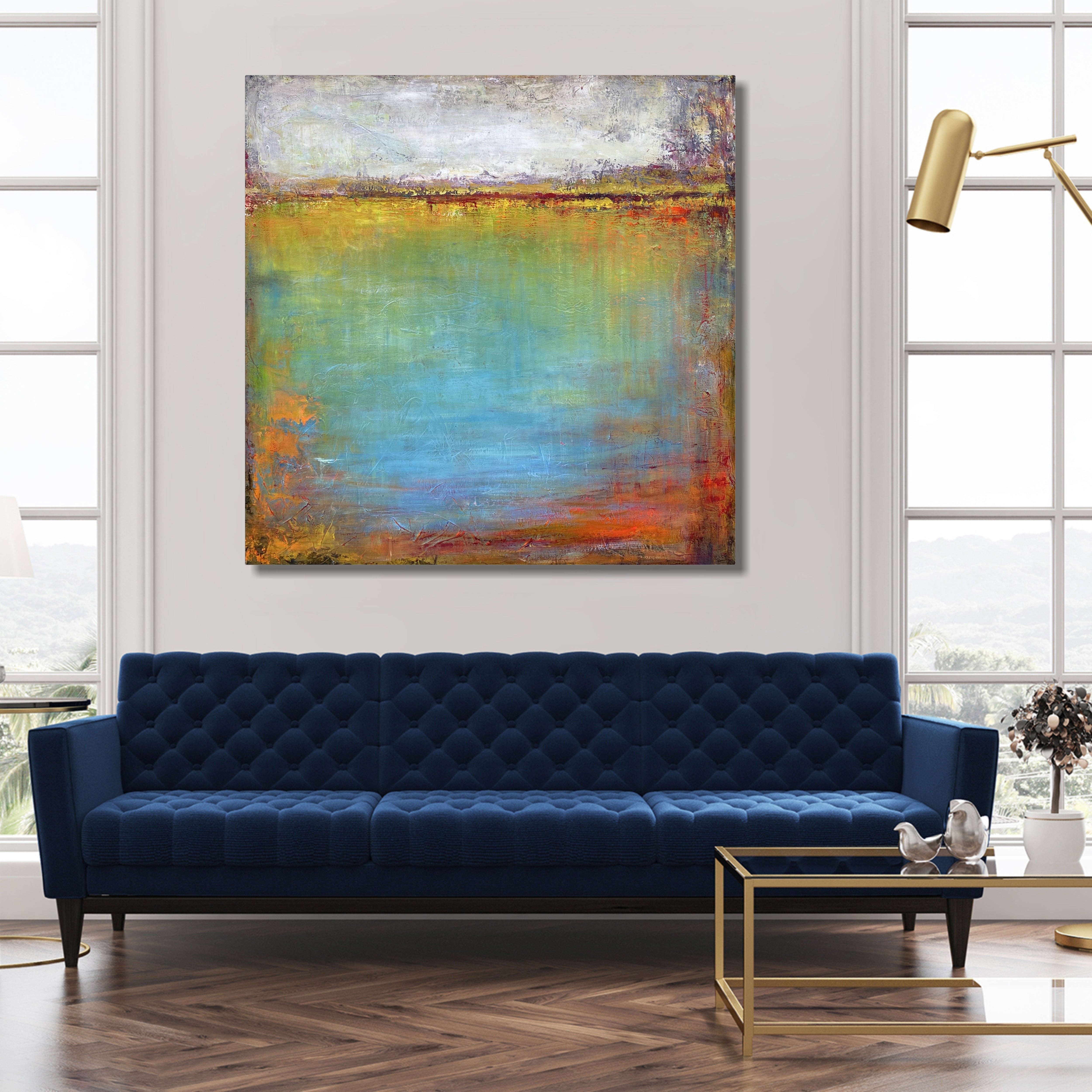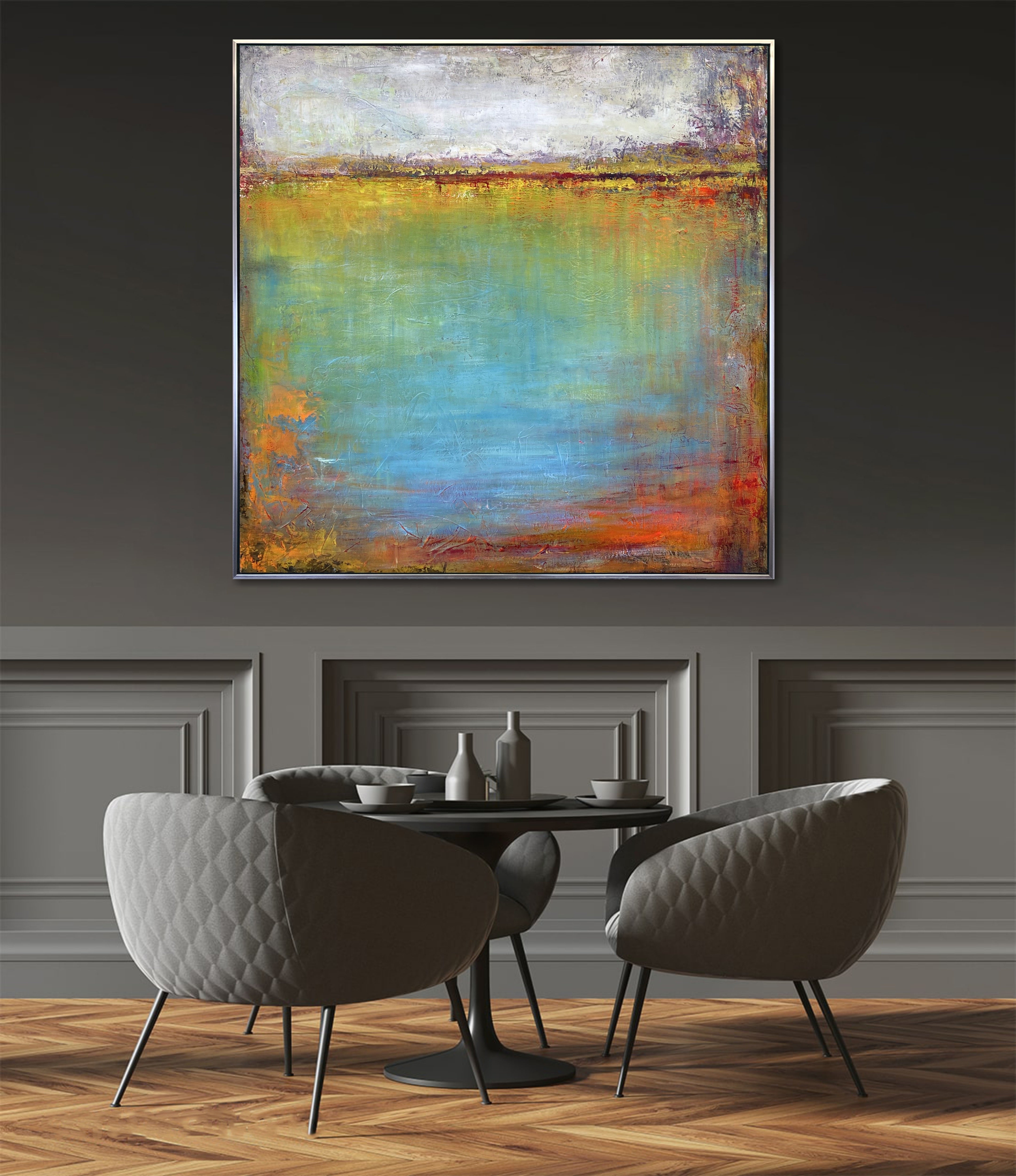 Abstract Landscape Painting on Canvas Serene Blue and Green Horizon Art Acrylic Impressionist Painting Textured Wall Decor for Living Room | TRANQUIL MIRAGE | Trend Gallery Art Great Britain – Trendgallery.co.uk