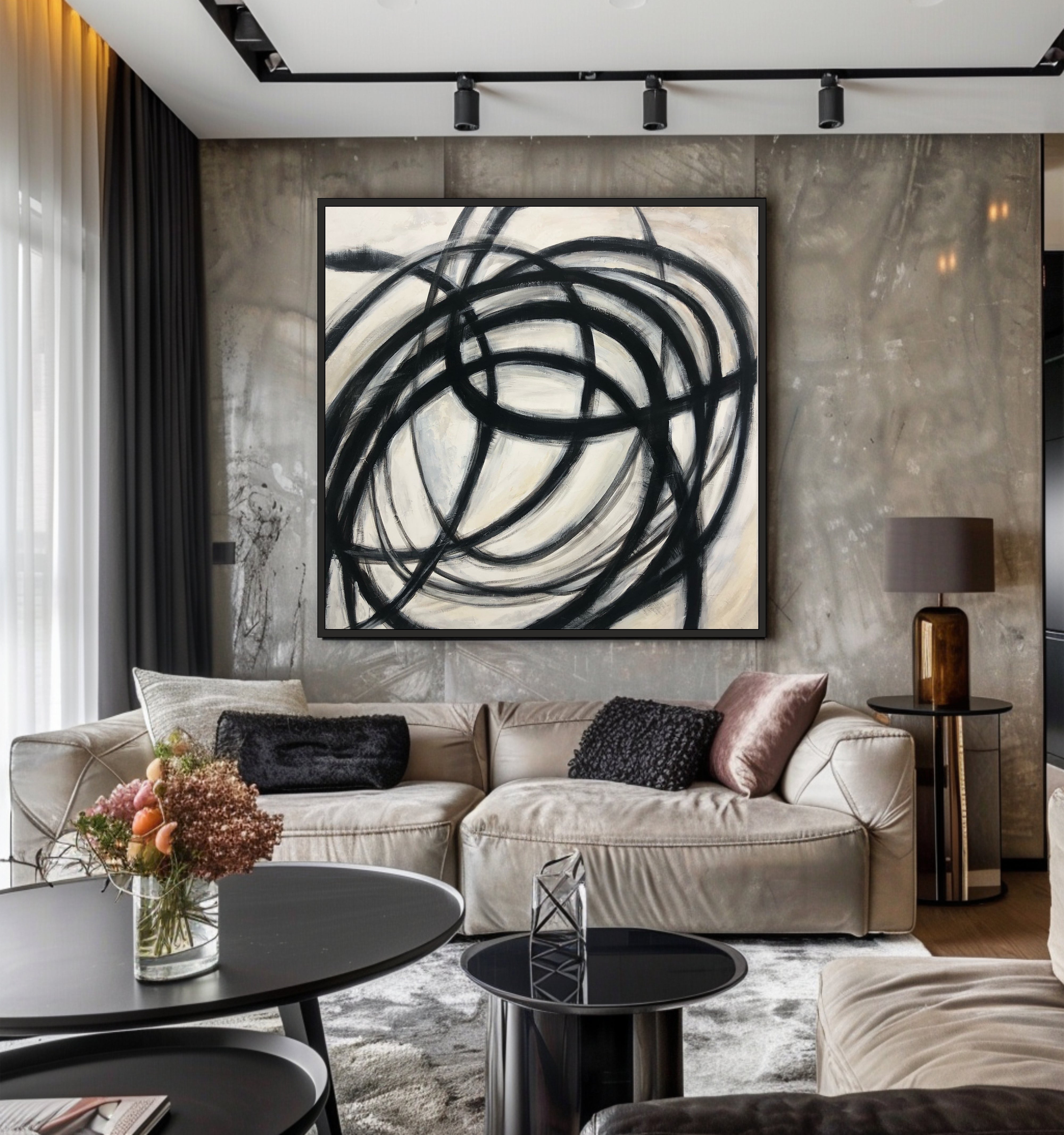 Black And White Oil Painting Canvas Abstract Painting Canvas Abstract Art Original Artwork | WHIRL OF SHADOWS | Trend Gallery Art Great Britain – Trendgallery.co.uk