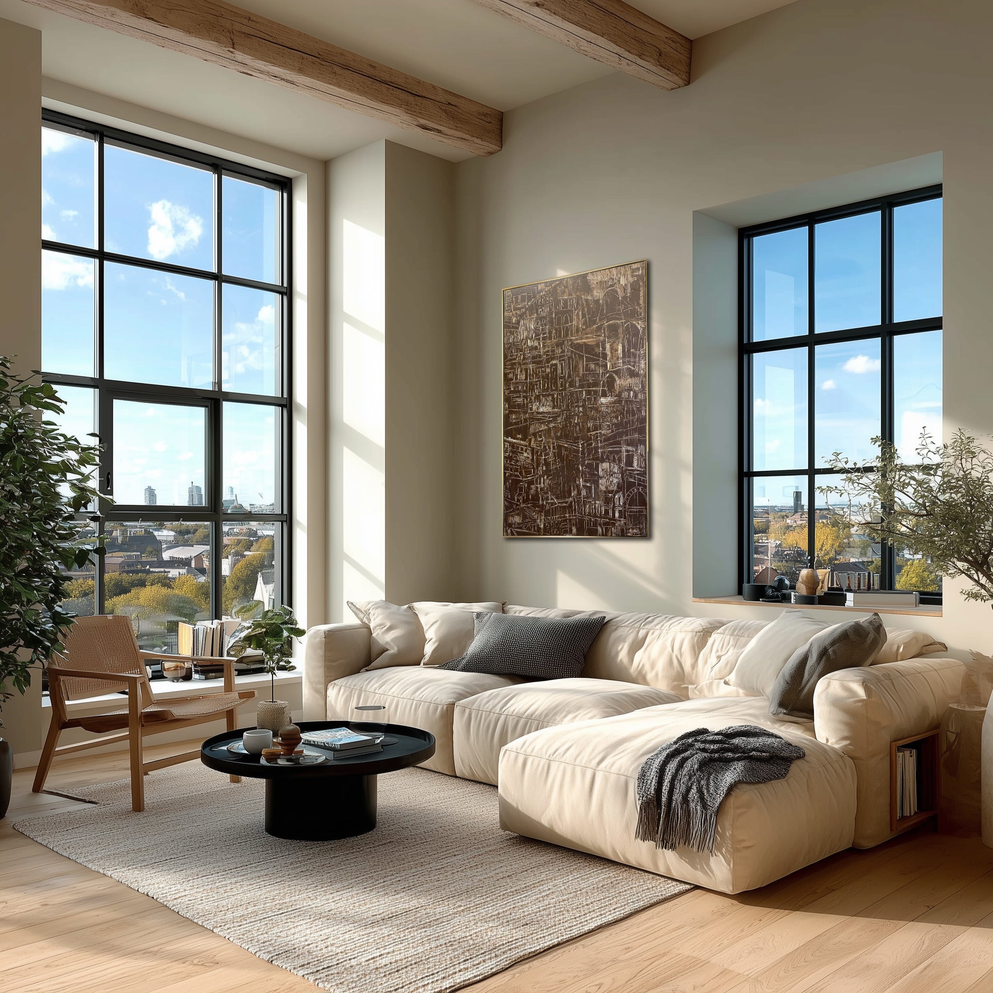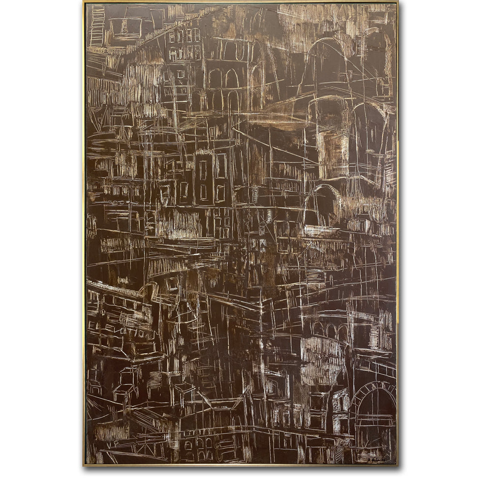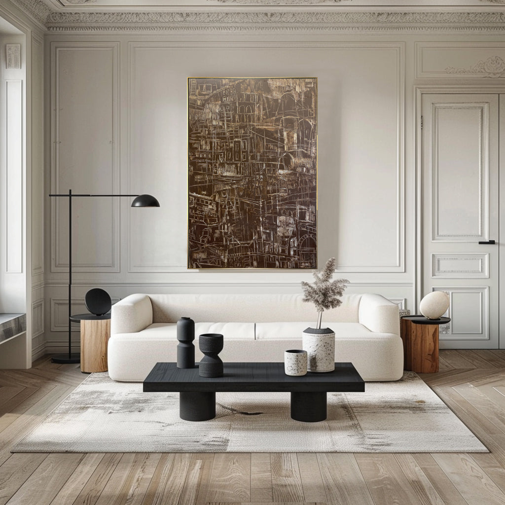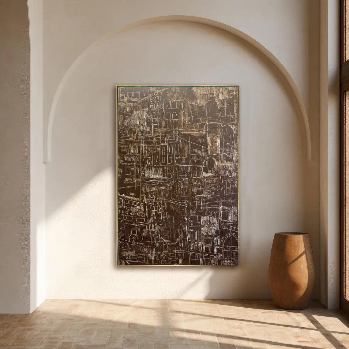 Abstract city painting, textured geometric wall art, urban canvas artwork, minimalist office decor | ECHO OF THE CITY | Trend Gallery Art Great Britain – Trendgallery.co.uk