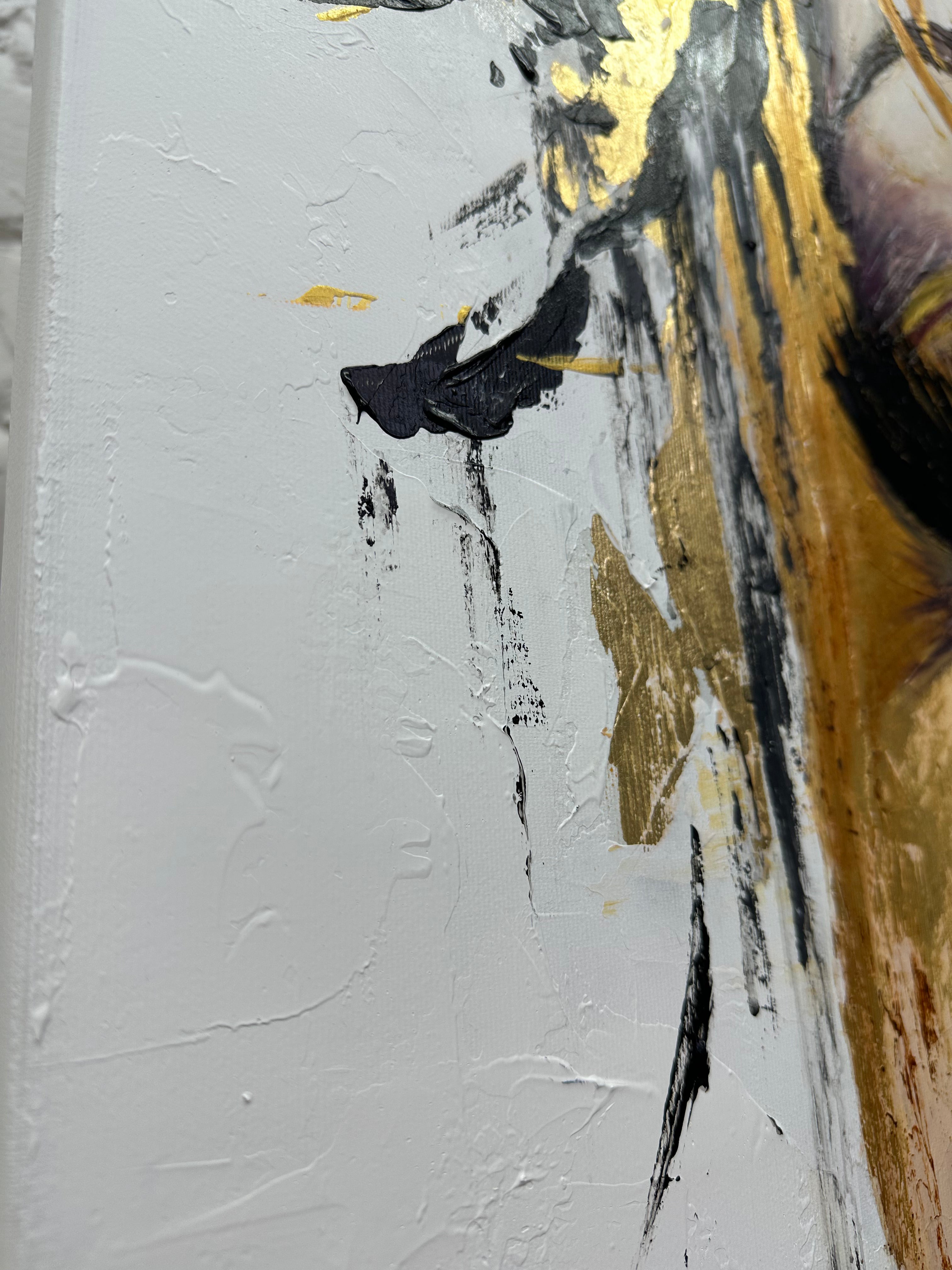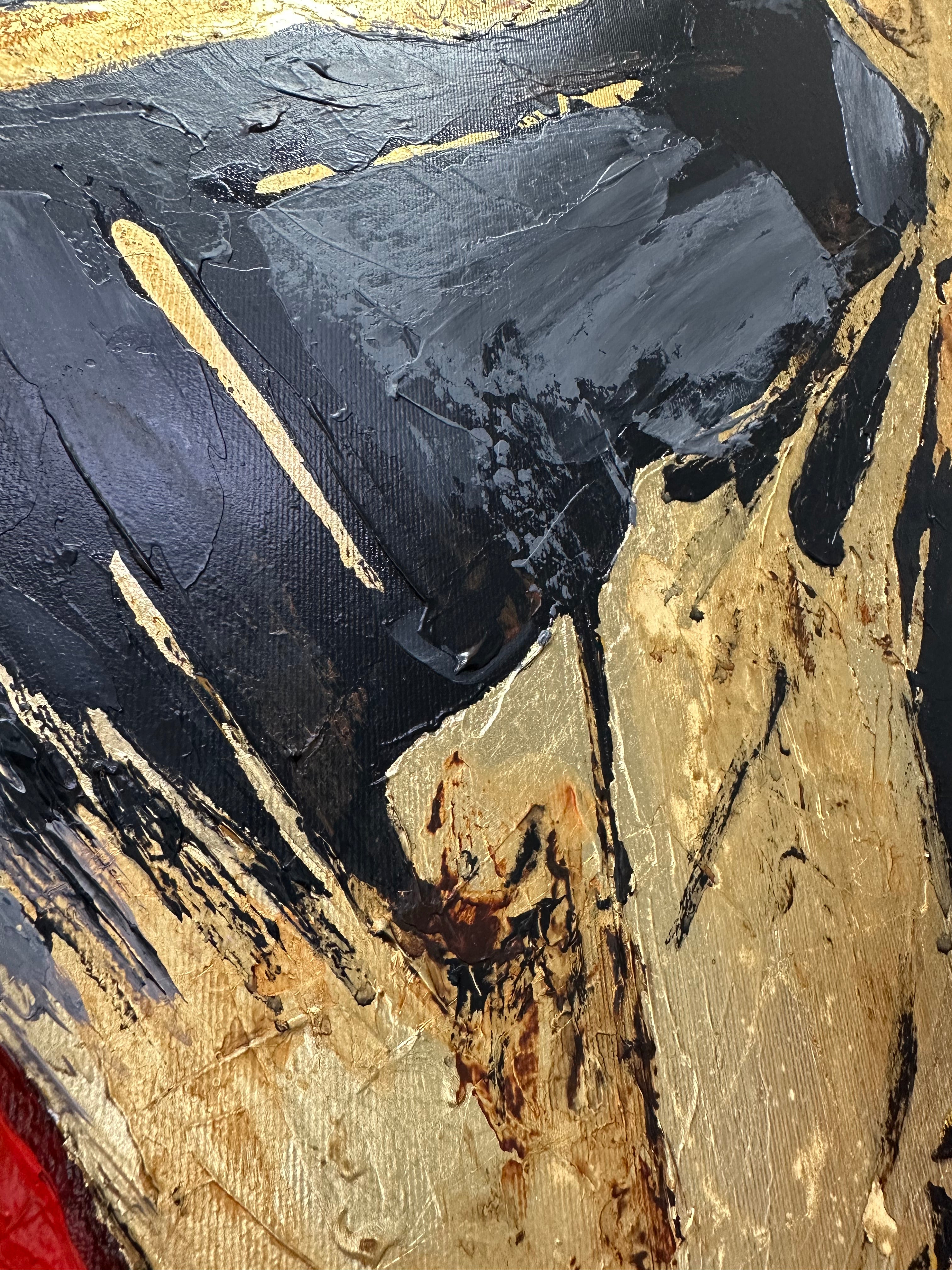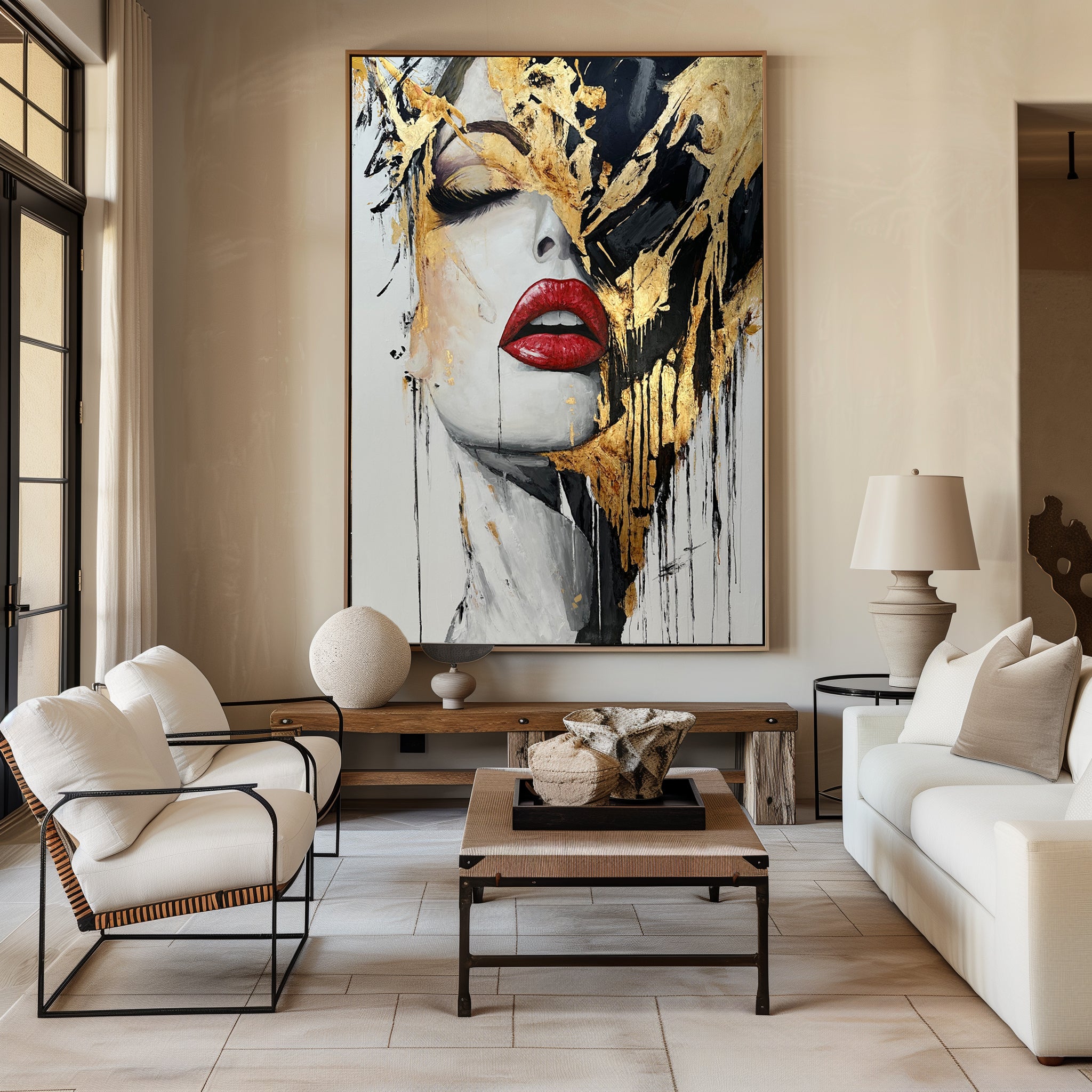 Abstract Female Face Portrait Red Lips Black and White Gold Leaf Art Luxury Decor | CRIMSON KISS | Trend Gallery Art Great Britain – Trendgallery.co.uk