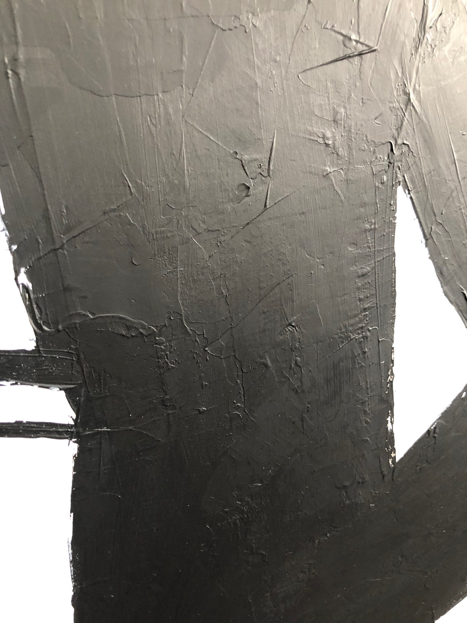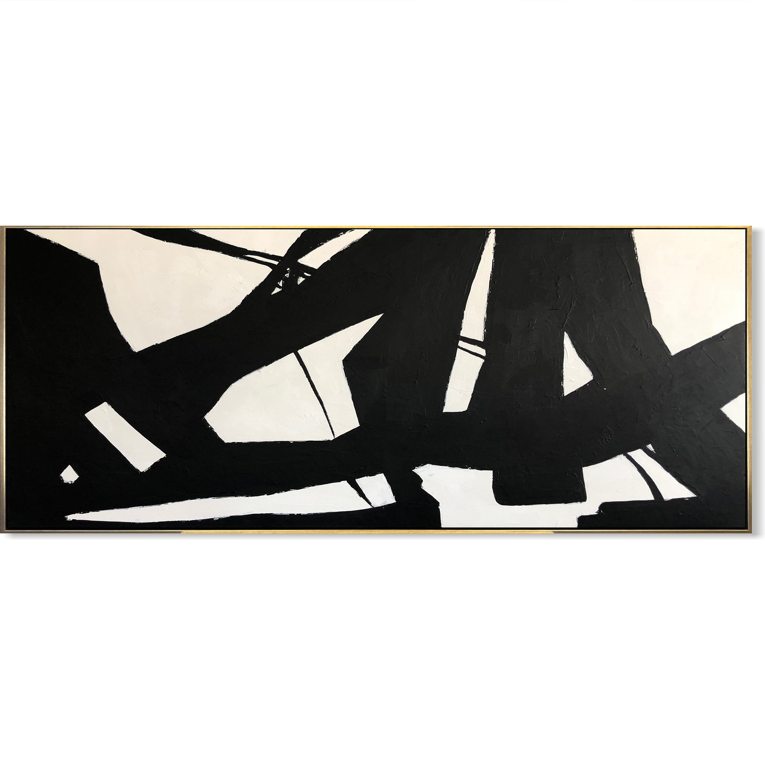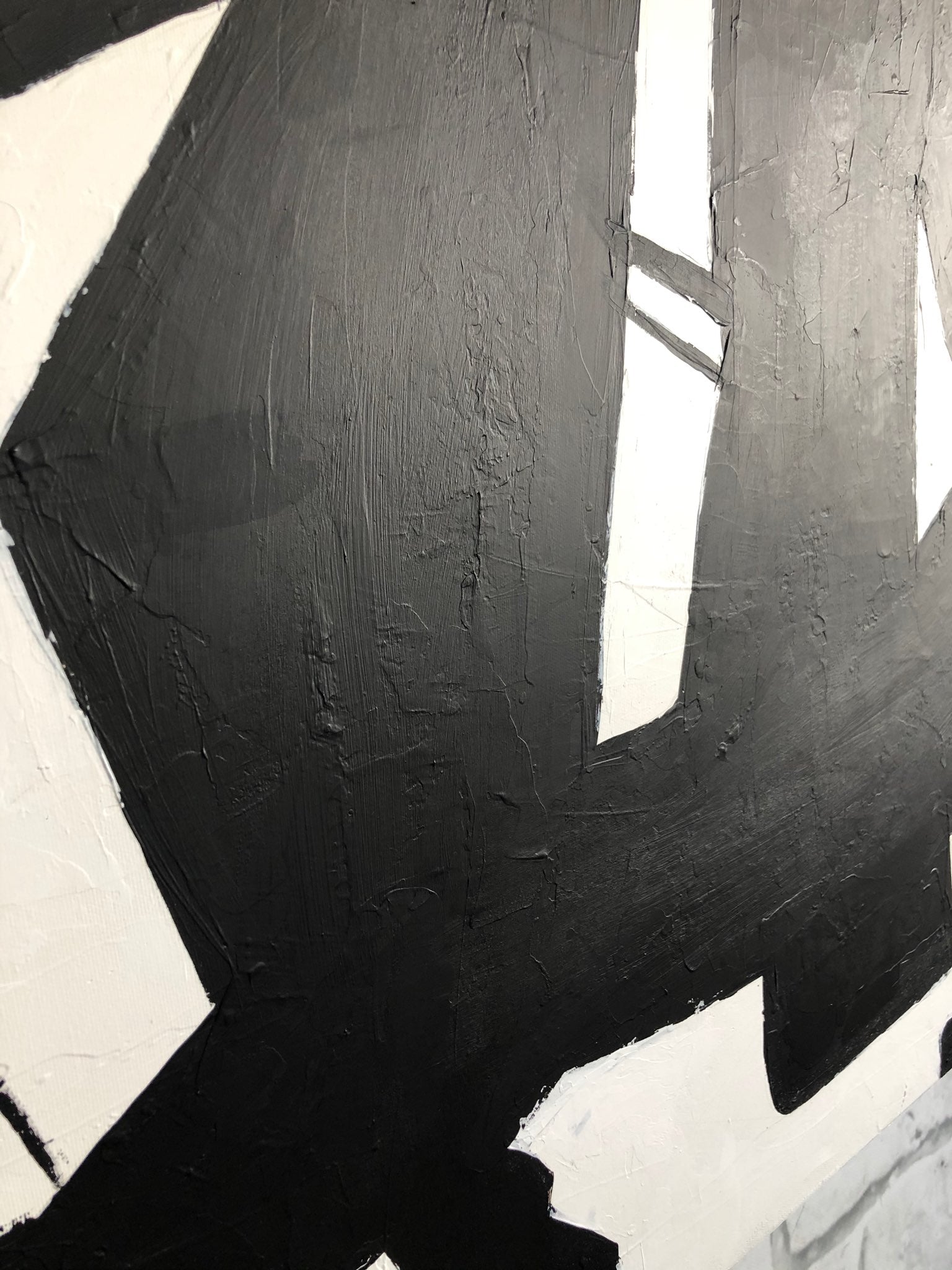 "Winding Road" features a dynamic abstract composition with bold, black shapes and lines set against a stark white background. The intersecting and overlapping black forms create a sense of movement and direction, reminiscent of a winding road. The contrast between the black and white elements adds drama and intensity to the piece, evoking a feeling of navigating through complex pathways. This artwork captures the essence of a journey, with its twists and turns, symbolizing the unpredictable and adventurous nature of life.