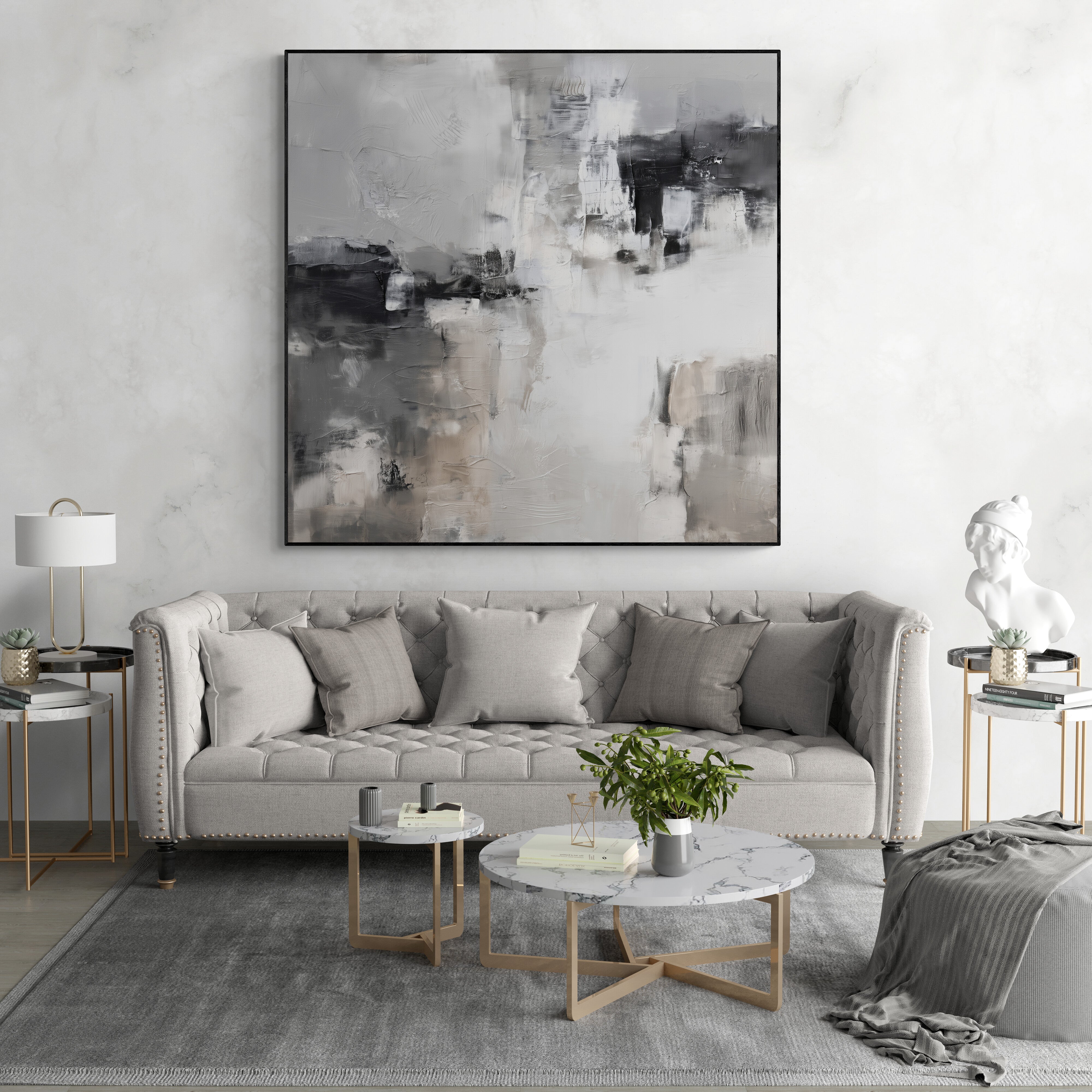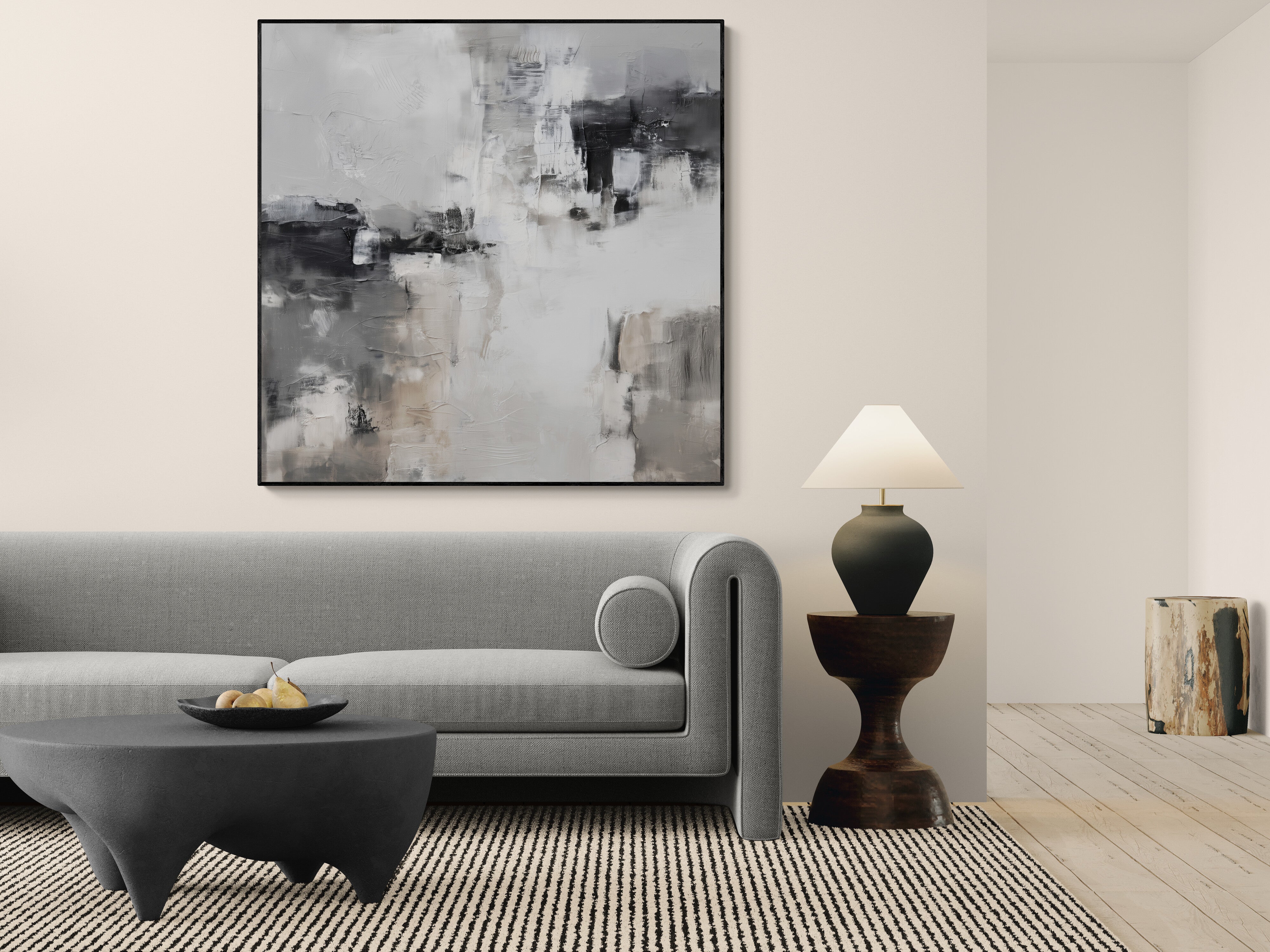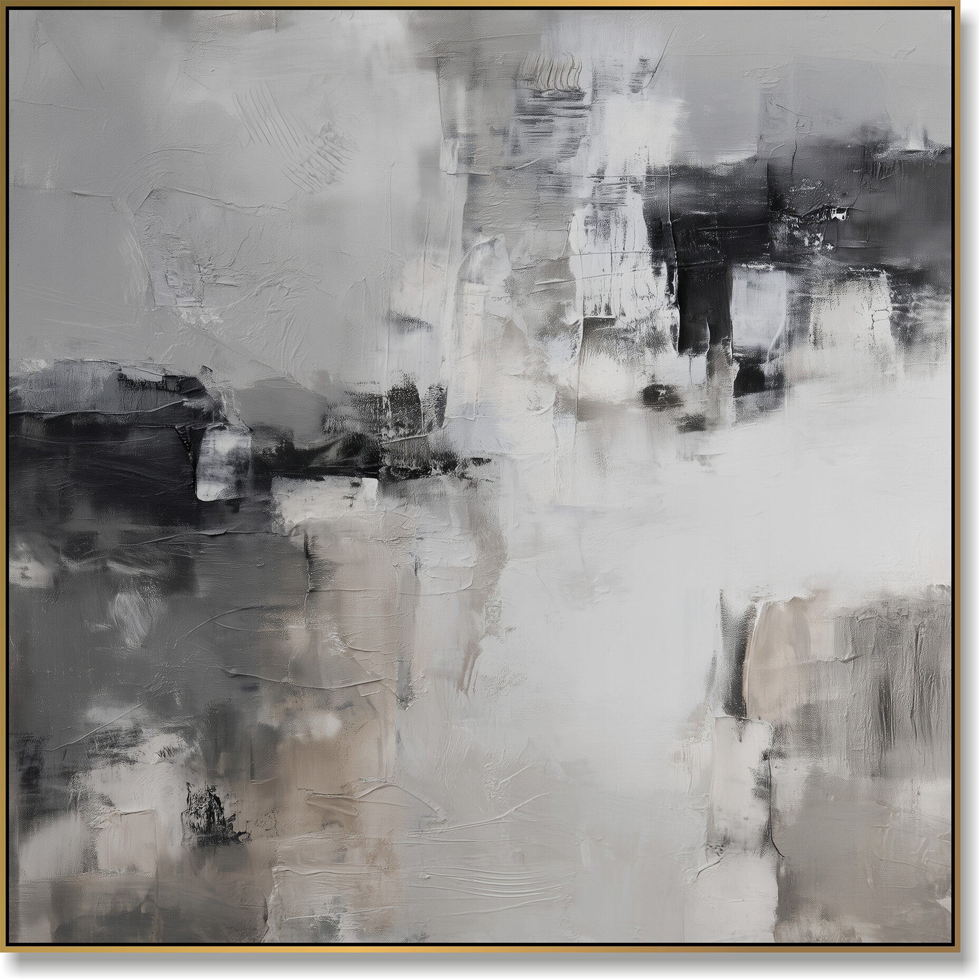 Textured monochrome abstract art for modern interiors. Elevate your space with minimalist elegance — shop this unique canvas today.