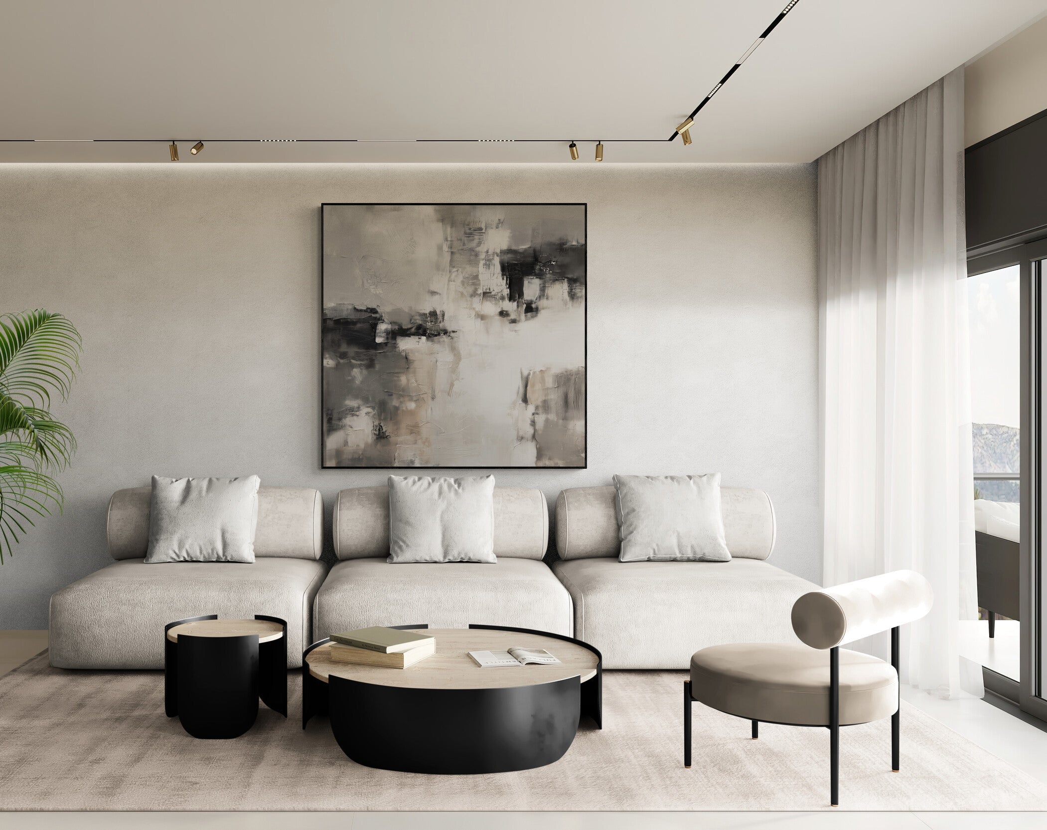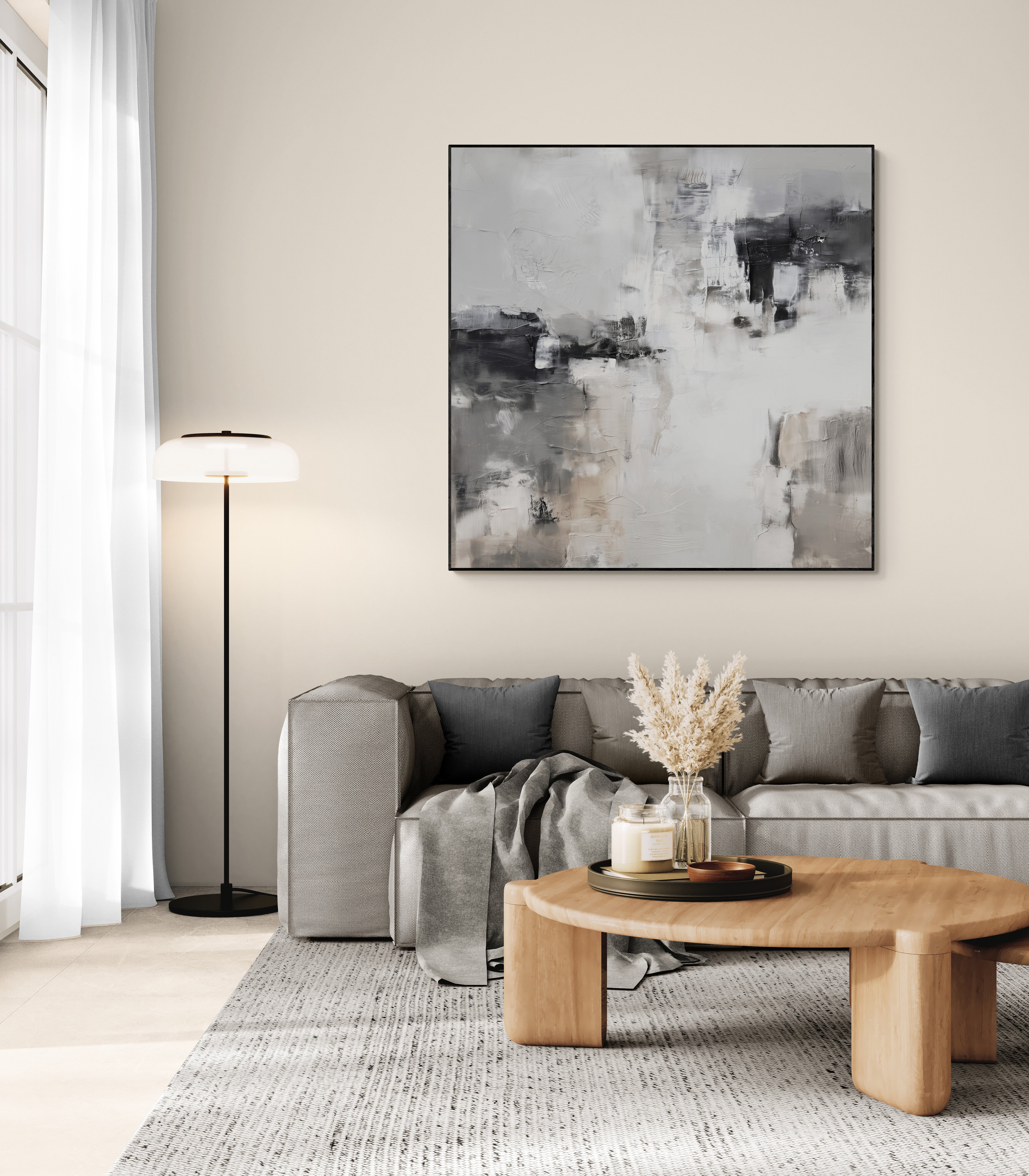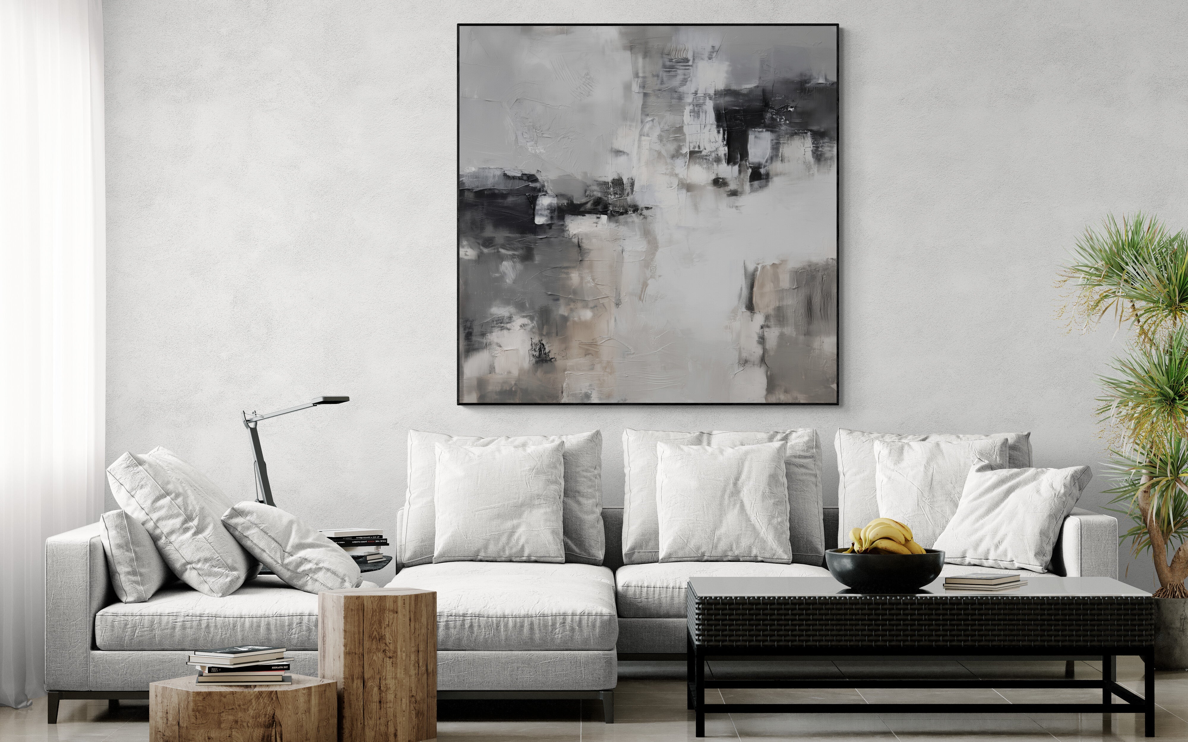 Textured monochrome abstract art for modern interiors. Elevate your space with minimalist elegance — shop this unique canvas today.