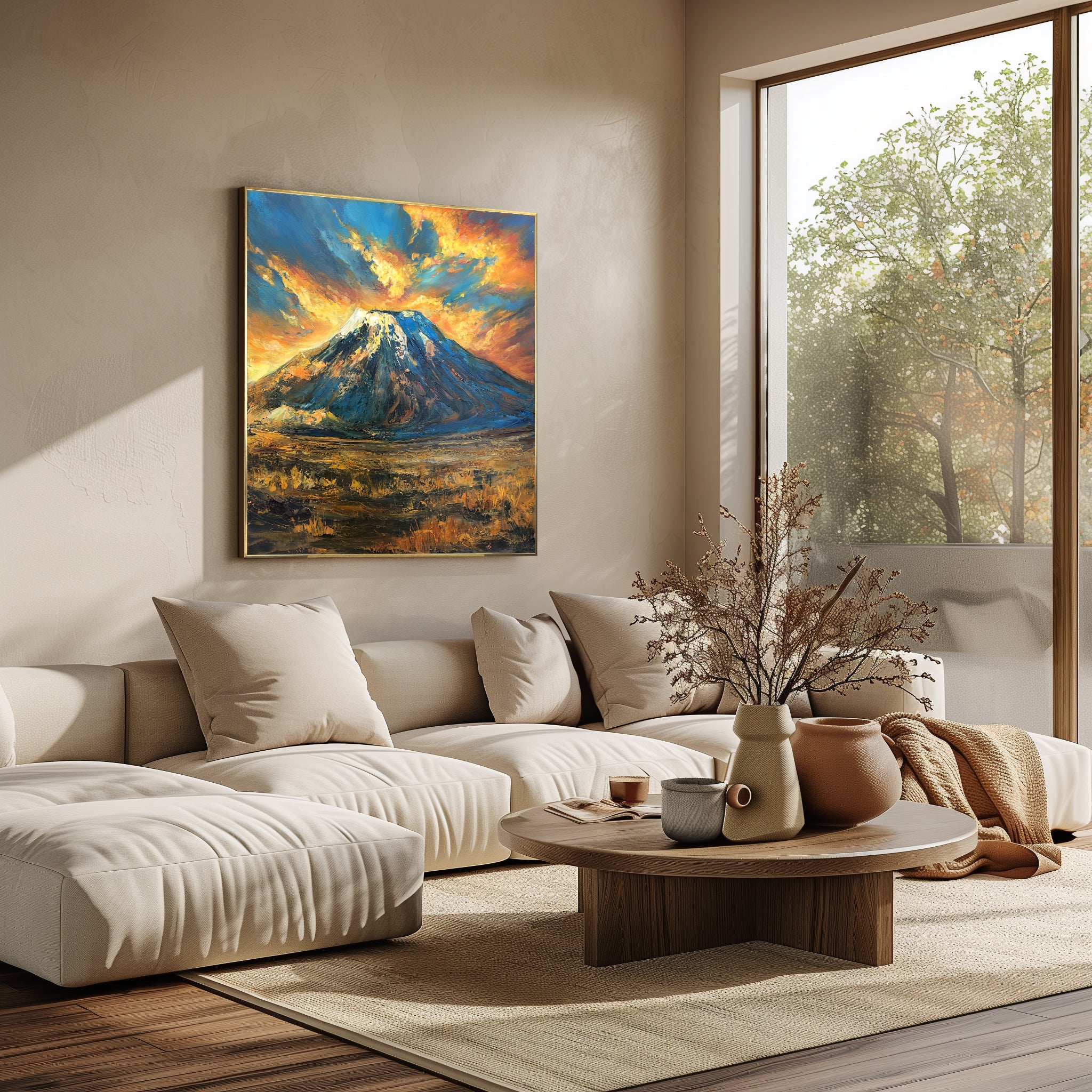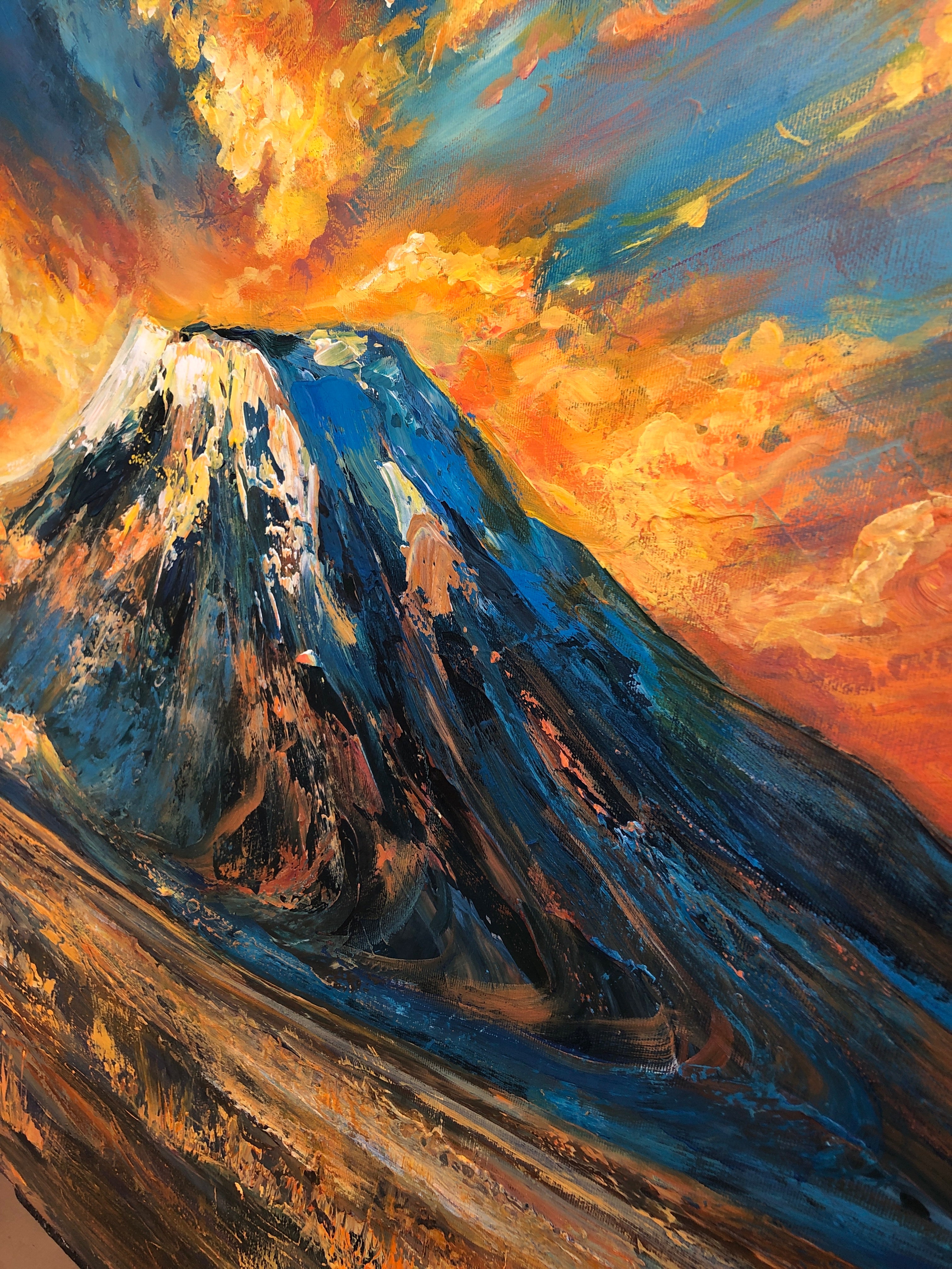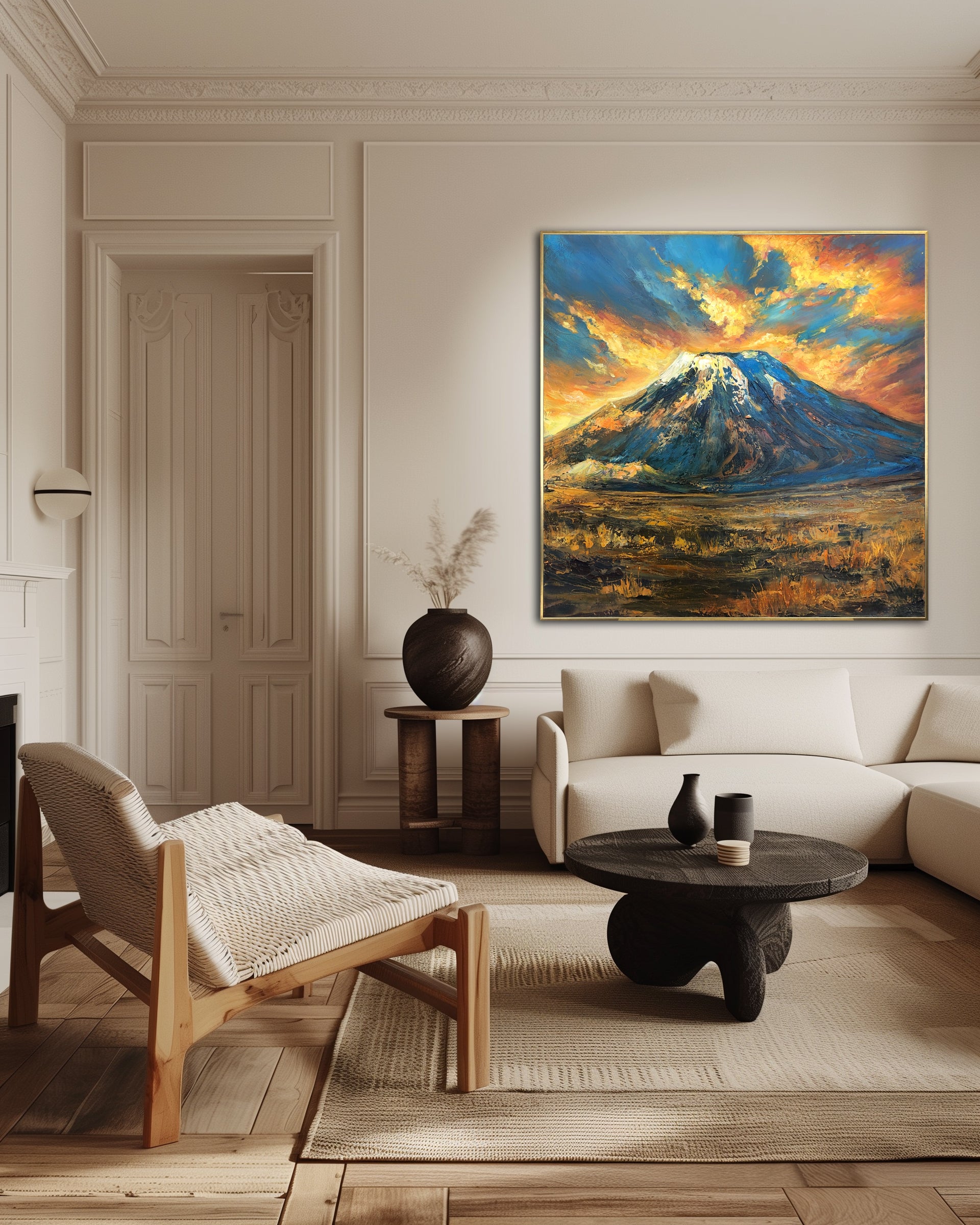Large Mountain Landscape Painting Dramatic Sunset Sky Textured Canvas Wall Art | VEIL OF KILIMANJARO | Trend Gallery Art Great Britain – Trendgallery.co.uk