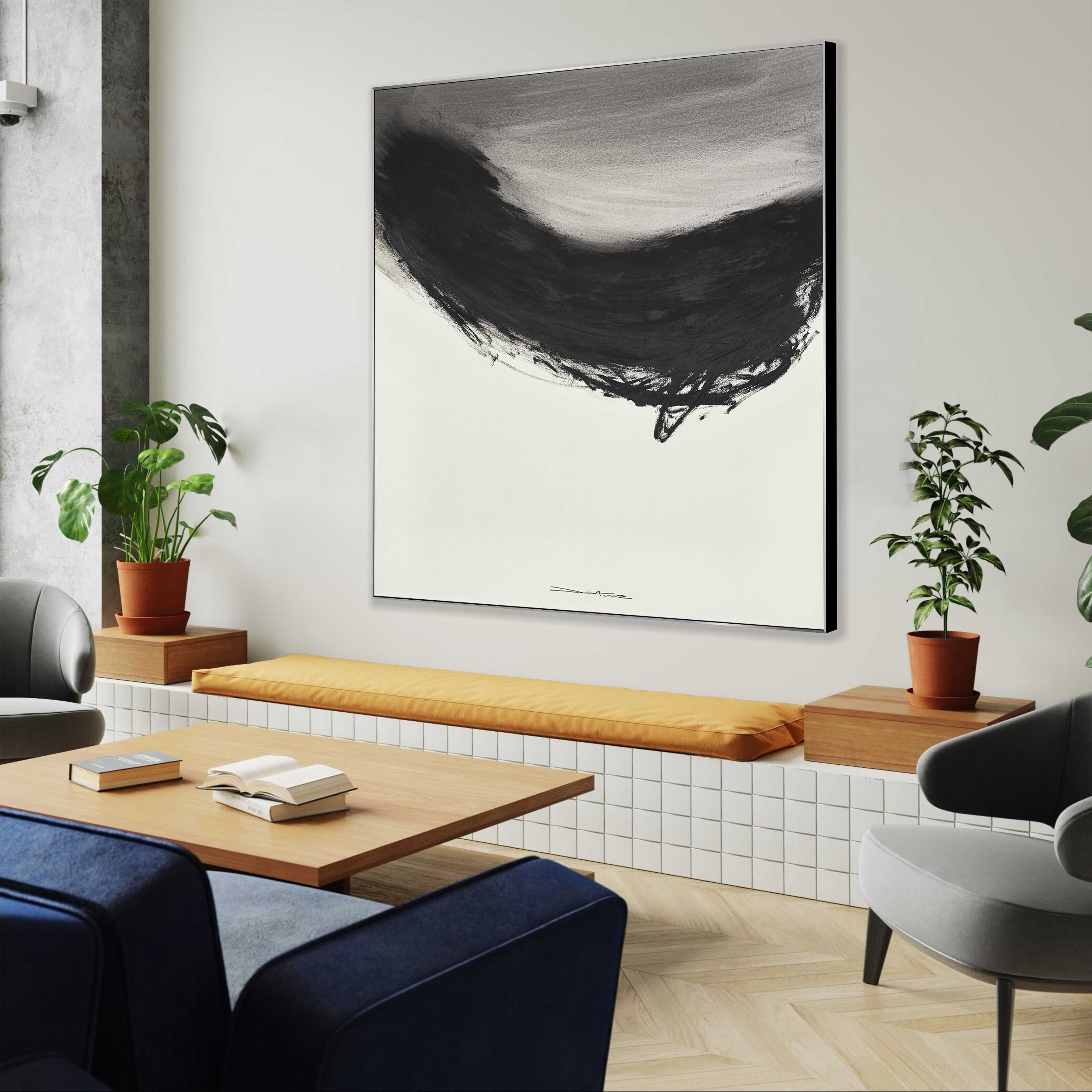 Large Black and White Abstract Painting Modern Minimalist Ink Brush Wall Art Monochrome Canvas Contemporary Wall Decor | MONOCHROME STATEMENT | Trend Gallery Art Great Britain – Trendgallery.co.uk