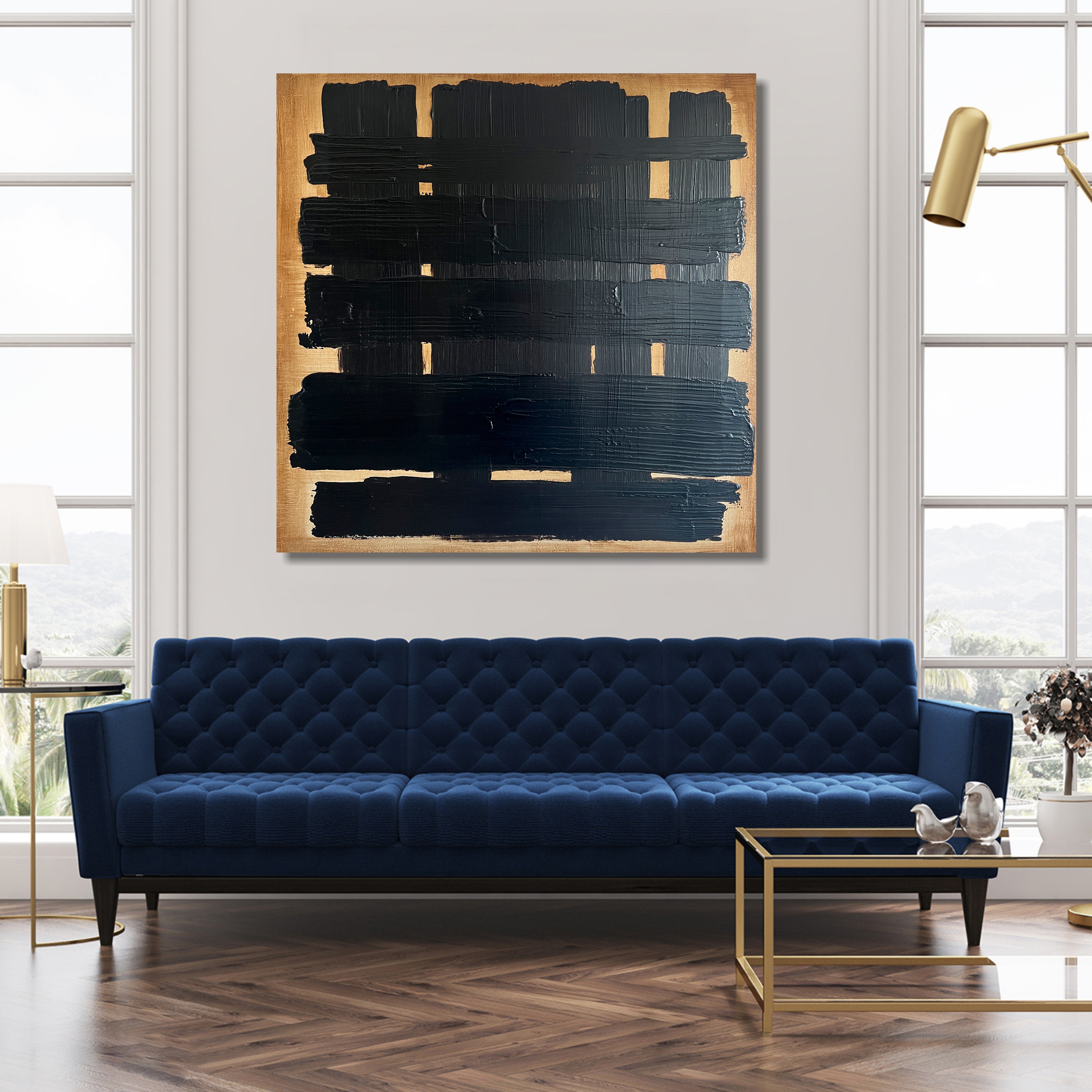 Abstract Black Grid Acrylic Painting Modern Original Wall Art Black and Gold Artwork for Decor | BLACK LATTICE 31"x31" | Trend Gallery Art Great Britain – Trendgallery.co.uk