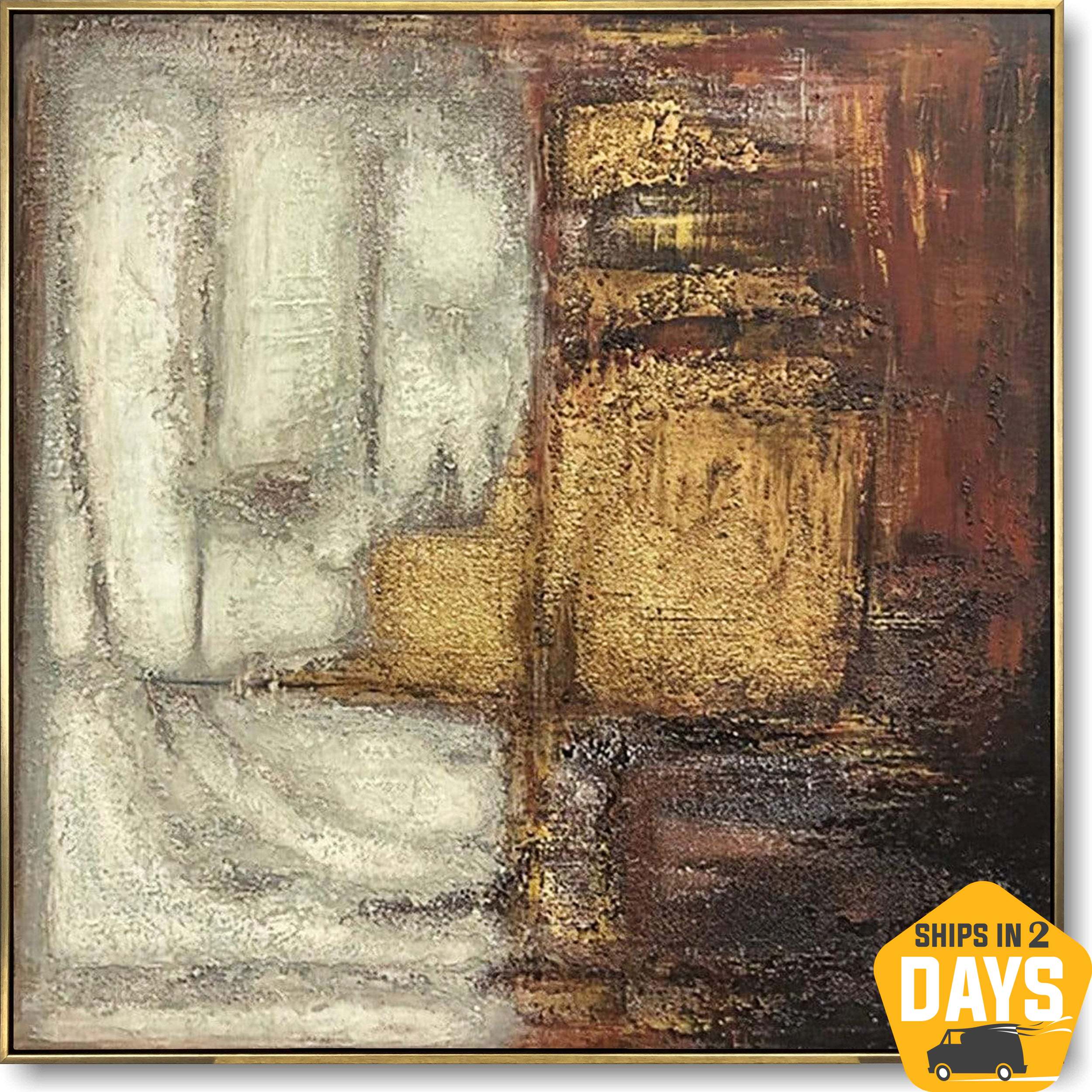Dive into the opulent textures of 'Autumn Cover', an abstract painting rich in depth and luxury. This piece combines earthy tones of brown and rust with striking highlights of gold leaf, creating a dramatic contrast that captivates and enchants. Perfect for collectors and decorators seeking a sophisticated touch, its lush layers evoke a sense of serene mystery, making it an ideal choice for both modern and classic interiors. Let 'Autumn Cover' transform your space with its timeless elegance and bold artistic expression.