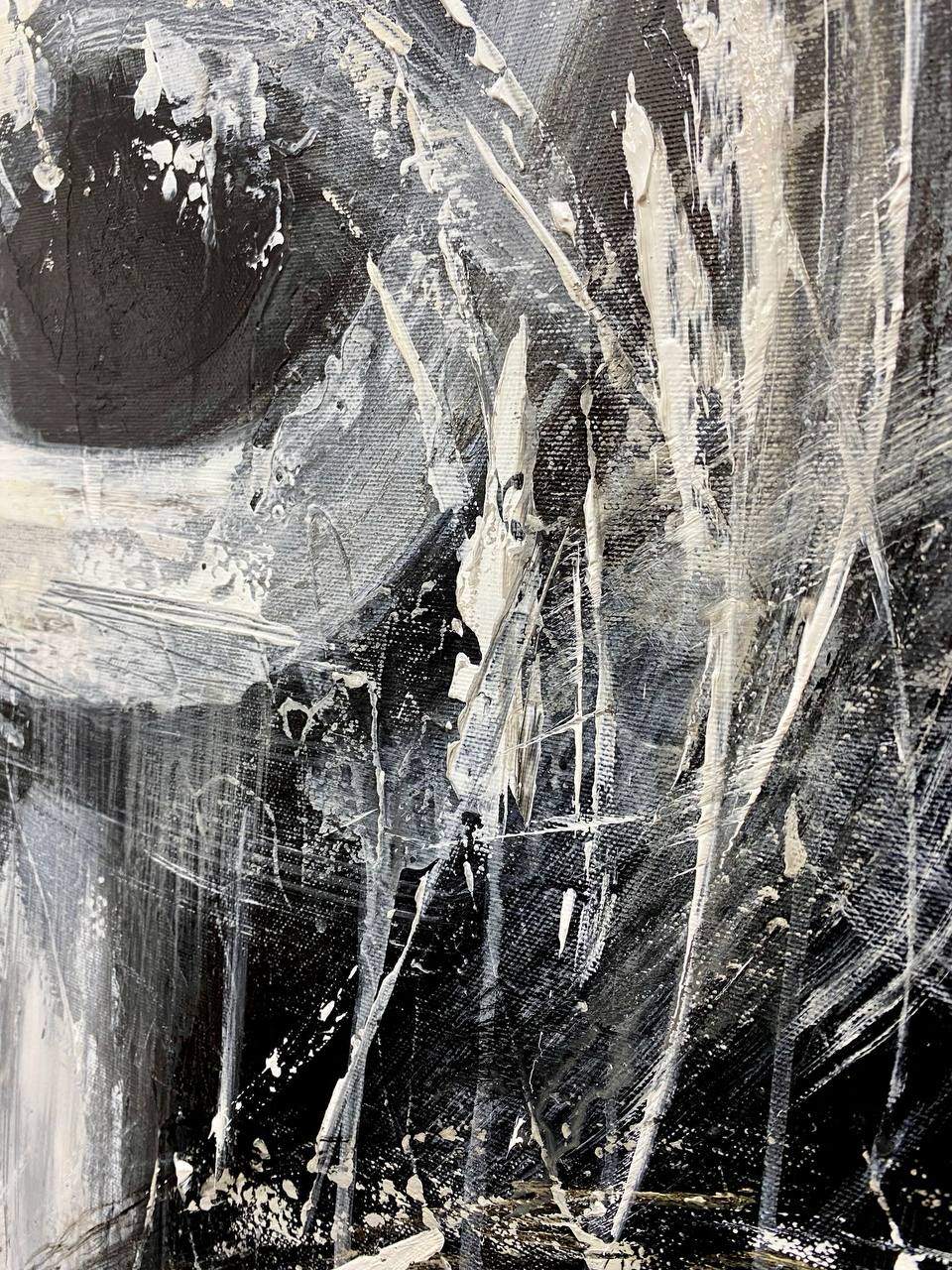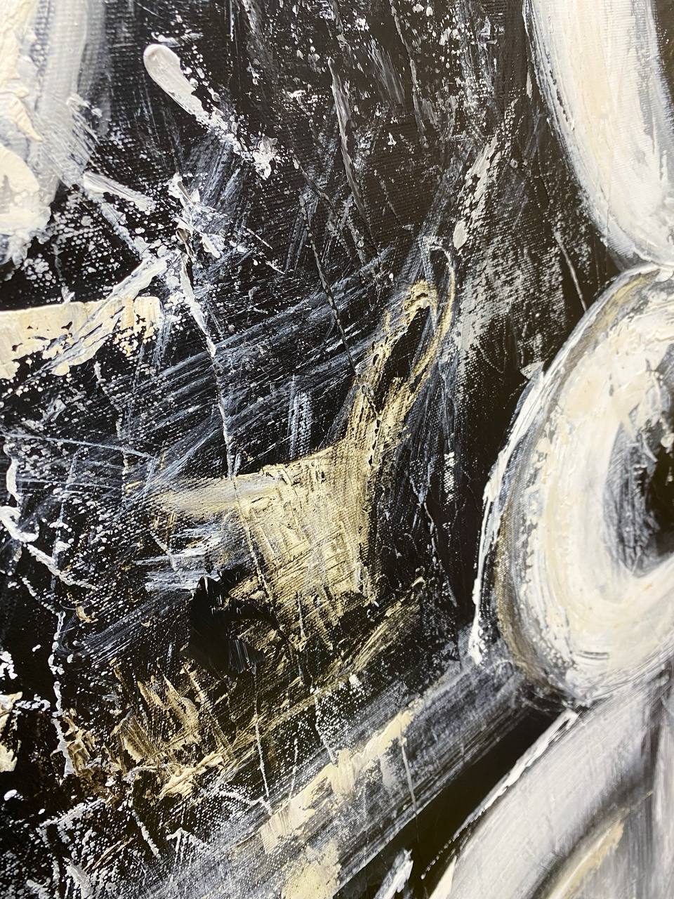 In the evening everything around loses it`s colors, only silhouettes remain alive. In this canvas the artist captures tranquil and soothing night walk. When you go out and walk around, nothing matters but your personal feelings and deep thoughts. This elegant black and white painting is a perfect addition to the minimalistic interiors or for modern apartments.