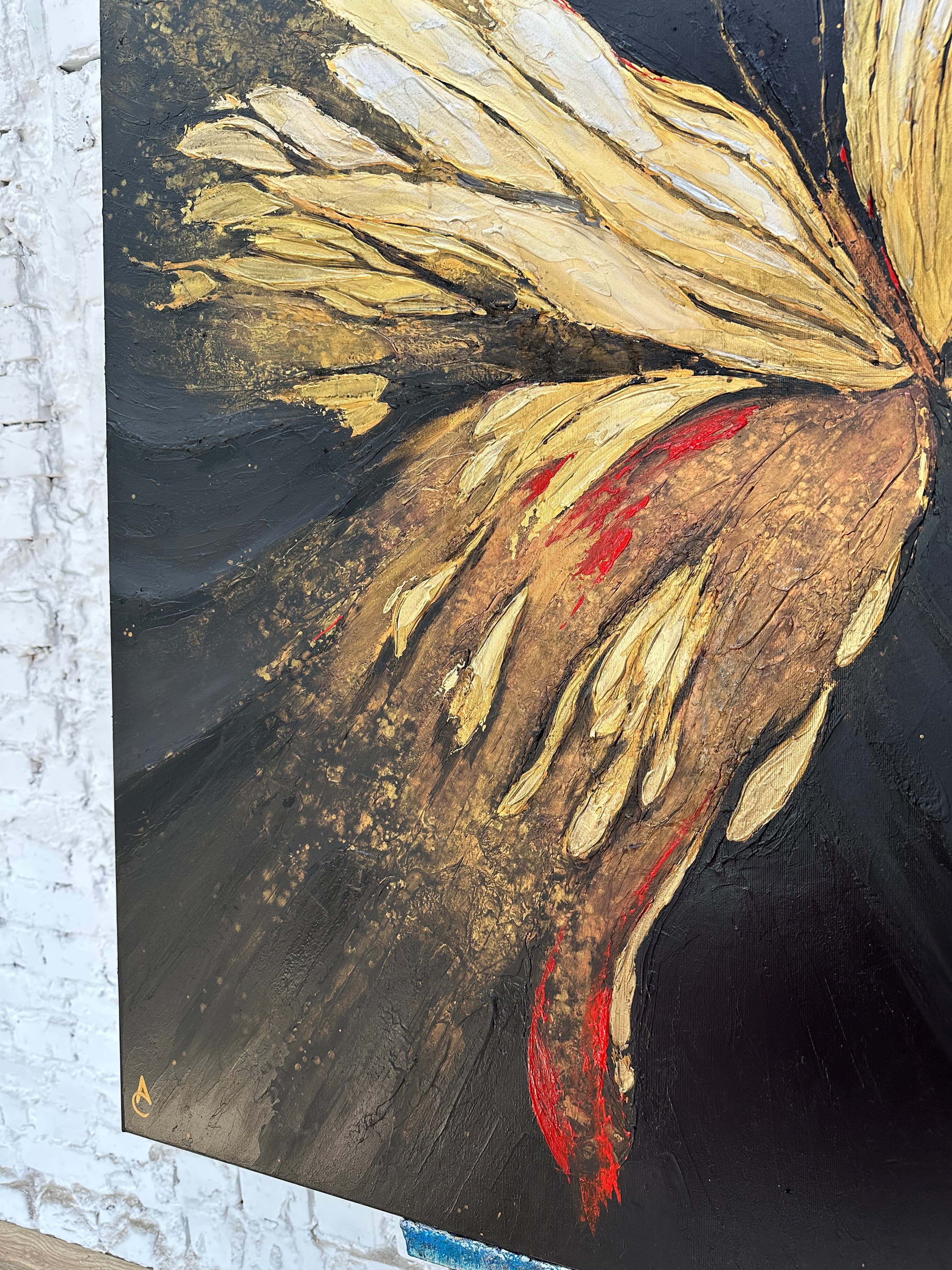 Gold Leaf Butterfly Abstract Painting Black Background Textured Canvas Luxury Decor | GOLDEN BUTTERFLY | Trend Gallery Art Great Britain – Trendgallery.co.uk