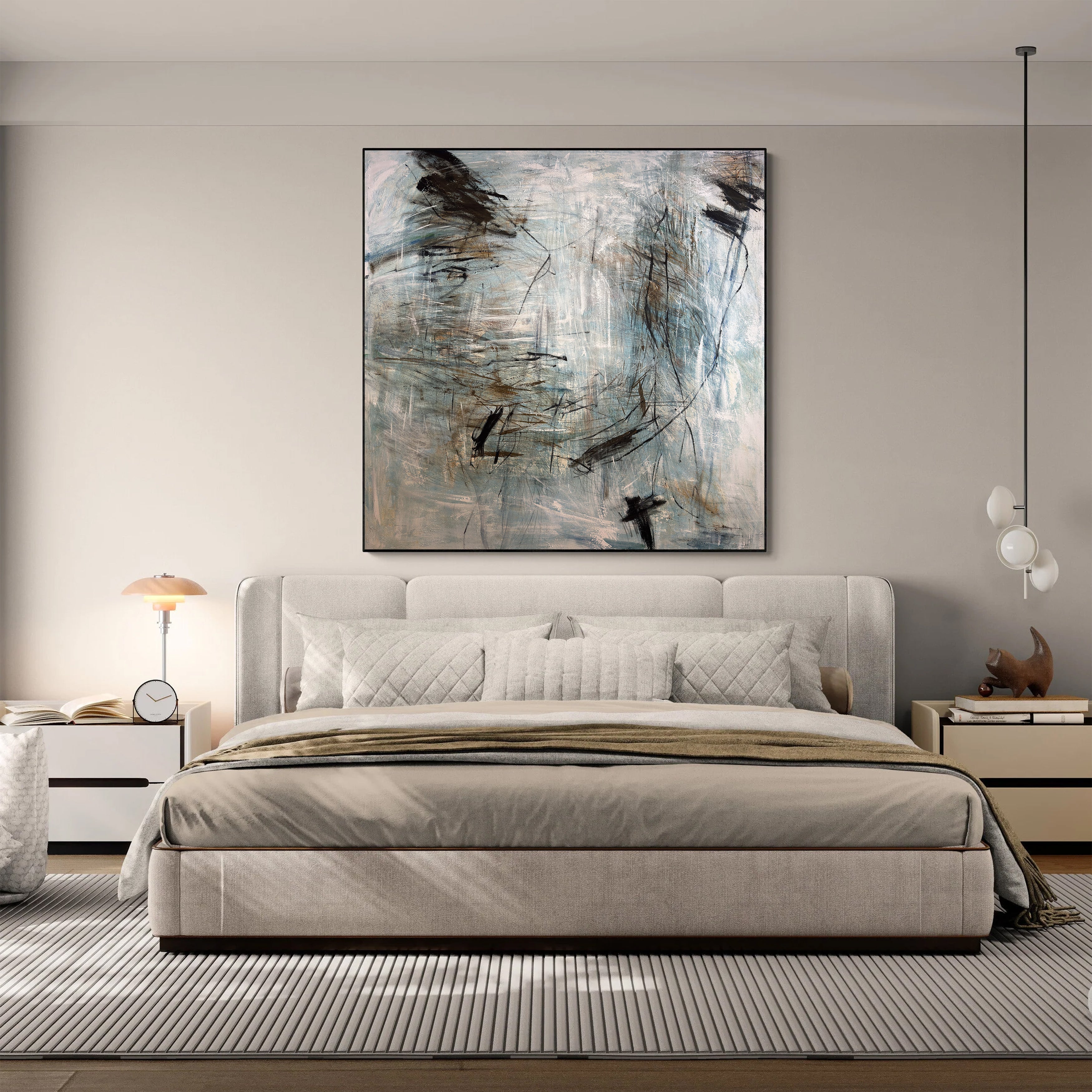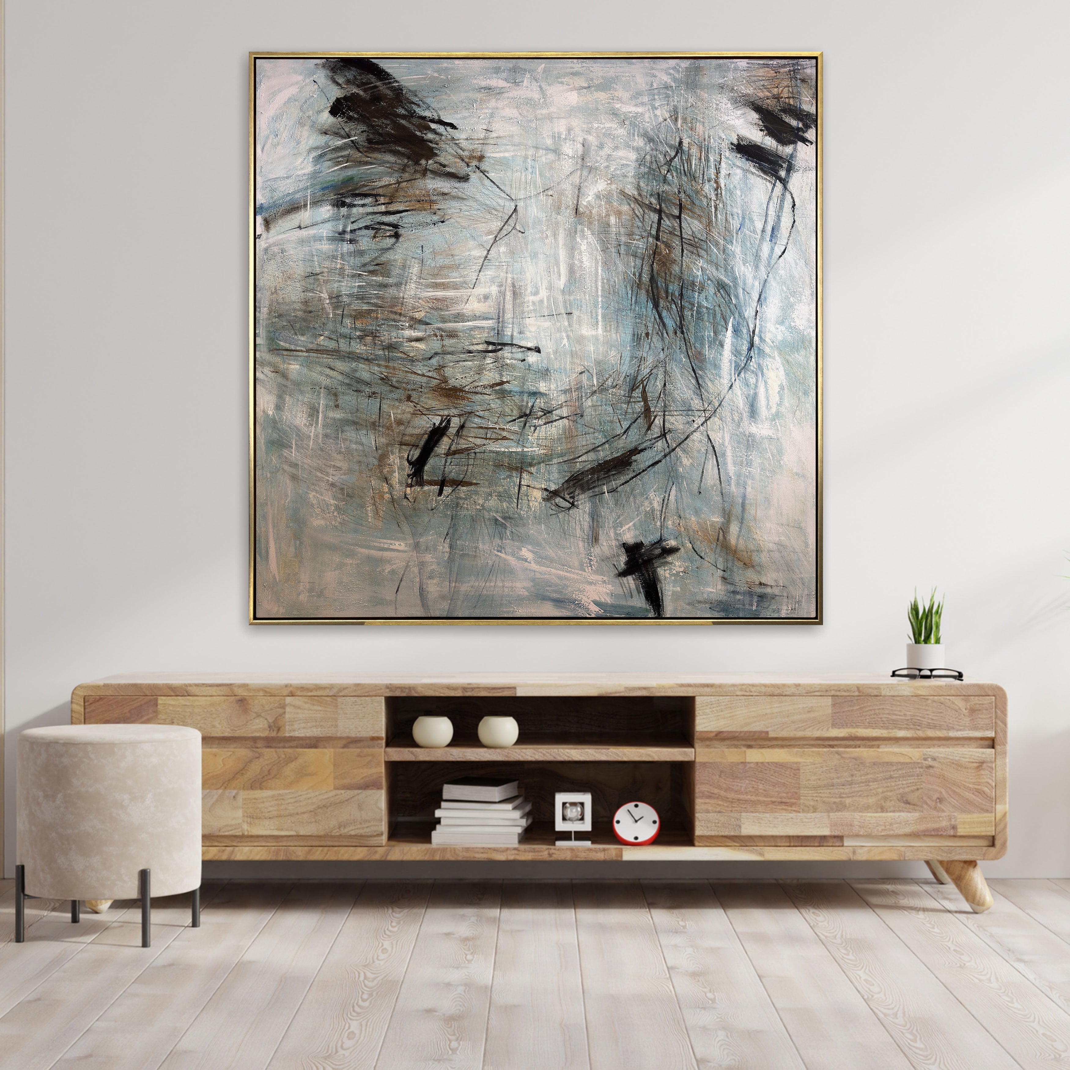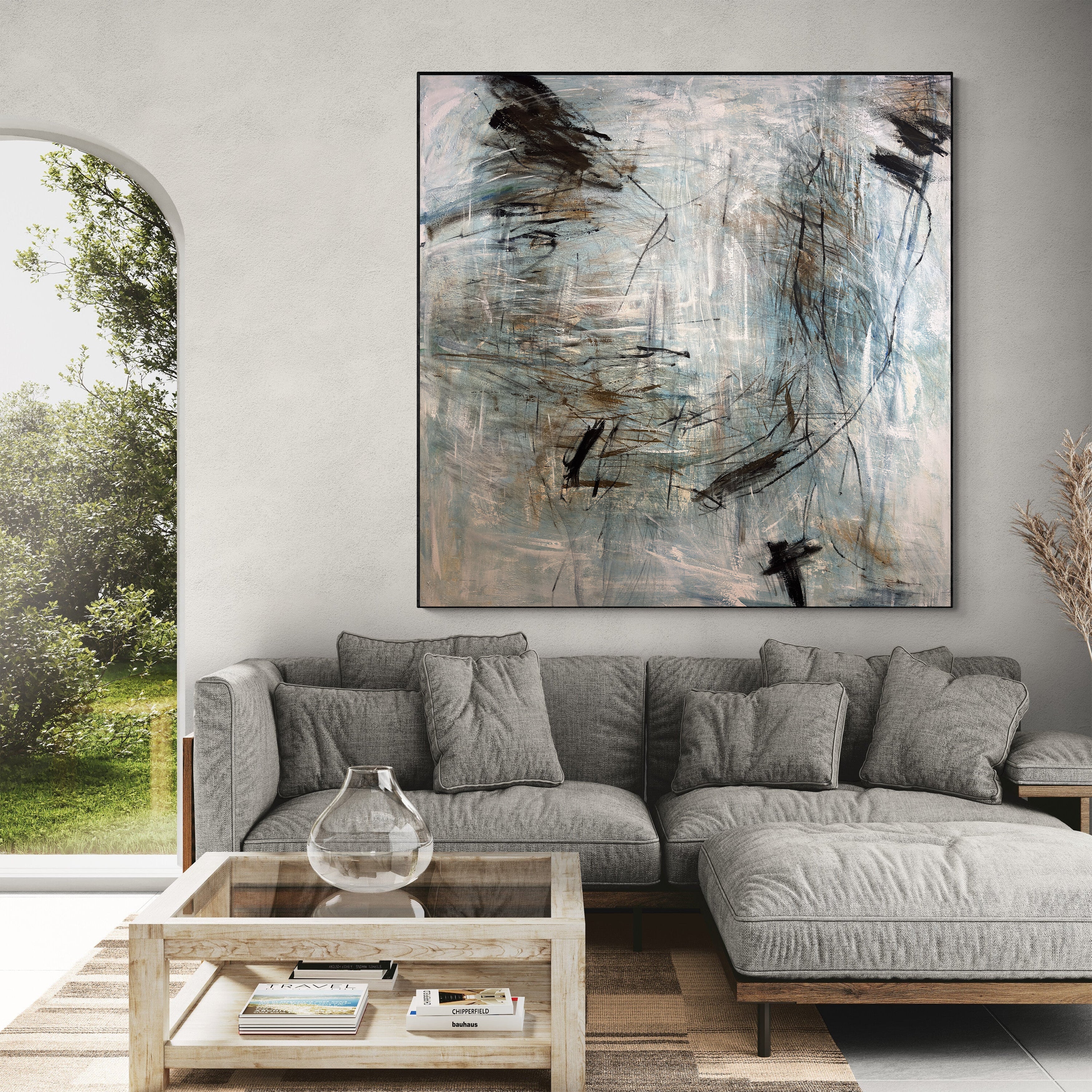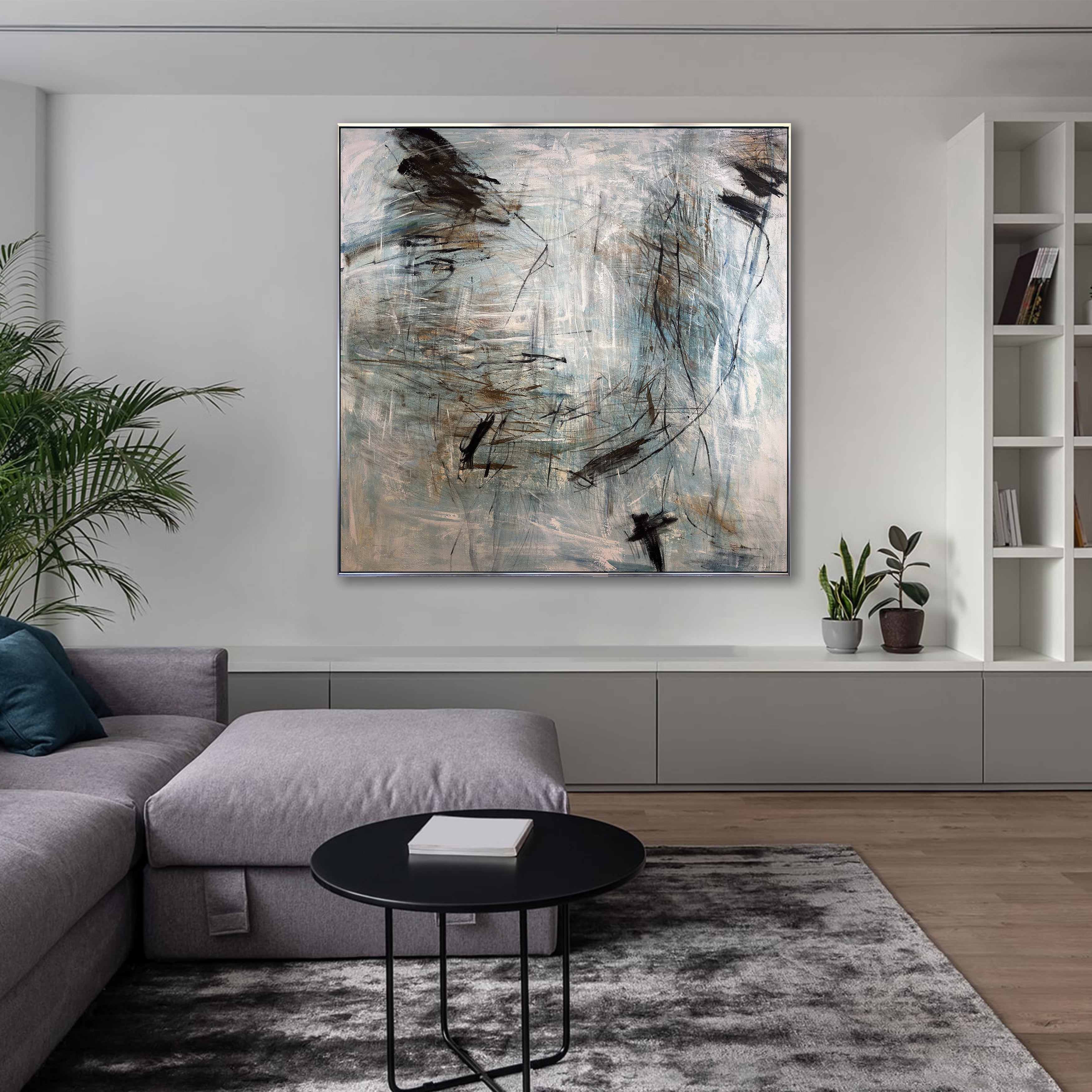 Large Abstract Expressionist Painting Neutral Blue Gray Canvas Wall Art for Modern Home Decor | TrendGallery | Trend Gallery Art Great Britain – Trendgallery.co.uk