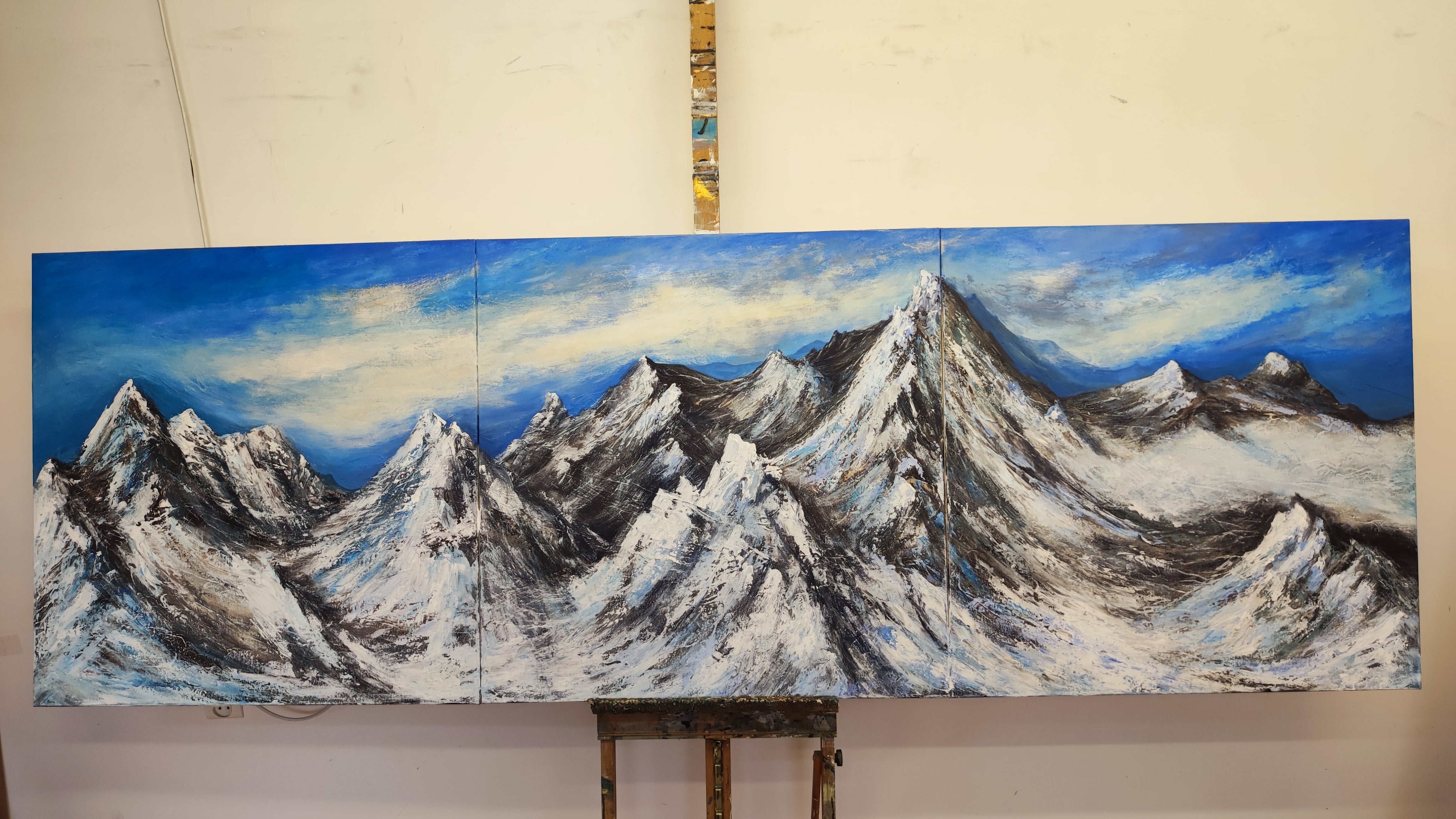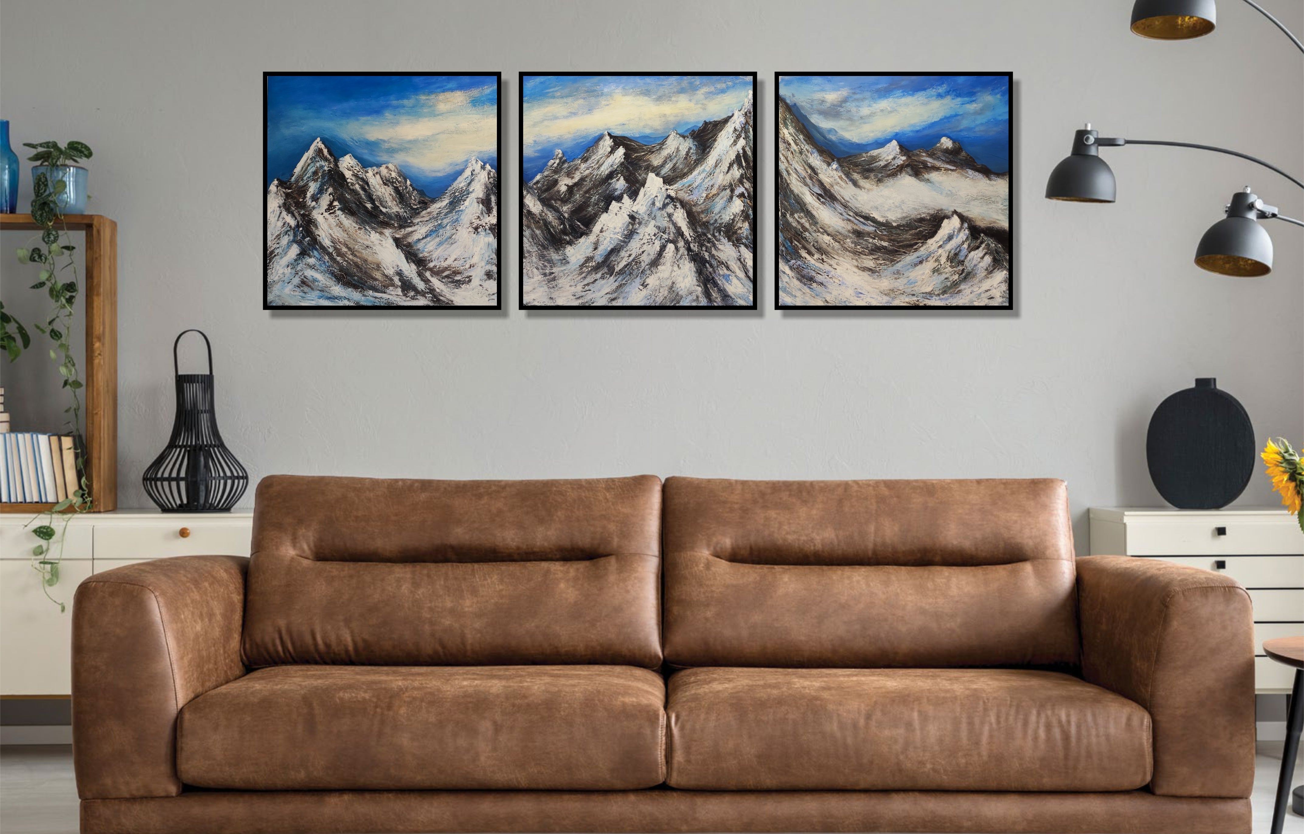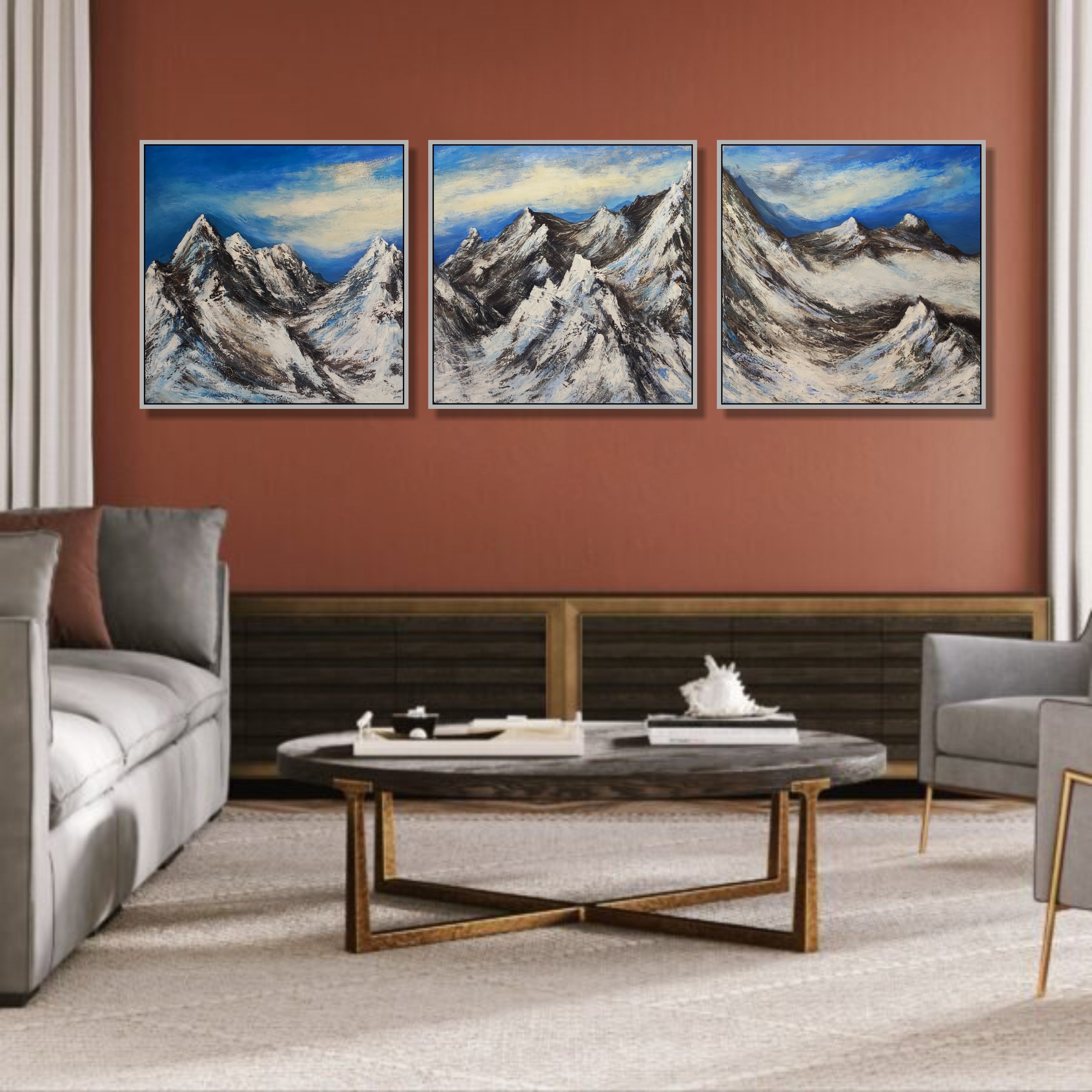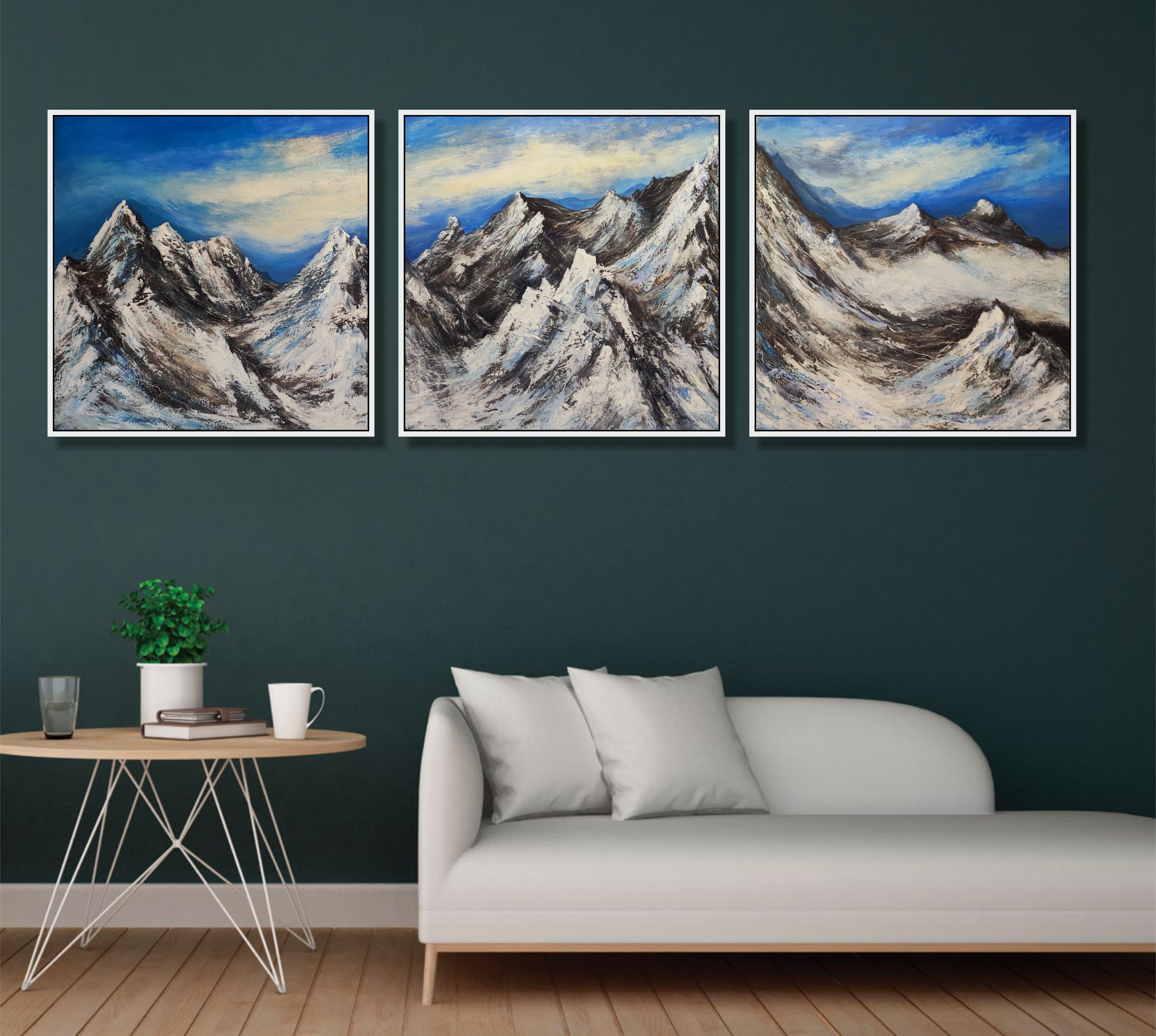 Extra Large Snowy Mountains Set of 3 Paintings On Canvas Scenic Art Original Nature Blue and White Painting Handmade Wall Decor | SNOWY SUMMITS | Trend Gallery Art Great Britain – Trendgallery.co.uk