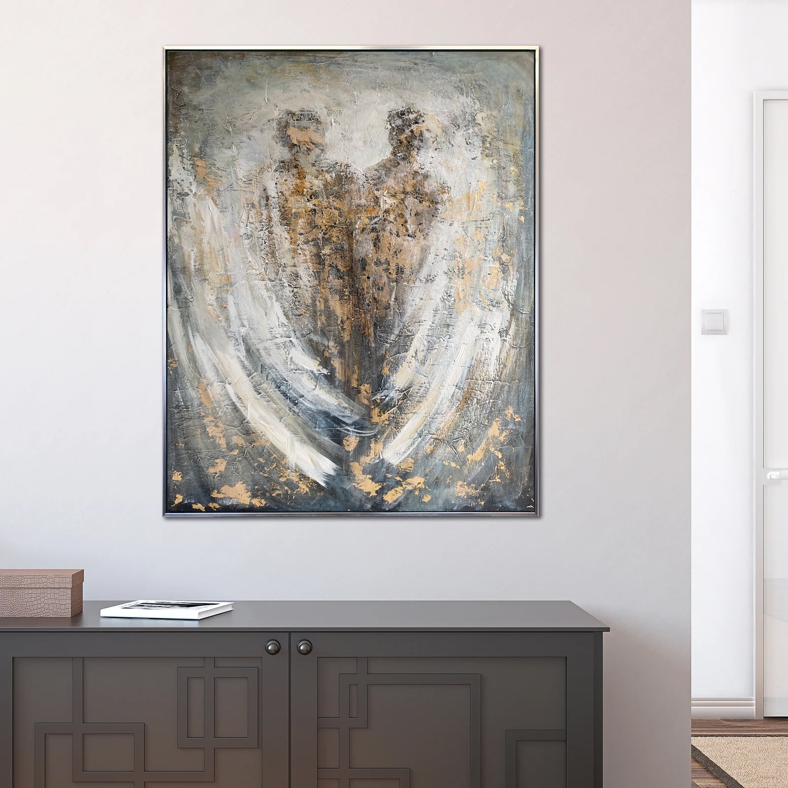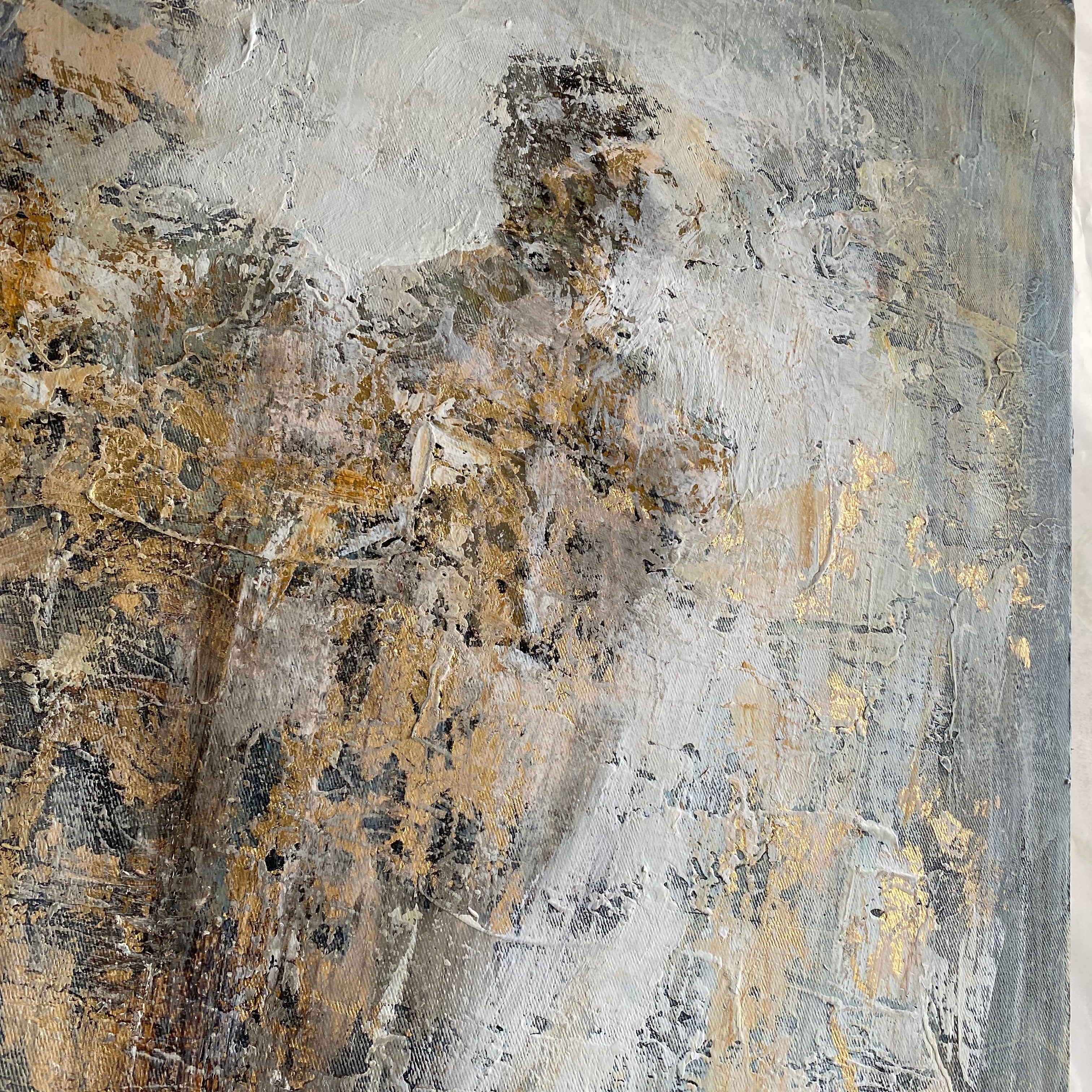 Large Abstract Silhouettes Wall Art Textured Grey White Gold Painting Figures Metallic Accents Modern Figurative Painting Neutral Wall Decor | ETHEREAL COMPANIONS | Trend Gallery Art Great Britain – Trendgallery.co.uk