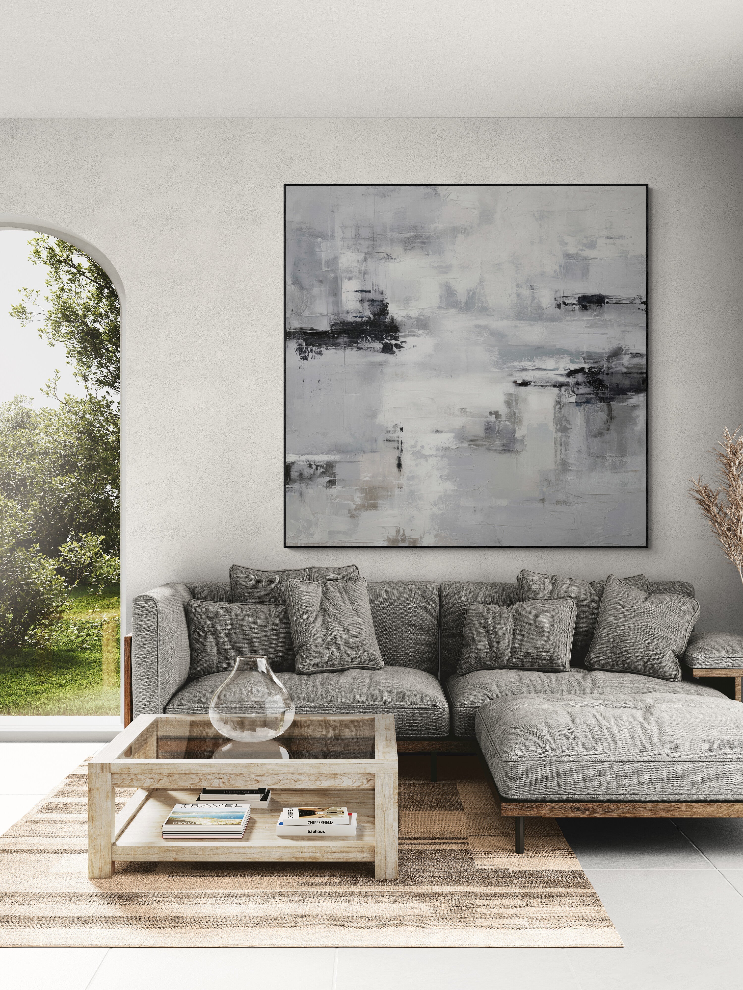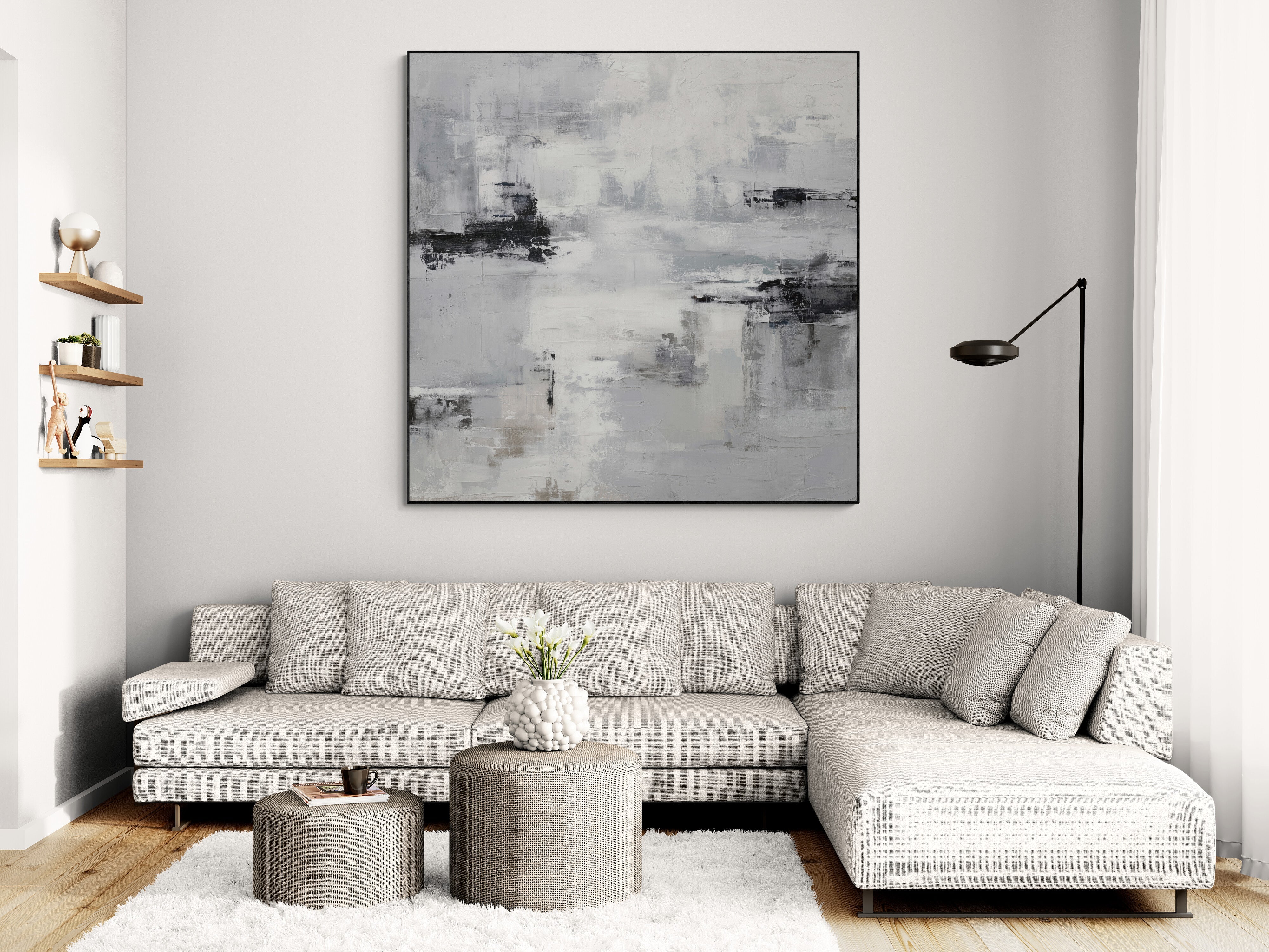 Large Grey Black White Abstract Painting – Textured Minimalist Canvas Art | TrendGallery | Trend Gallery Art Great Britain – Trendgallery.co.uk