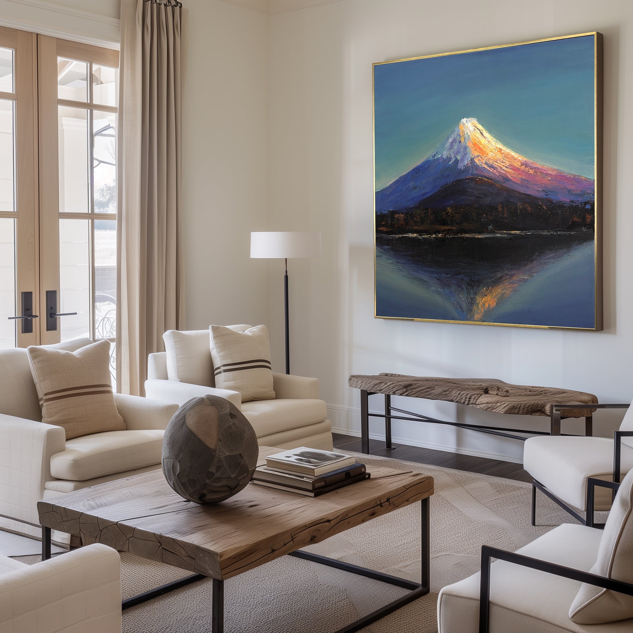 Whether admired as a decorative masterpiece or contemplated as a spiritual landscape, this painting invites you to pause, reflect, and be uplifted by the eternal glow of Mount Fuji. A perfect statement piece for those who seek beauty, tranquility, and a connection to the profound wonders of nature.