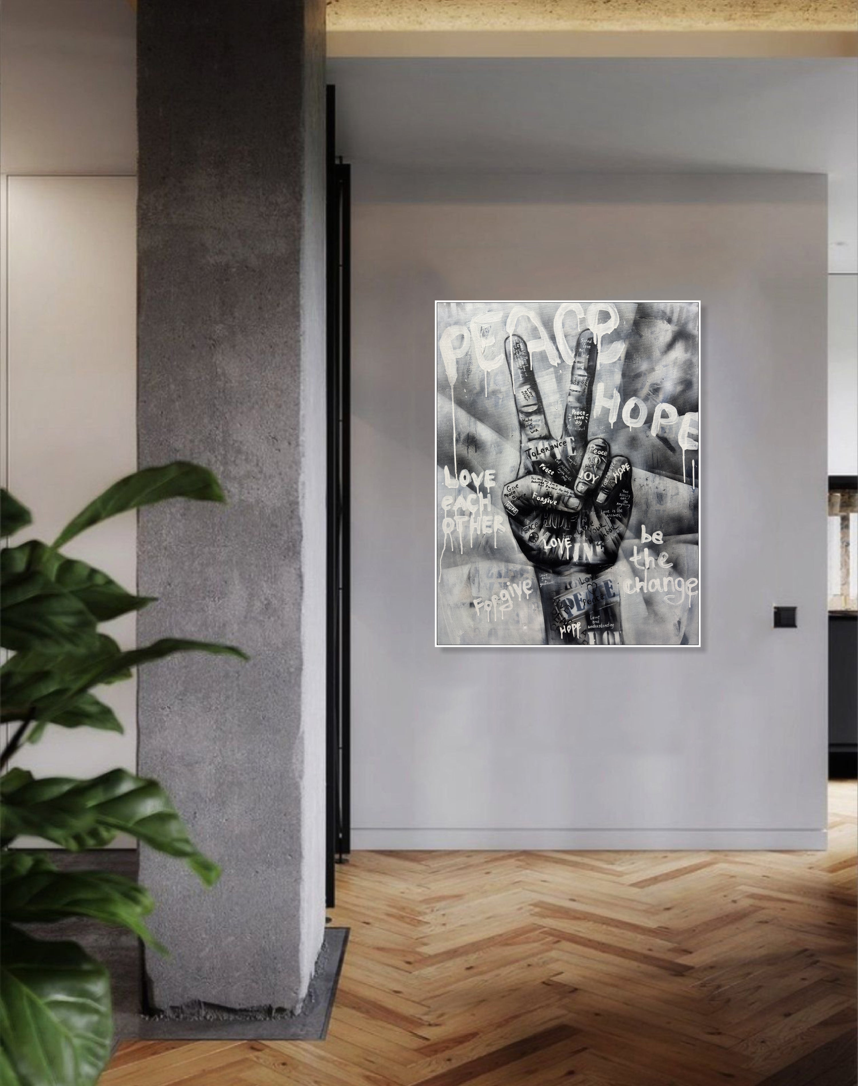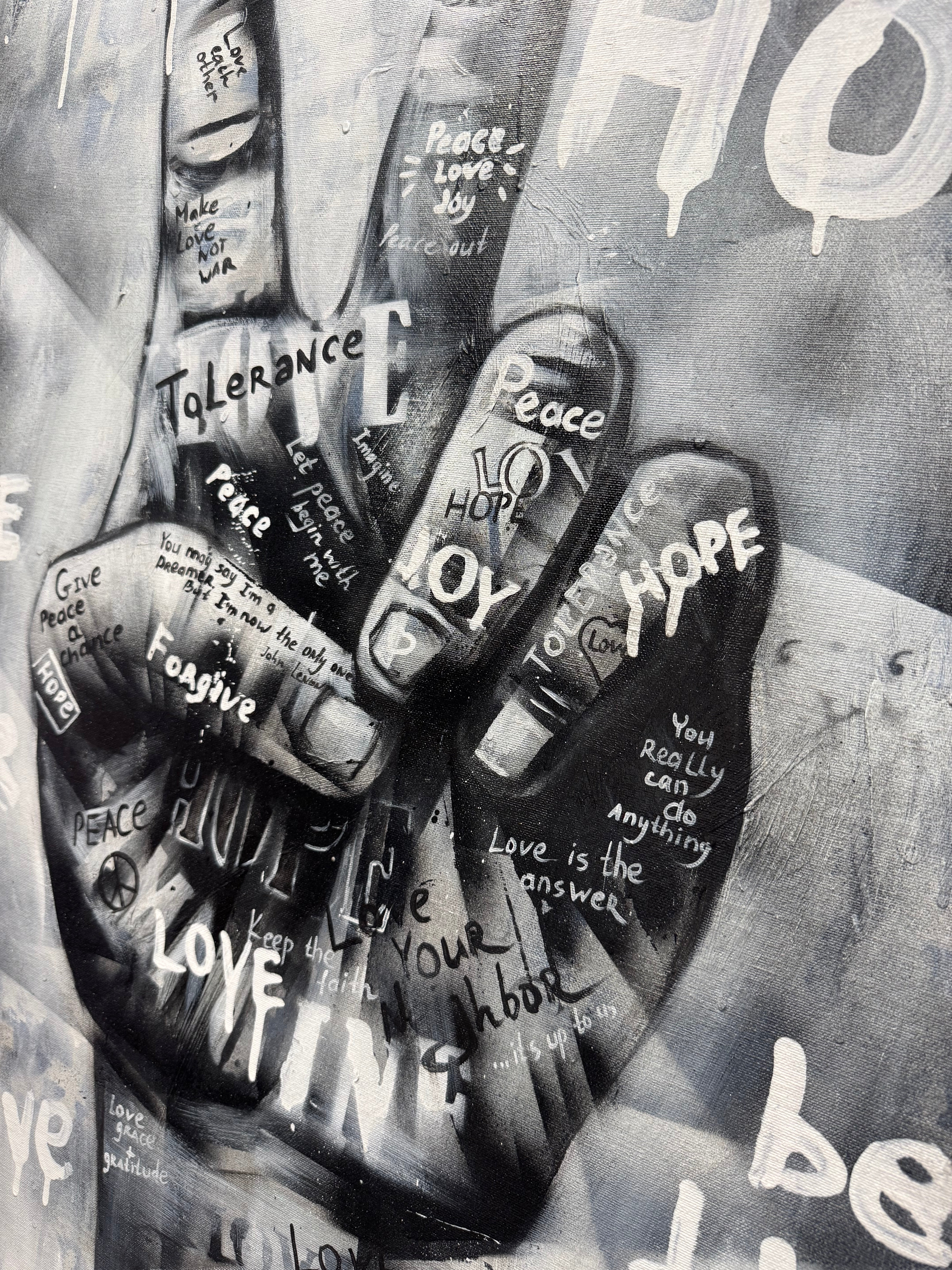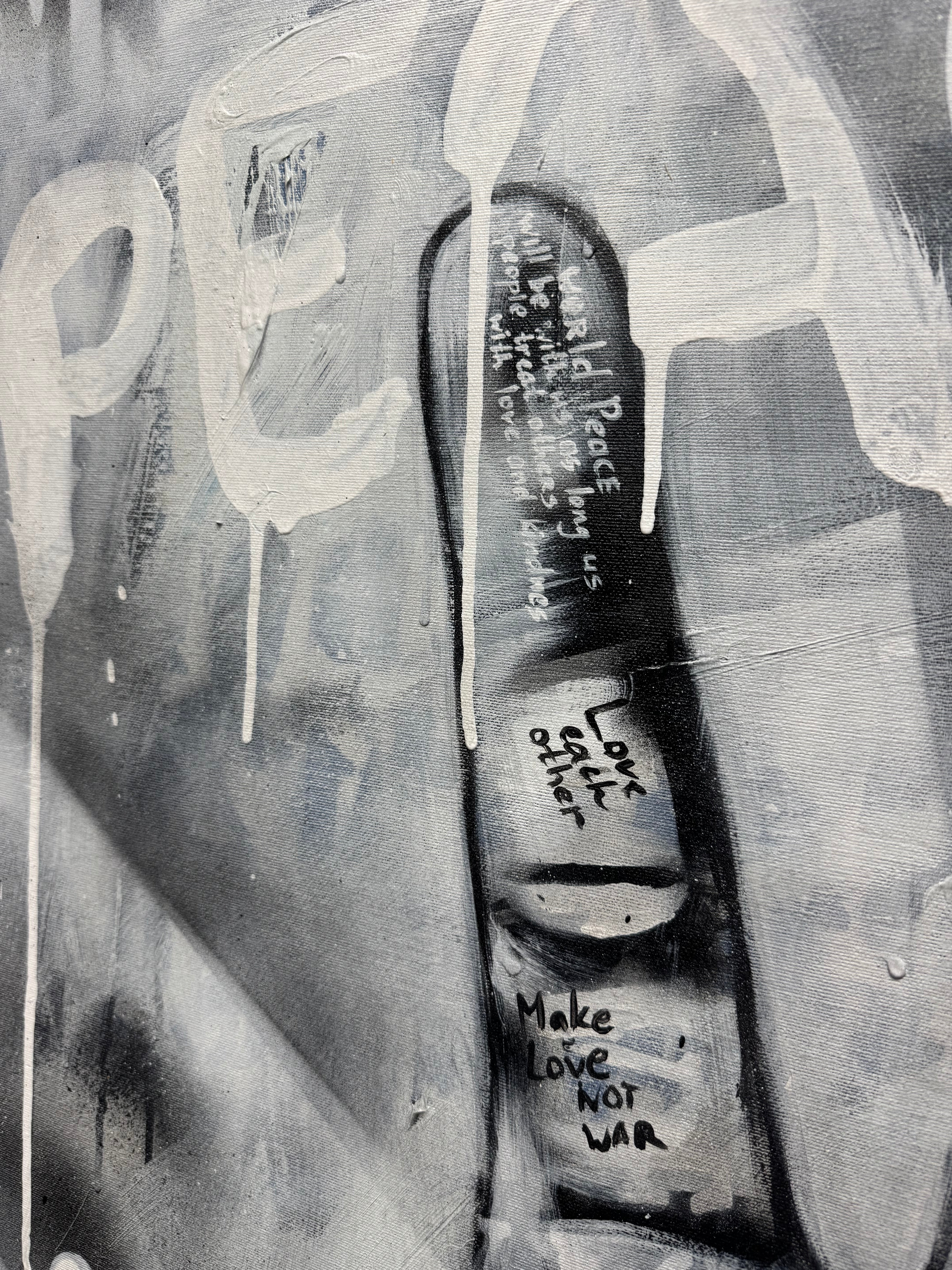 Peace Sign Word Pop Art Painting – Black and White Motivational Wall Decor | POWER OF WORDS | Trend Gallery Art Great Britain – Trendgallery.co.uk