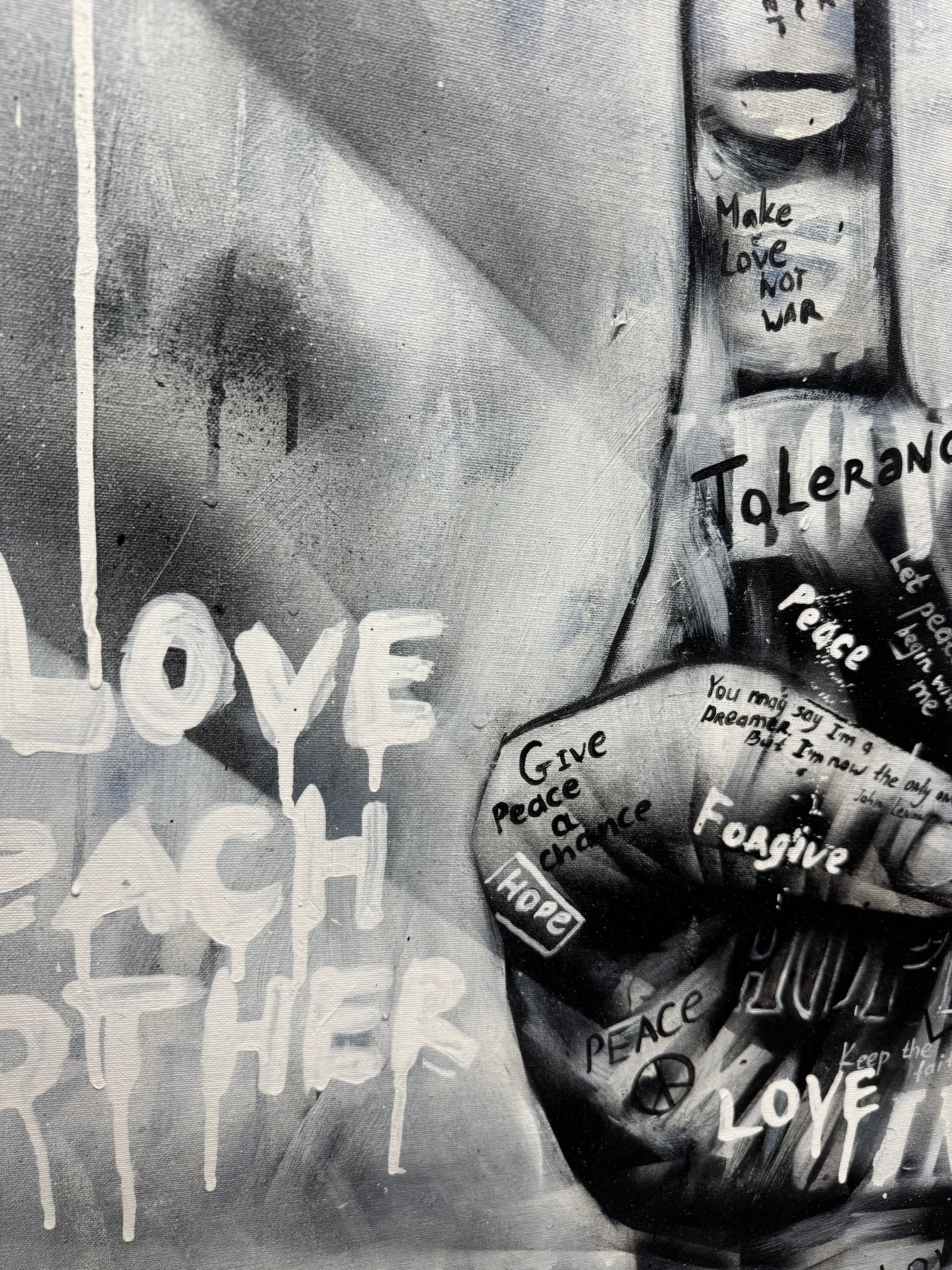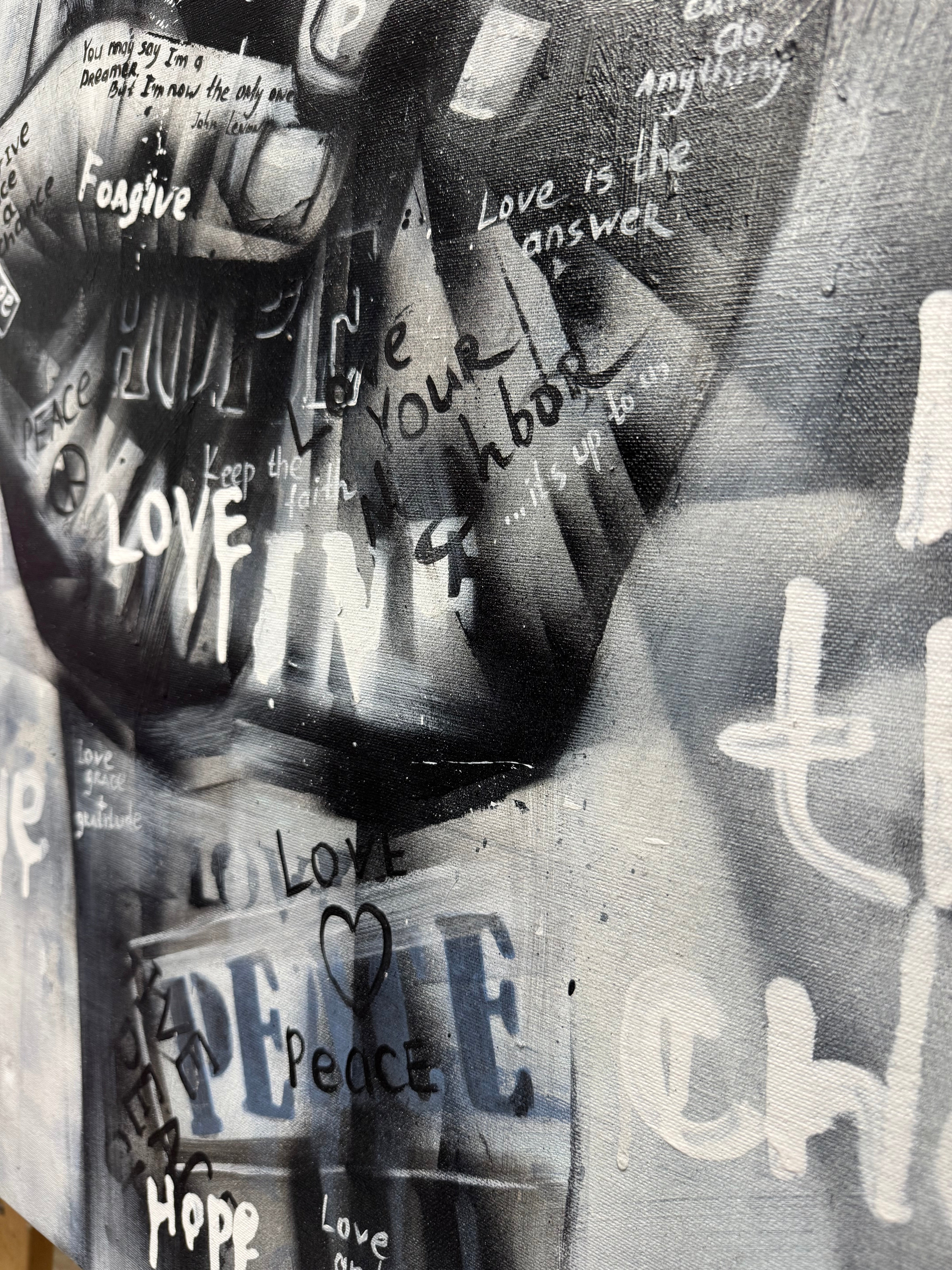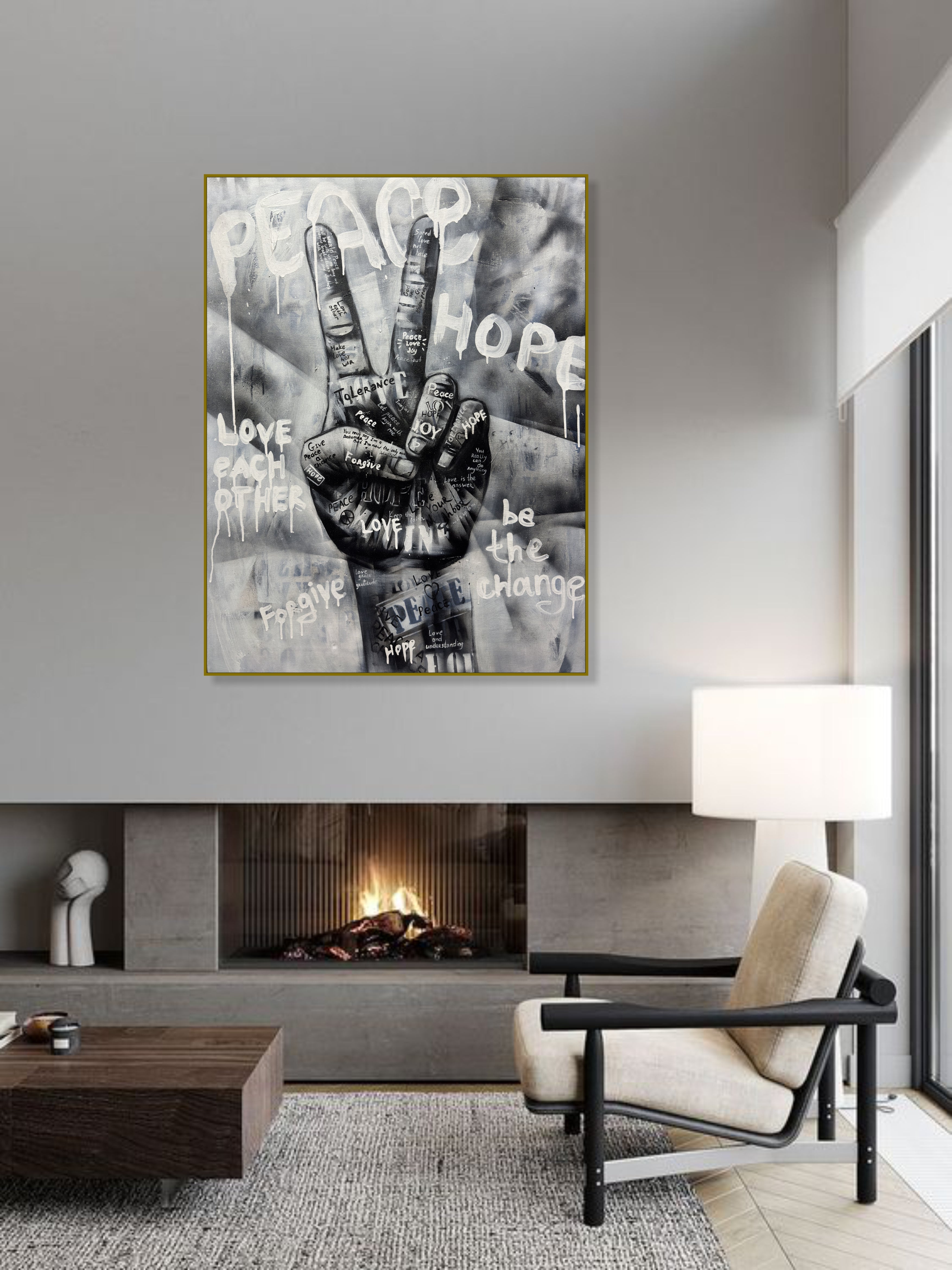 Peace Sign Word Pop Art Painting – Black and White Motivational Wall Decor | POWER OF WORDS | Trend Gallery Art Great Britain – Trendgallery.co.uk