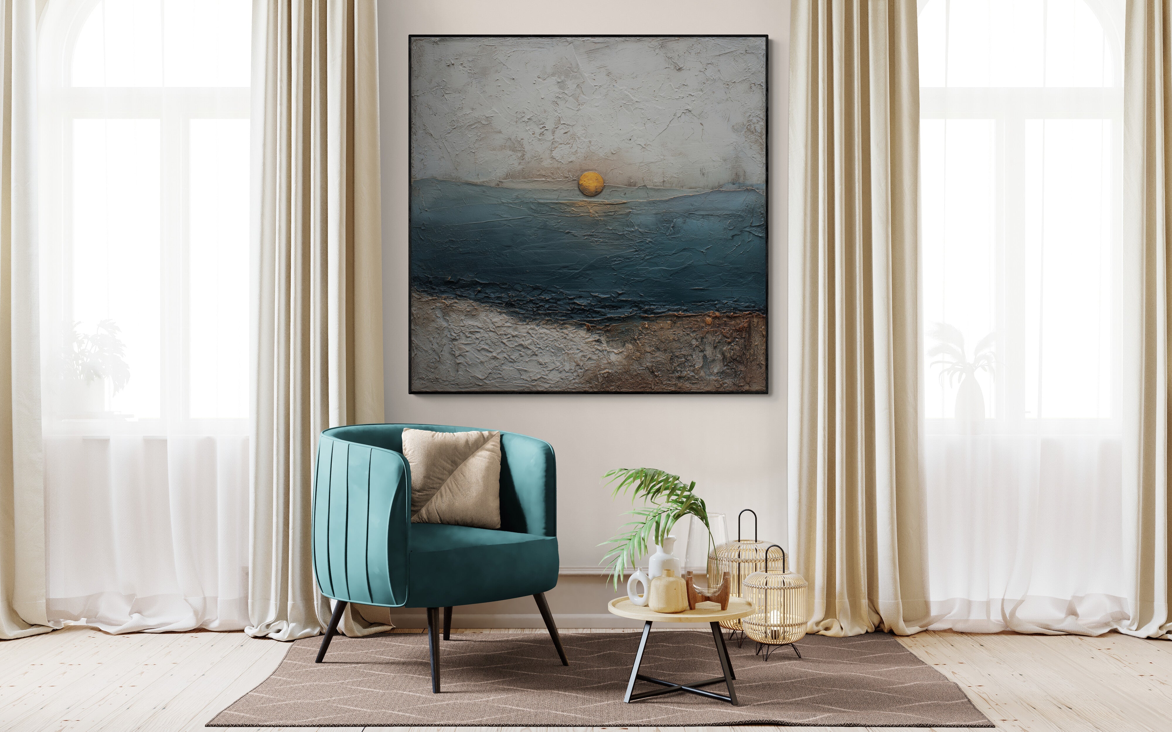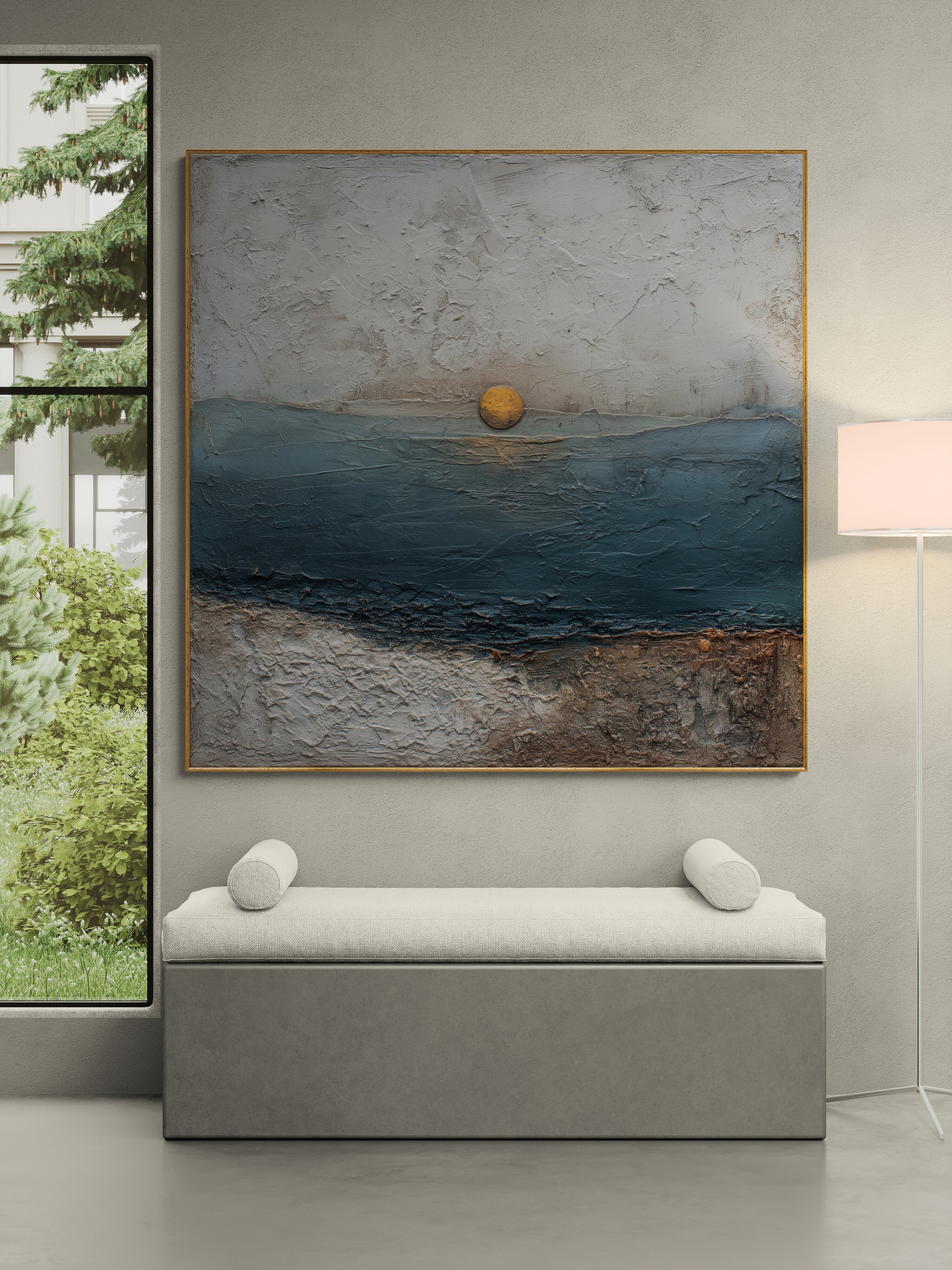 Large Abstract Landscape Painting, Blue Modern Neutral Wall Art | TrendGallery | Trend Gallery Art Great Britain – Trendgallery.co.uk