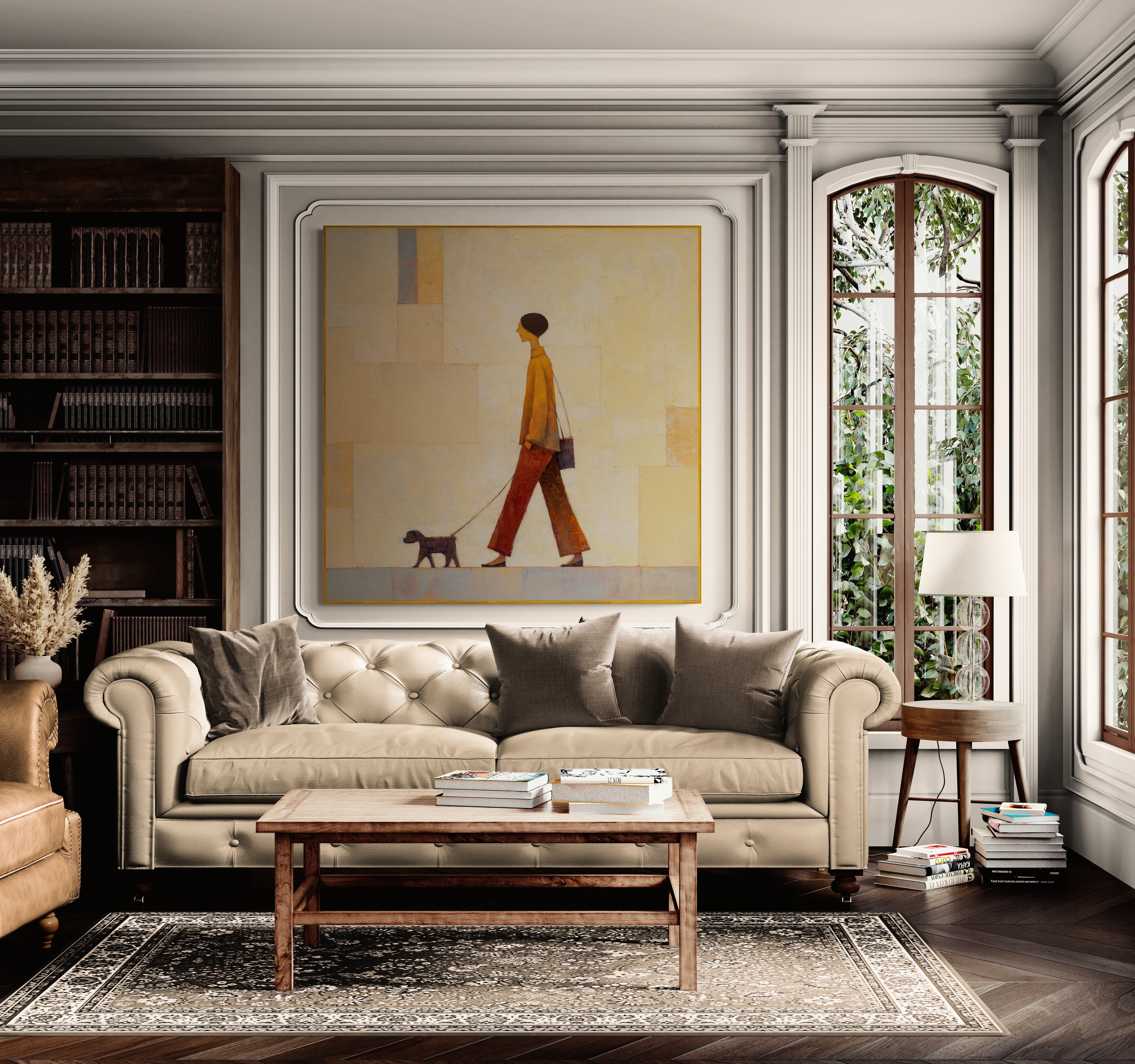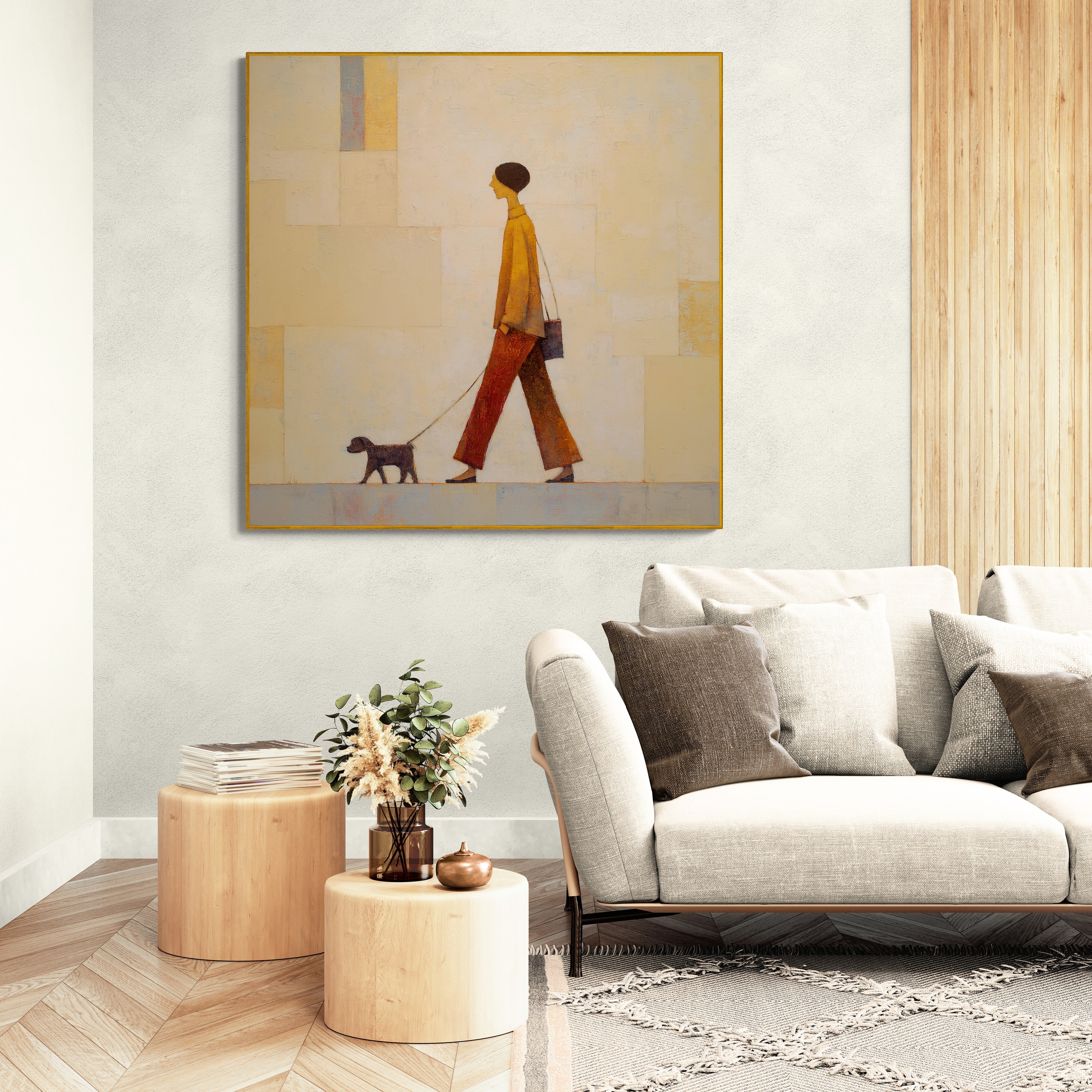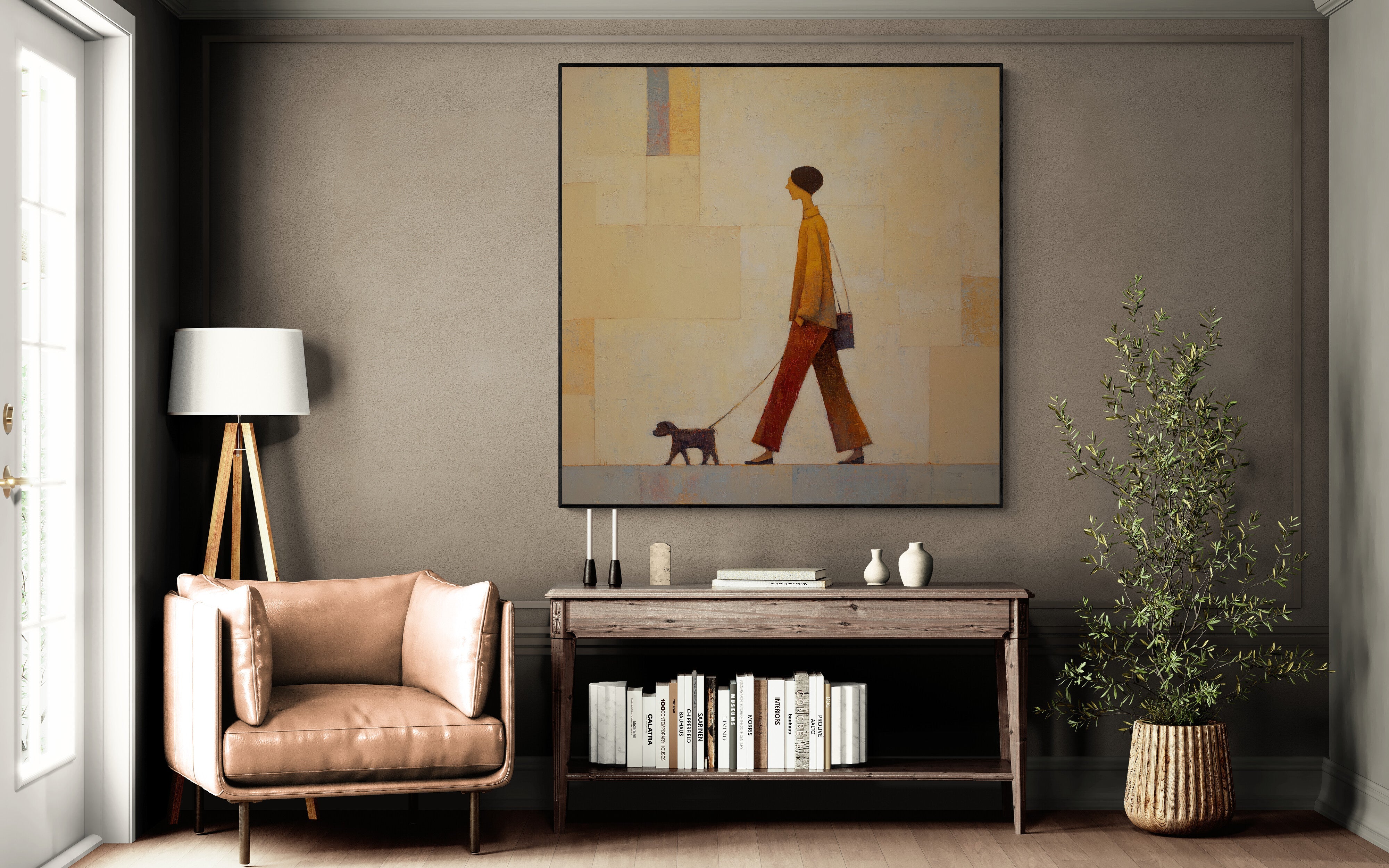 Large Abstract Walking Man with Dog Painting, Wabi Sabi Minimal Art | TrendGallery | Trend Gallery Art Great Britain – Trendgallery.co.uk