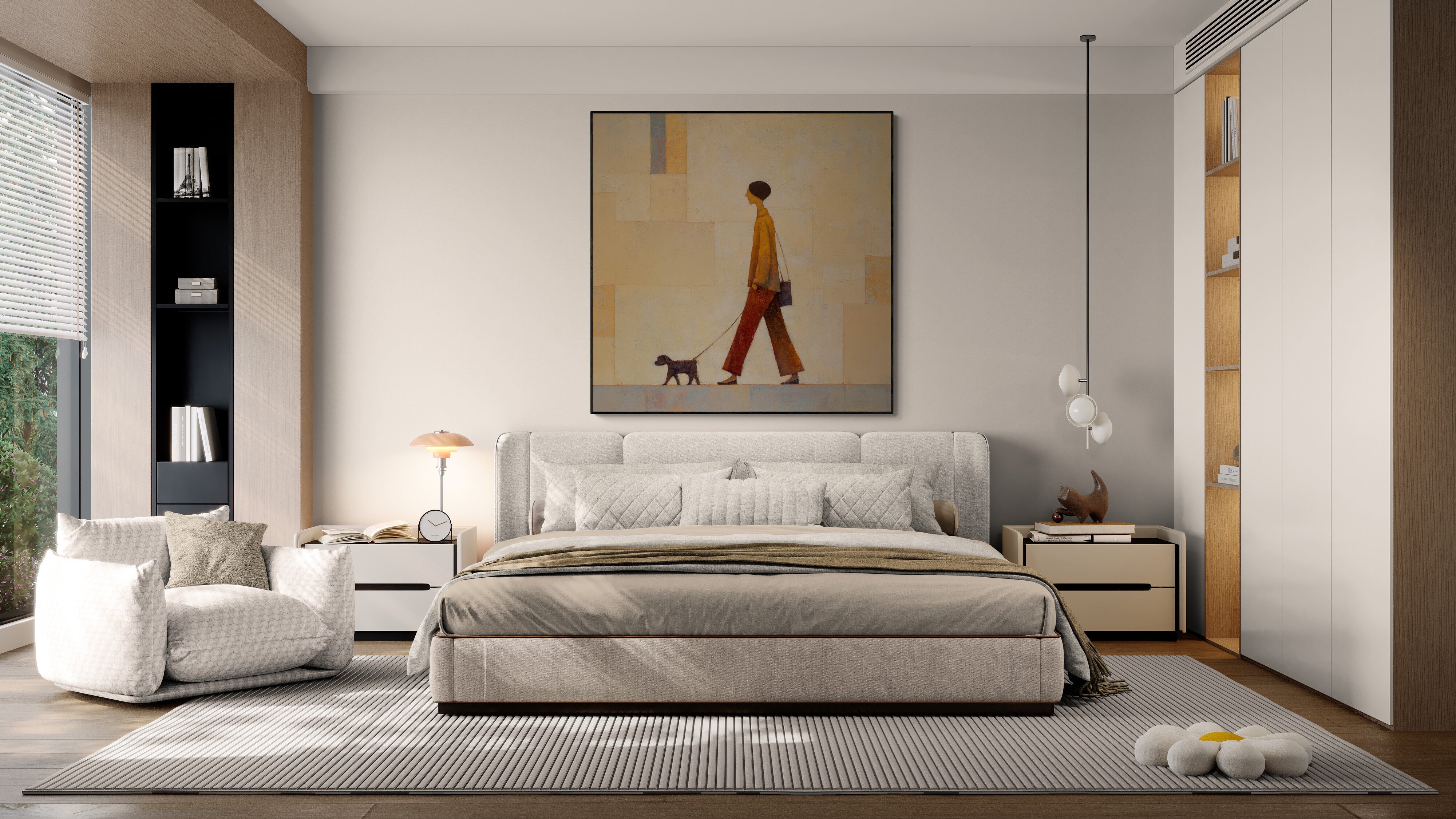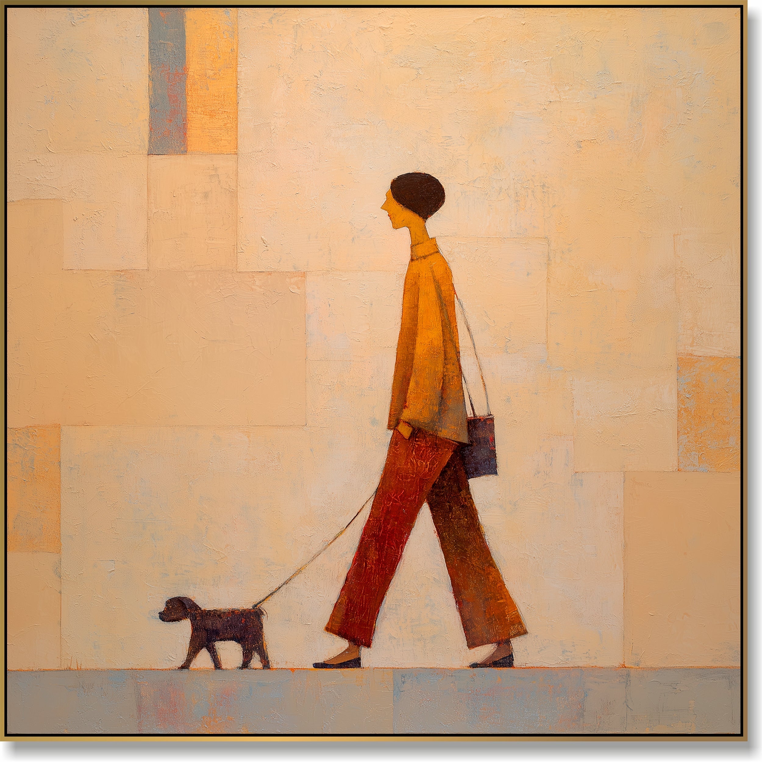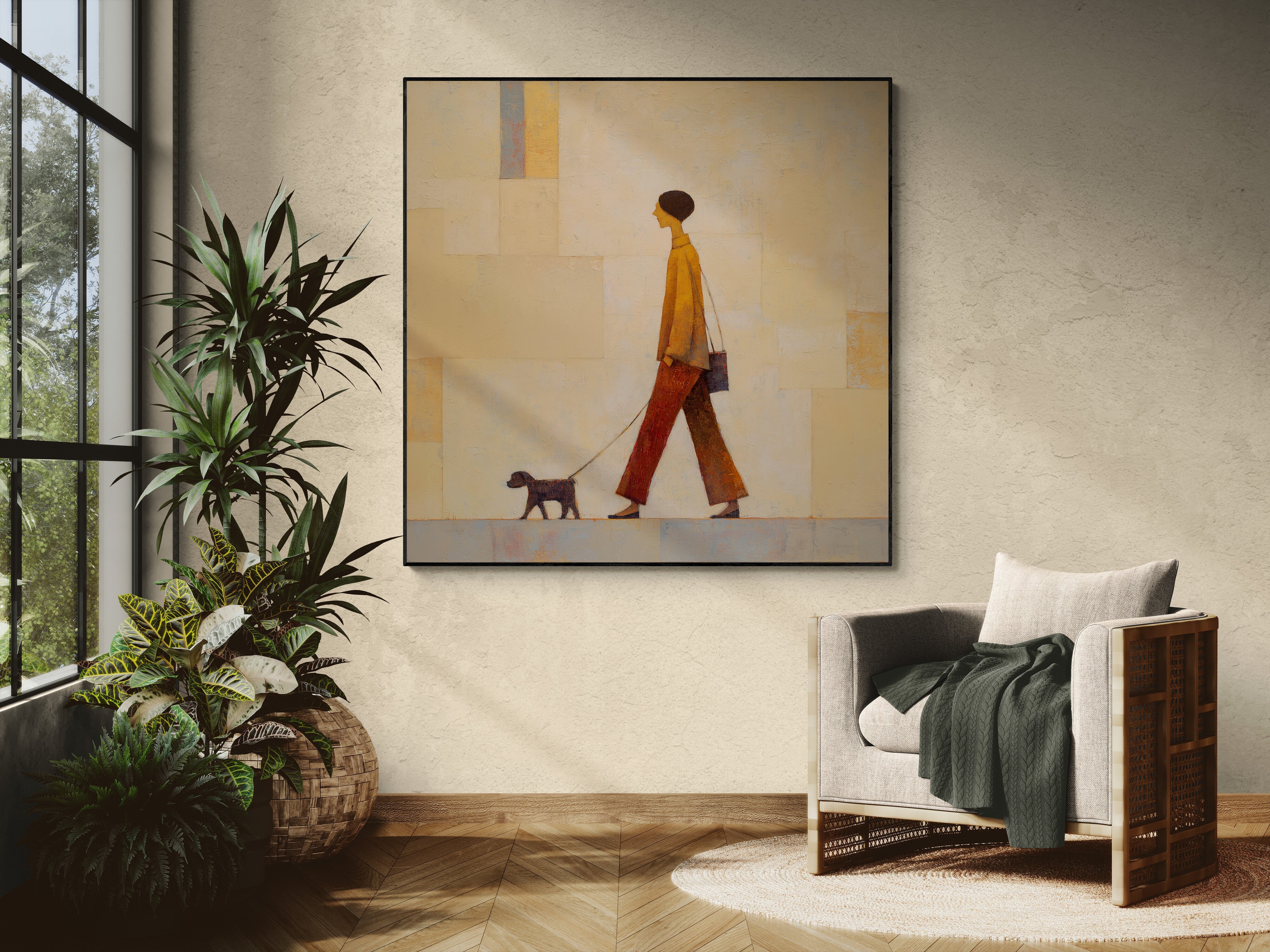 Large Abstract Walking Man with Dog Painting, Wabi Sabi Minimal Art | TrendGallery | Trend Gallery Art Great Britain – Trendgallery.co.uk