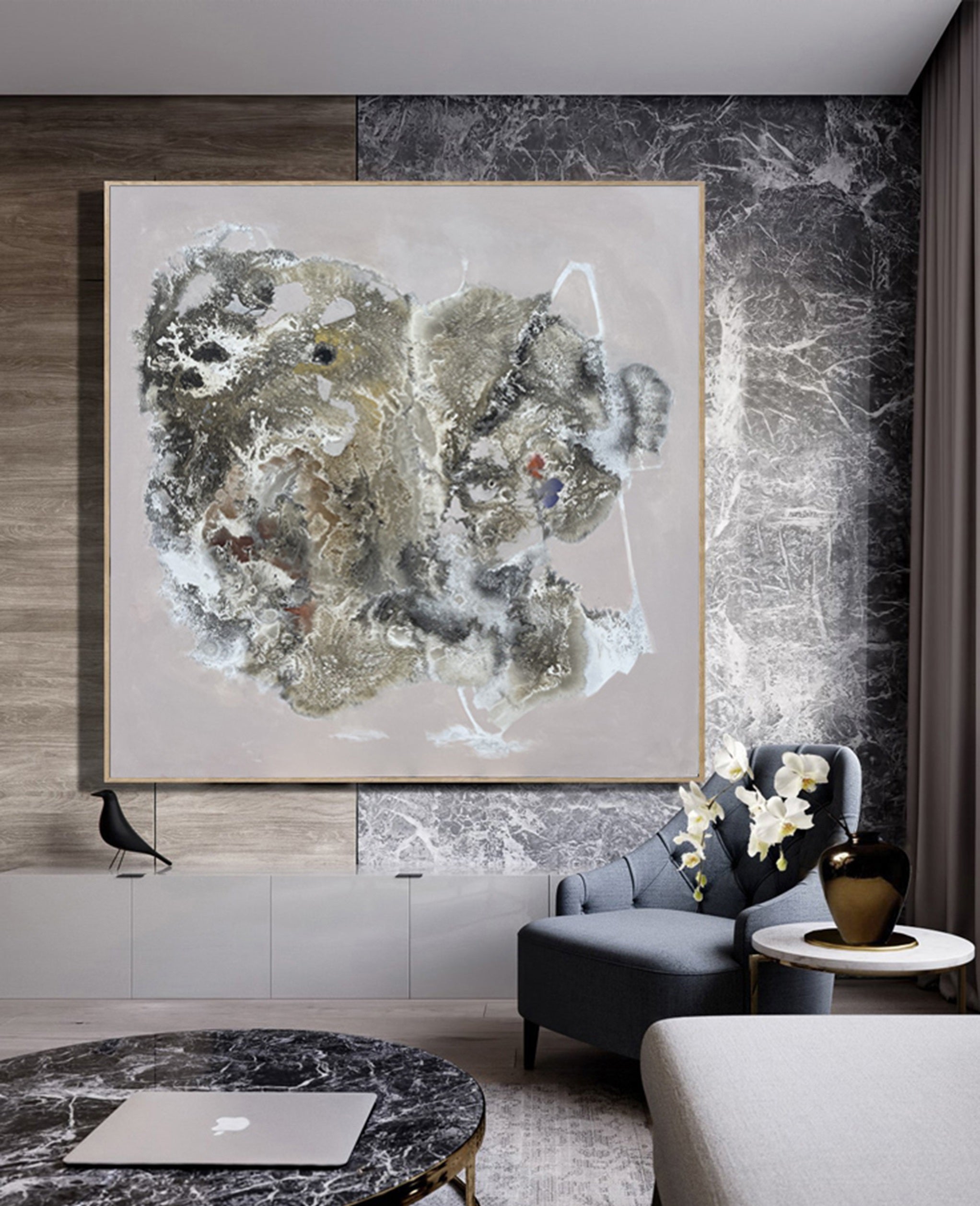 Large Abstract Beige Paintings On Canvas Textured Beige Wall Art Unique Handmade Painting Wall Decor | MAP OF ISLAND 46"x46" | Trend Gallery Art Great Britain – Trendgallery.co.uk