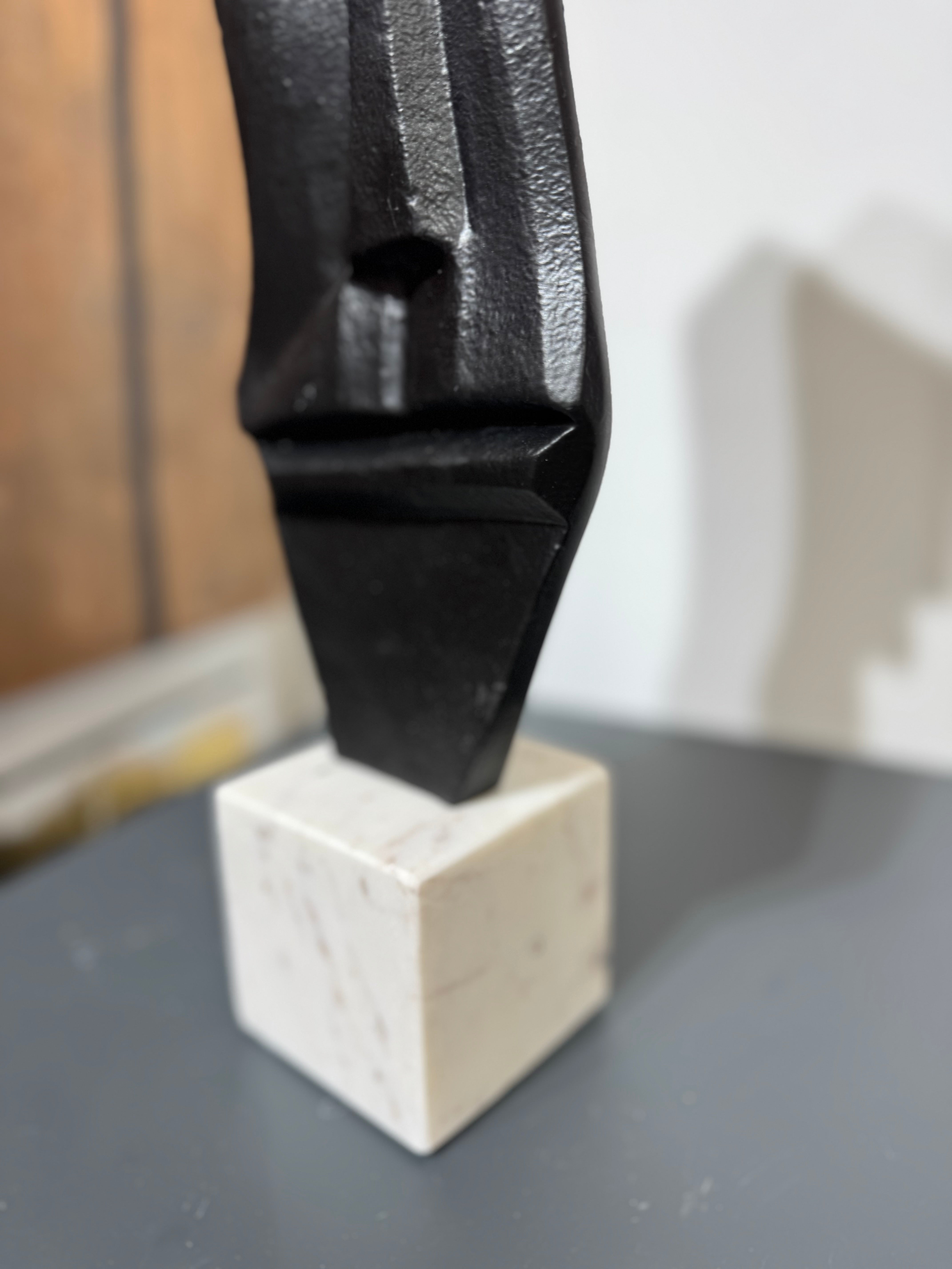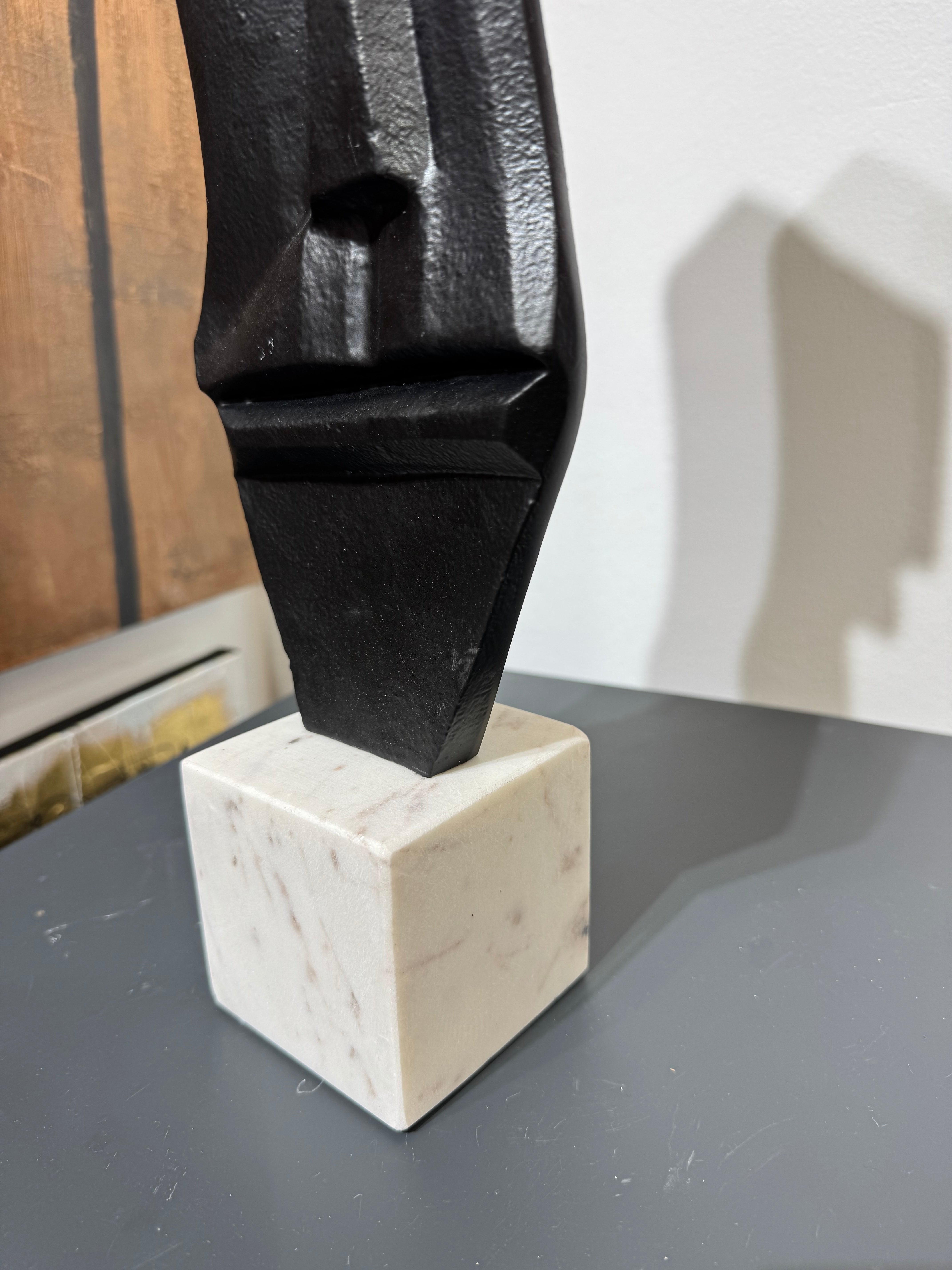 Crafted for lovers of sharp form and spatial tension, this modern black sculpture brings architectural edge to any space. A matte black silhouette rises with sculpted confidence from a polished white marble base—balancing brutalist expression with refined minimalism. Perfect for desktops, shelves, or gallery walls, it adds high-concept elegance to modern homes or offices seeking a bold, sculptural statement.