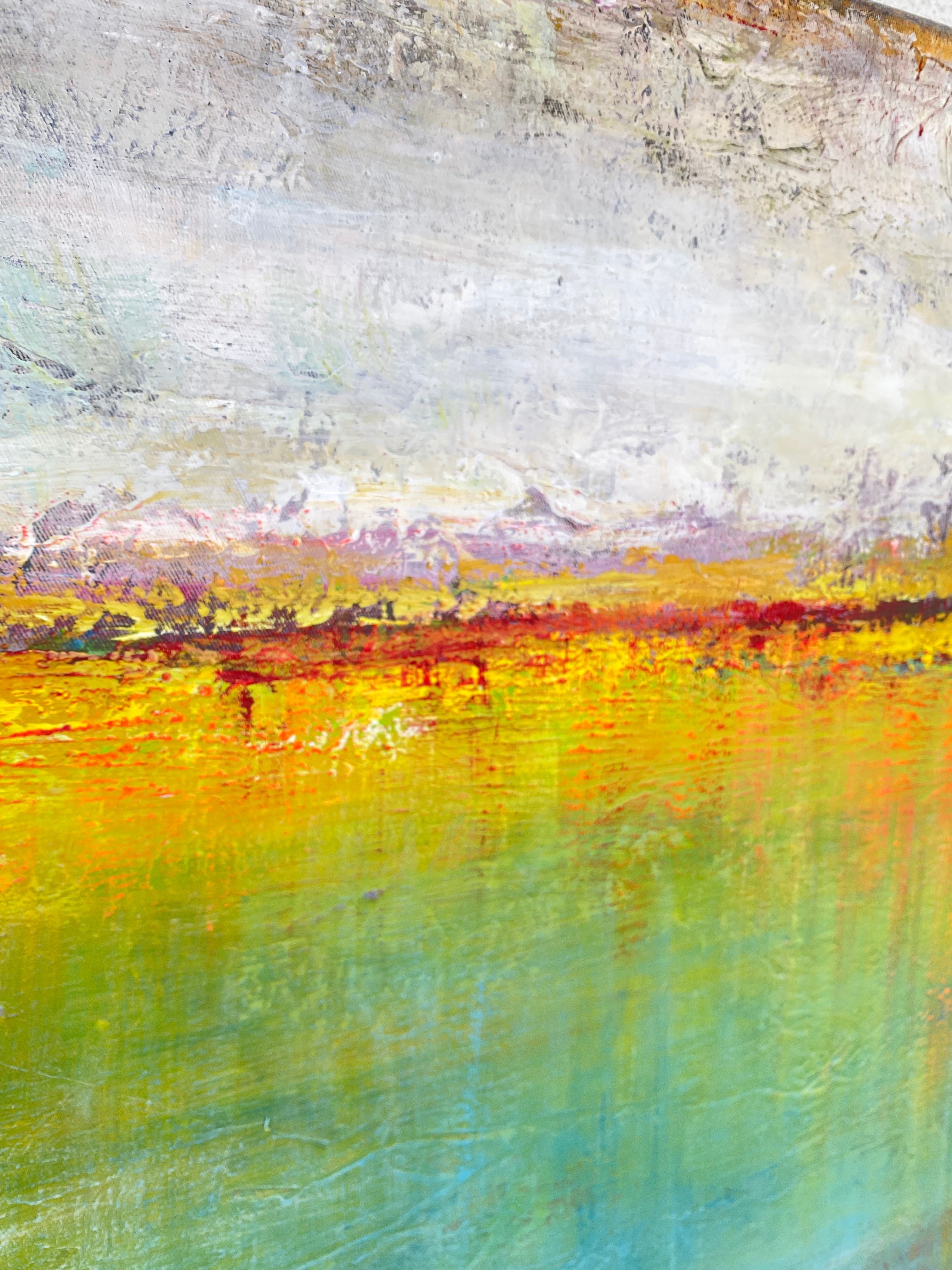 "Tranquil Mirage" is a captivating abstract landscape that evokes a sense of serenity and dreamlike wonder. Soft hues of blue and green blend seamlessly, creating a tranquil horizon where sky and earth dissolve into one another. Gentle brushstrokes and rich acrylic textures add depth, allowing light and shadow to dance across the canvas. The impressionist essence of the piece invites contemplation, offering a peaceful escape into an ethereal, almost meditative world. Perfect as a centerpiece, this textured artwork transforms any living space into a sanctuary of calm and elegance.