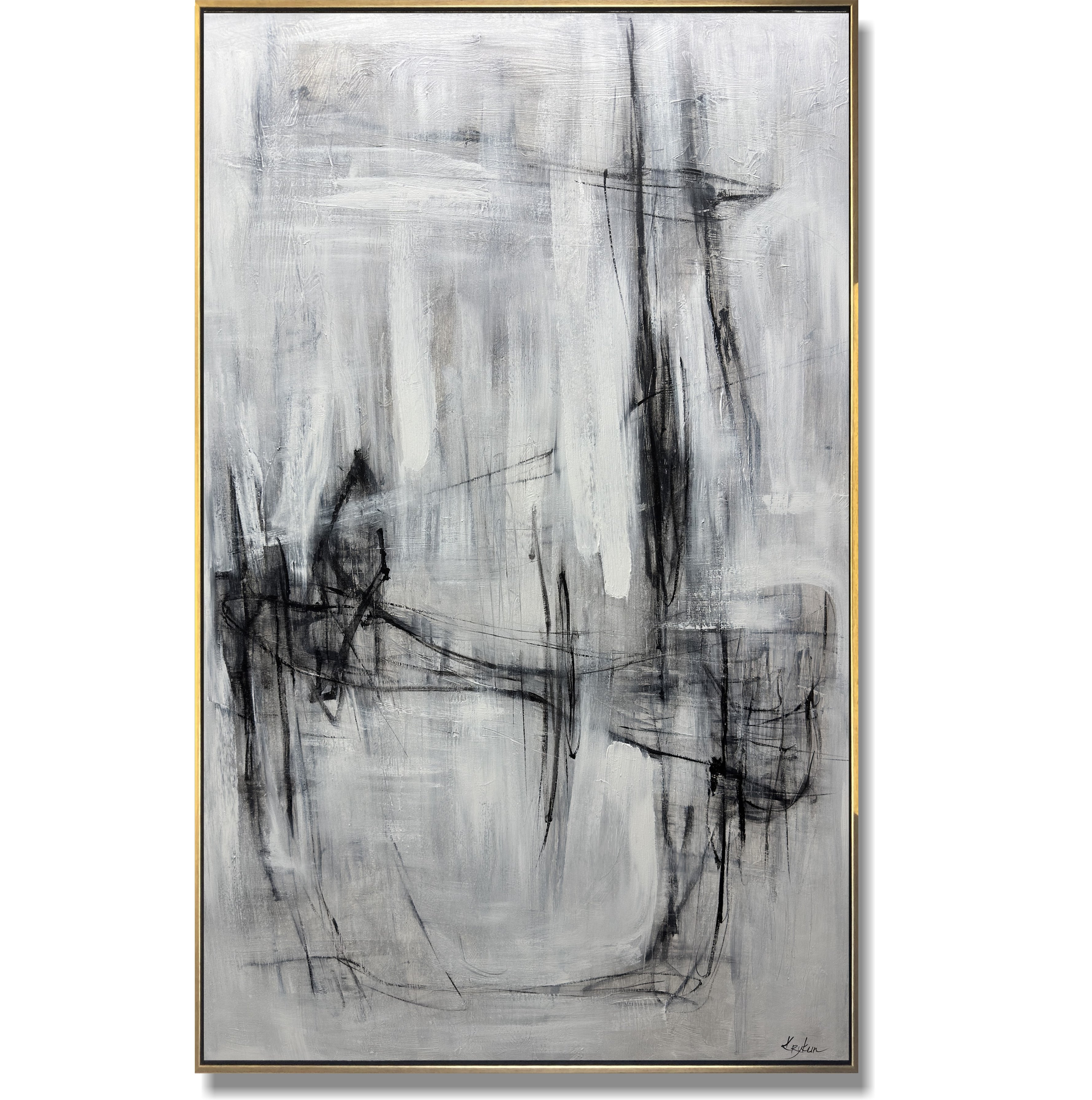 Black and White Abstract Painting Vertical Modern Wall Art on Canvas Framed Monochrome Artwork for Living Room or Office Decor ECHOES IN SILENCE | Trend Gallery Art Great Britain – Trendgallery.co.uk