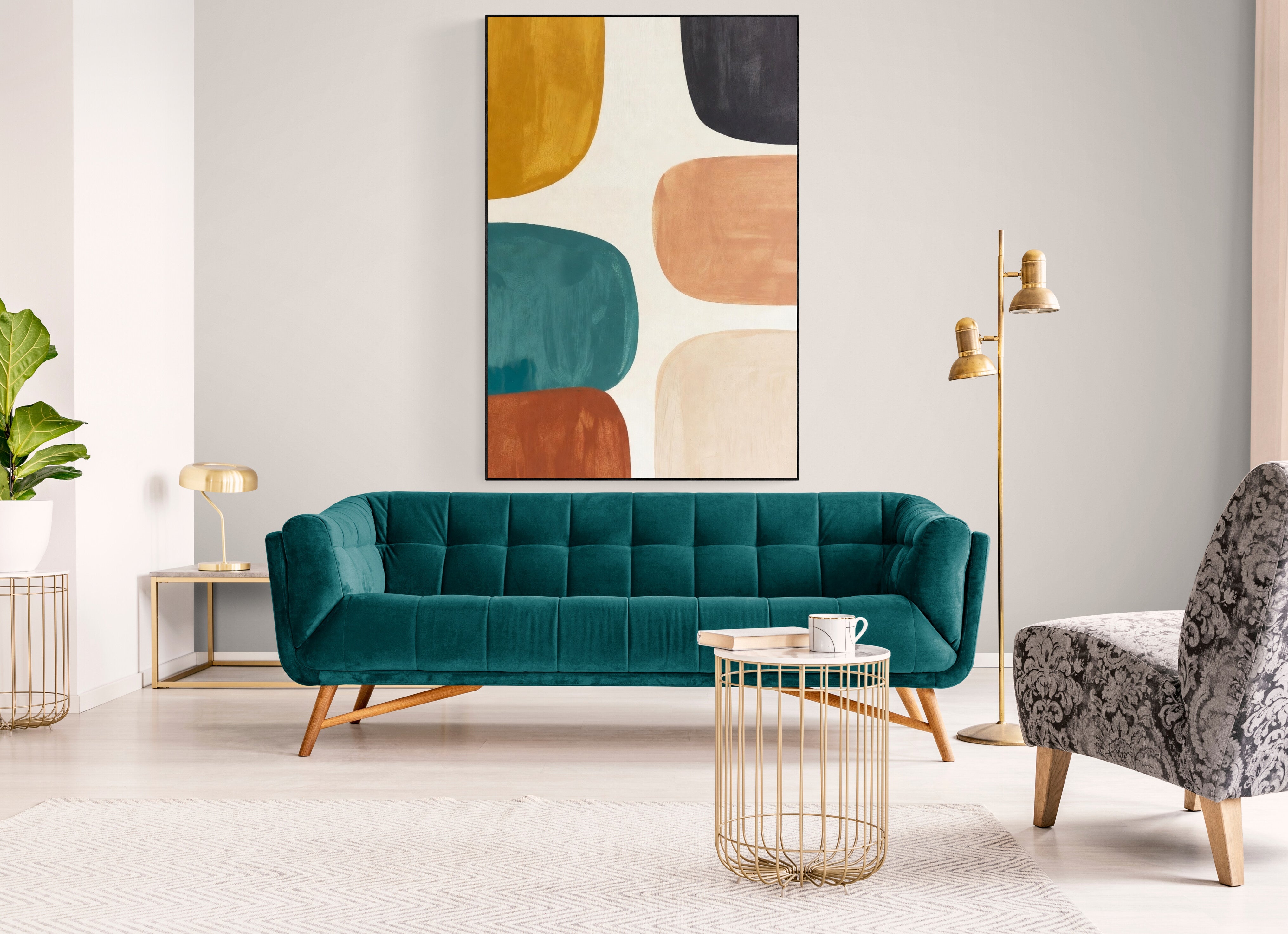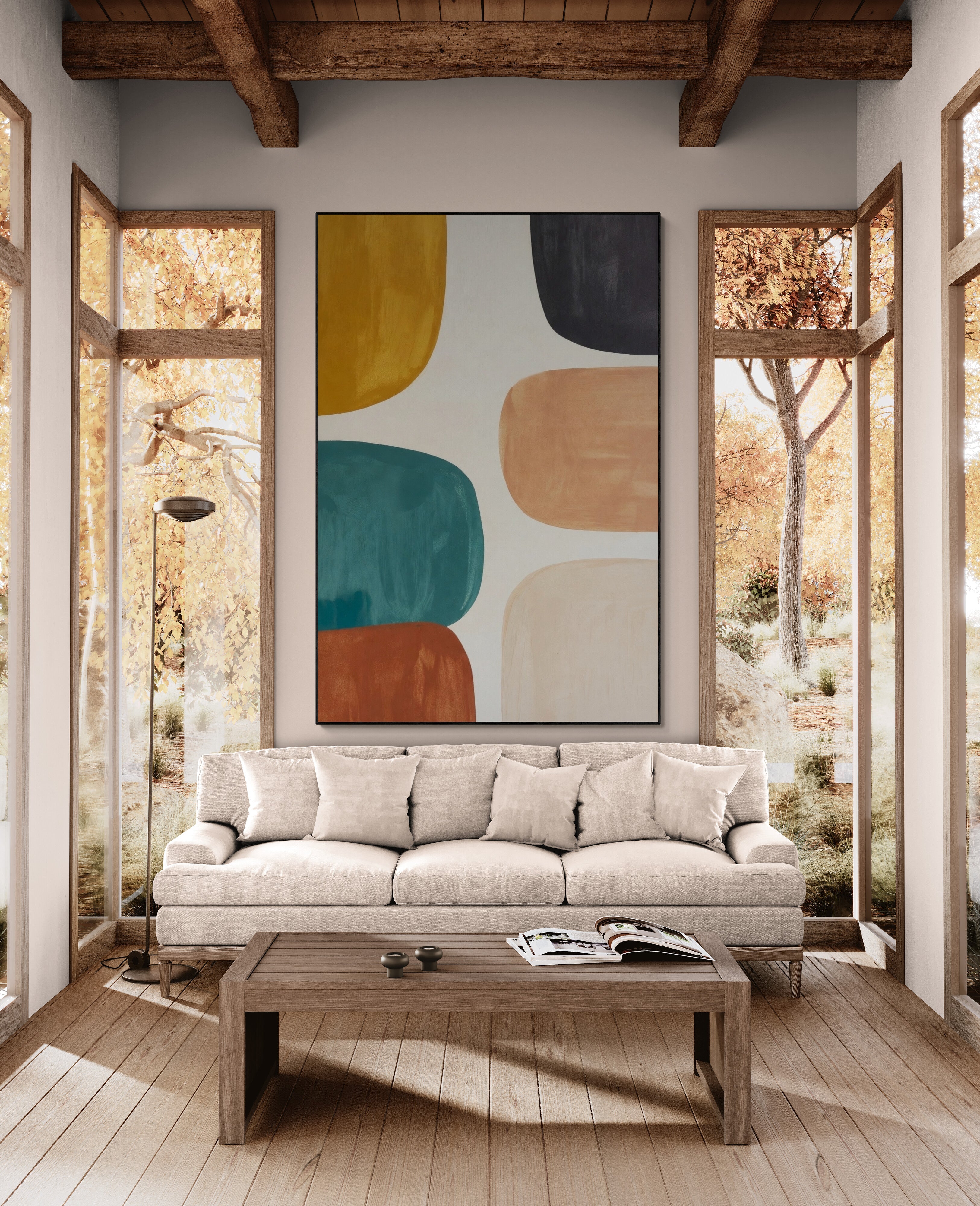 Bright geometric abstract painting with bold colorful shapes, perfect for modern interiors. A lively focal point for any room. Shop now and refresh your space!