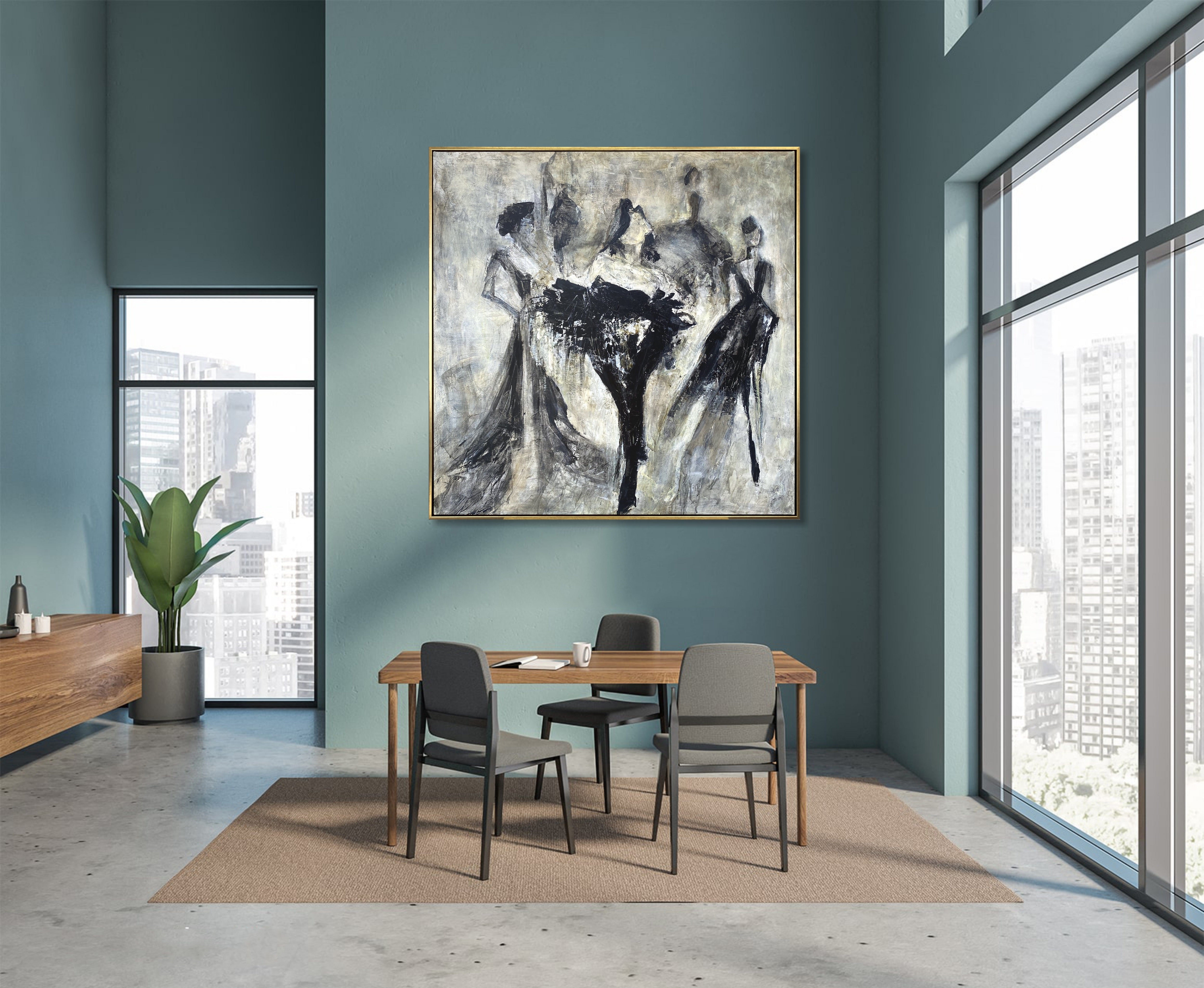 Elegant Ballet Dancers Abstract Painting in Black and White Monochrome Figurative Art Modern Textured Graceful Painting for Home Wall Decor | SHADOW CHOREOGRAPHY | Trend Gallery Art Great Britain – Trendgallery.co.uk