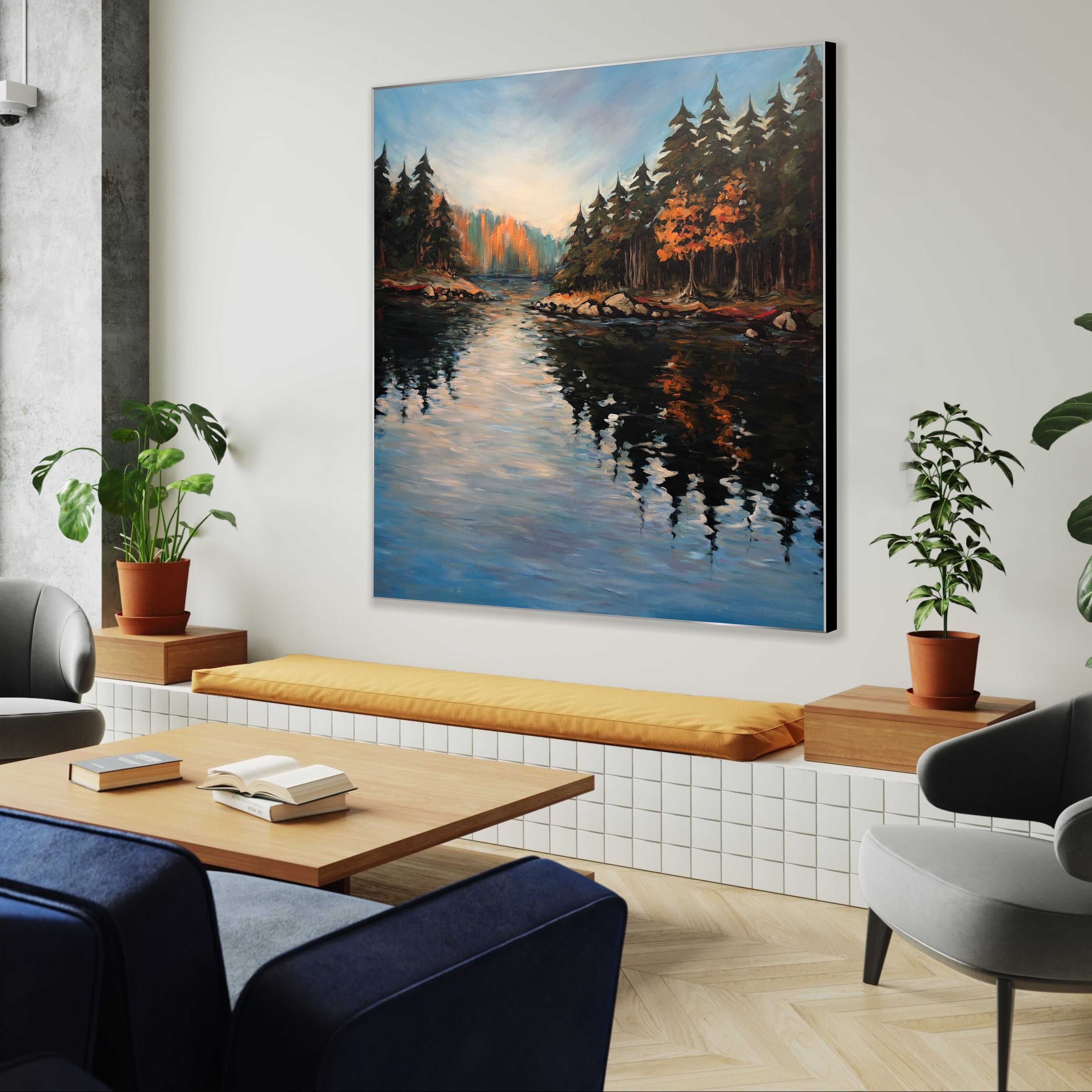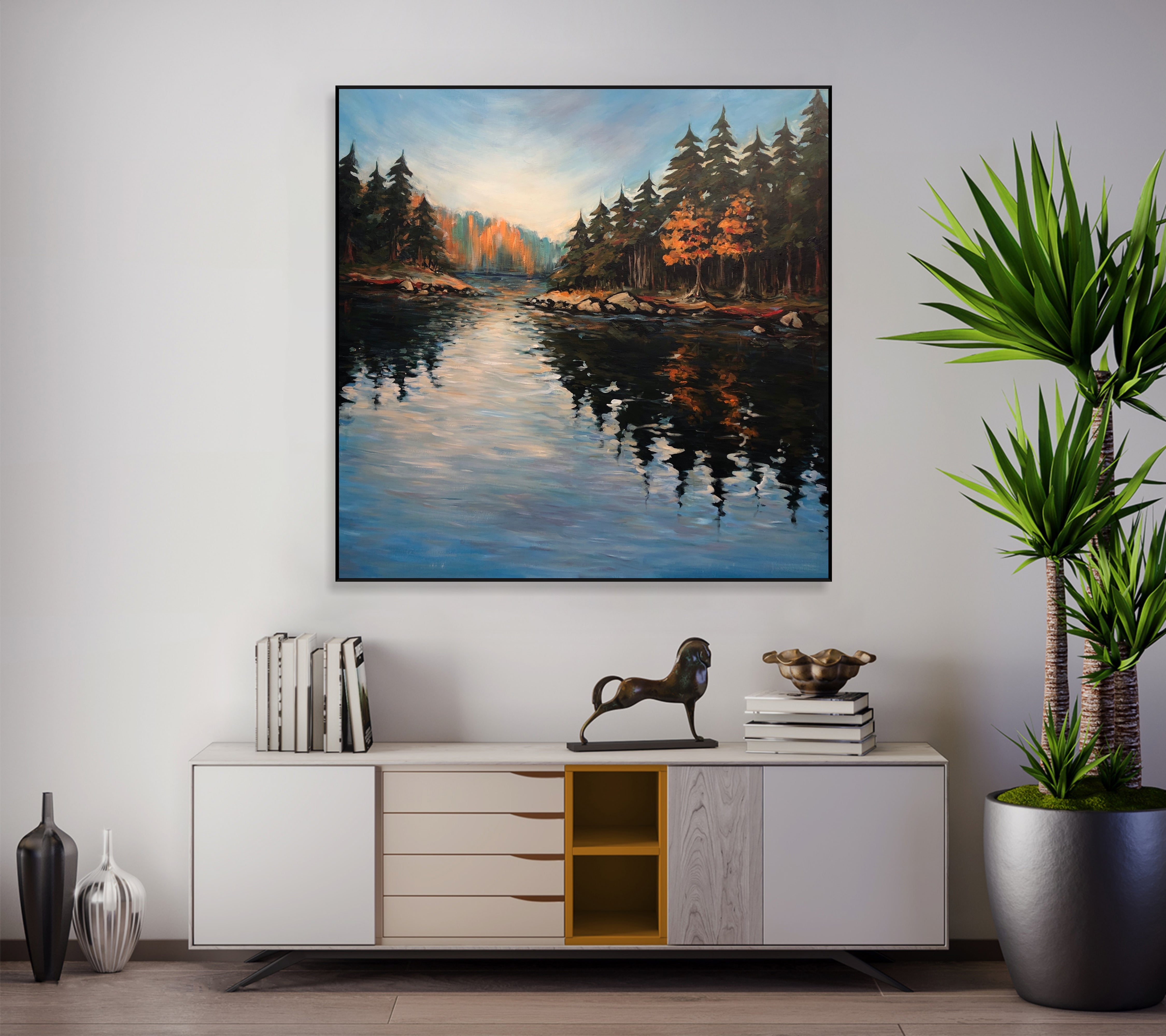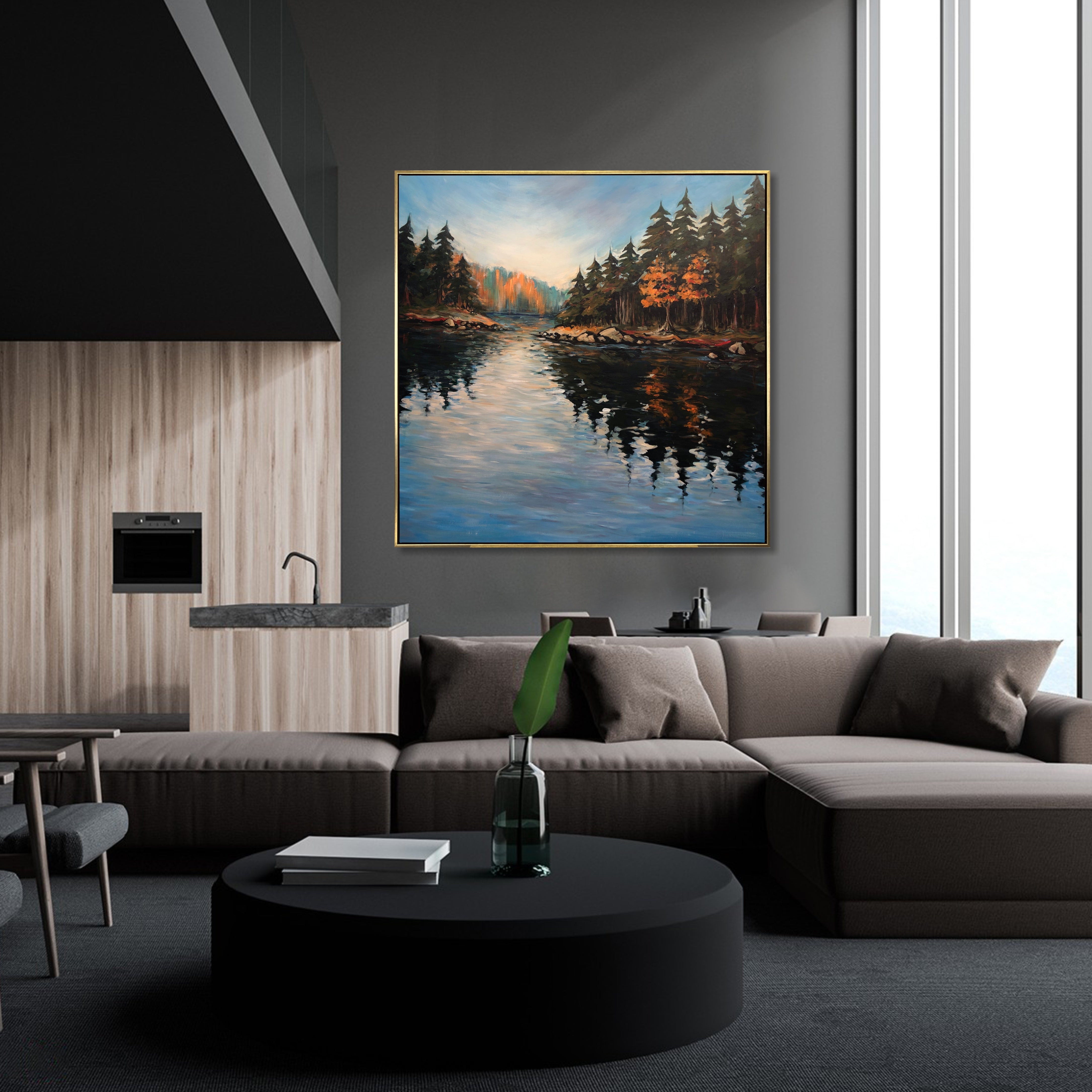 Forest Painting Abstract Autumn Landscape Wall Art Lake Painting Nature Paintings on Canvas Large Wall Art Modern Art Living Room Decor AUTUMN GLOW | Trend Gallery Art Great Britain – Trendgallery.co.uk
