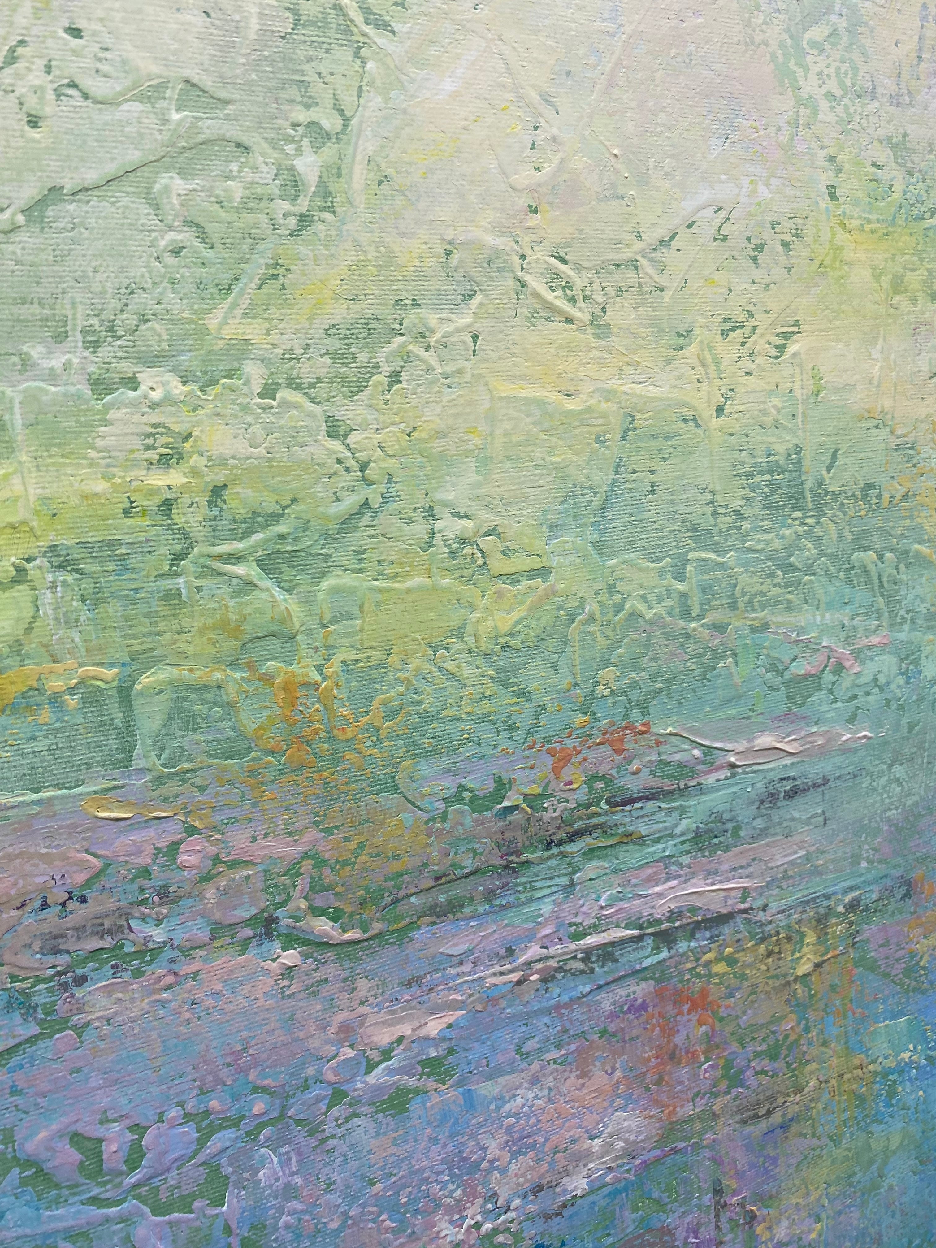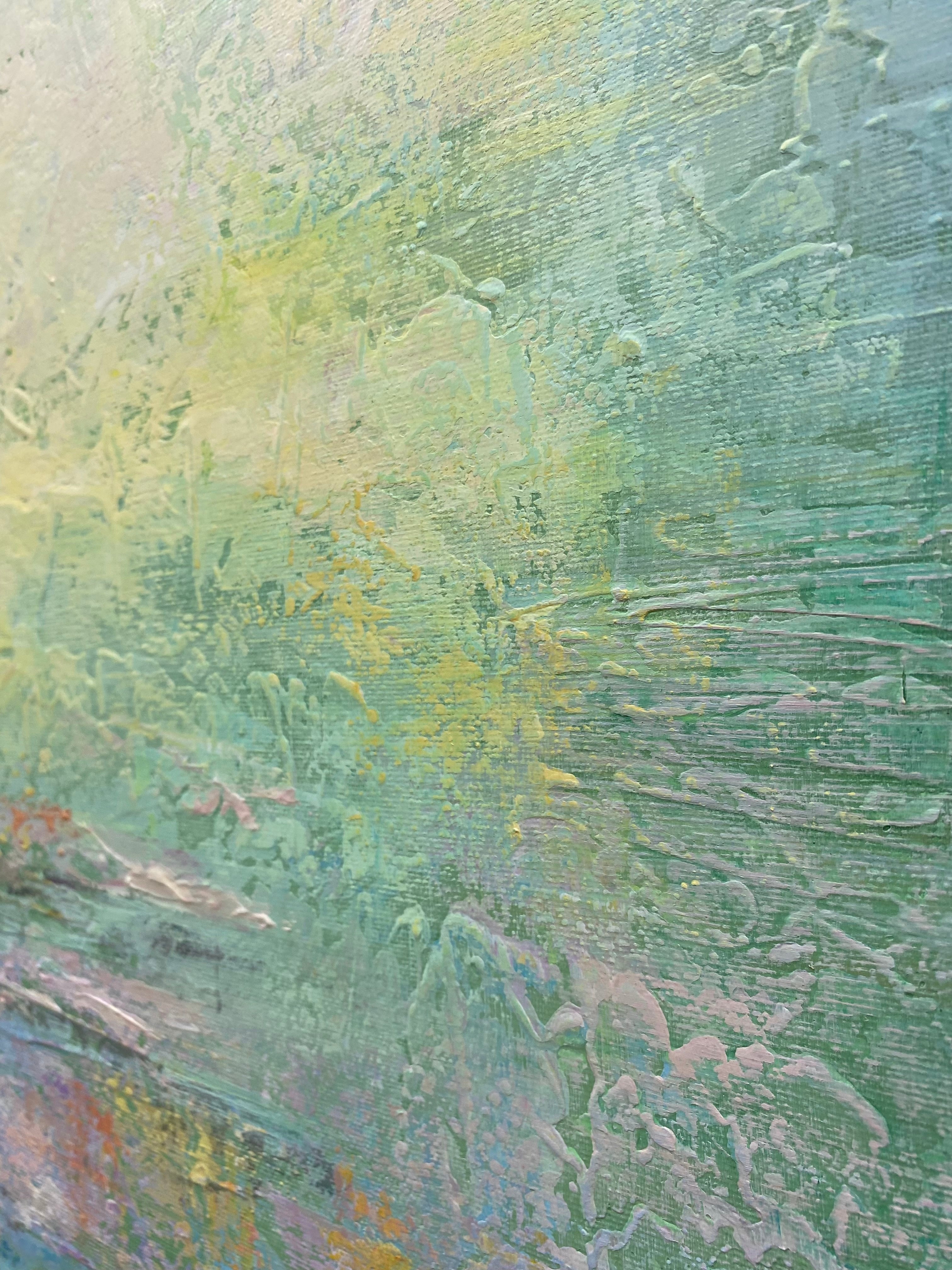 The artist depicted the human youth on his oil painting when all the doors are open for you and you can easily conquer any peaks. The artist used warm hues of yellow and green and added blue azure, to create a sense of an endless sunny meadow. This original artwork will be a worthy choice for a cozy living room or hallway, decorated in bright colors.