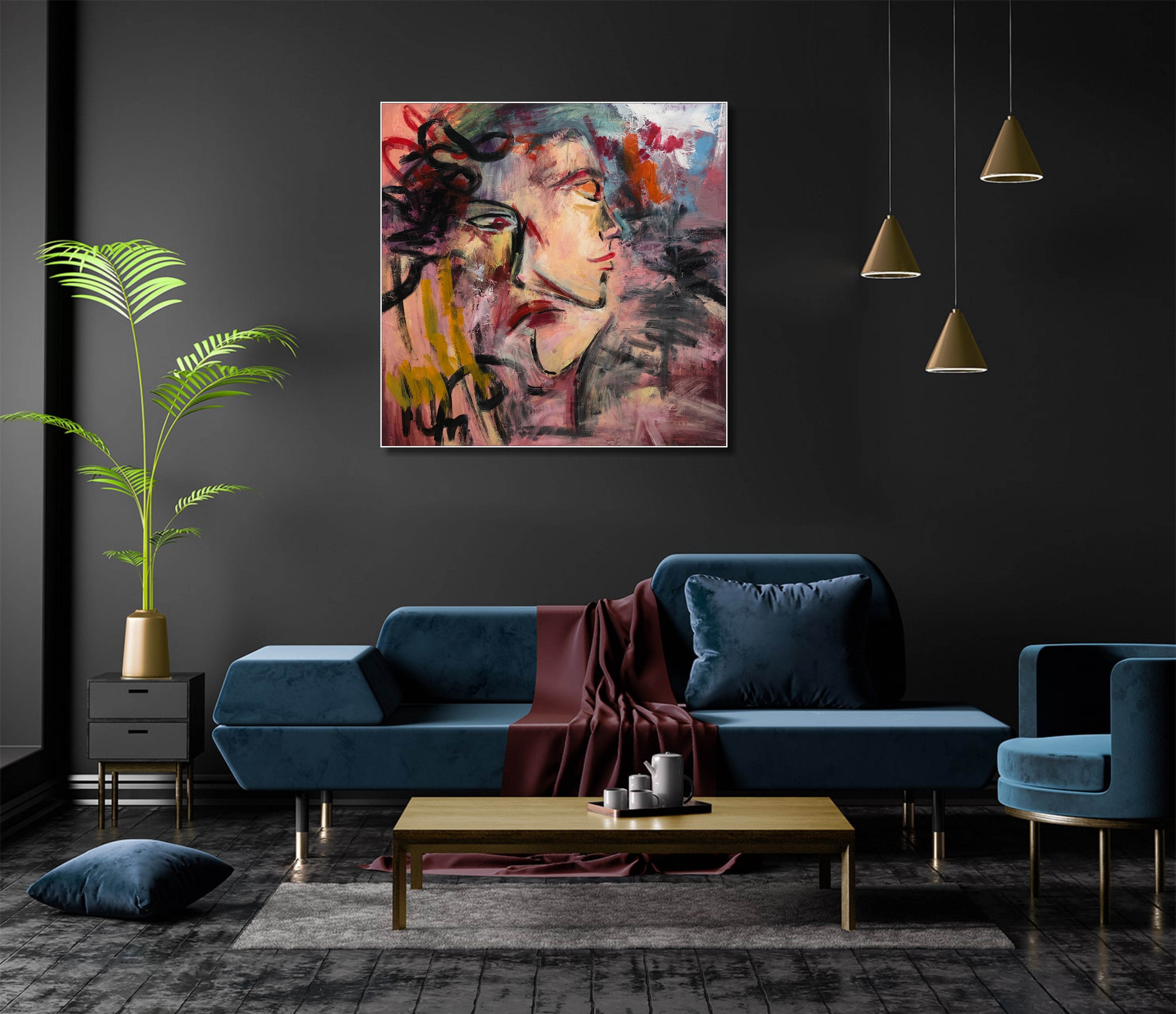 This captivating abstract painting brings emotions to life with bold brushstrokes and vibrant colors of red, pink, yellow, and blue. The expressionist style portrays a human face in an imaginative, contemporary form, evoking creativity and introspection. Perfect for modern interiors, it adds a dynamic touch to any space. Whether displayed in a home or office, this unique artwork will captivate and inspire. Ideal for art lovers seeking originality and bold design.