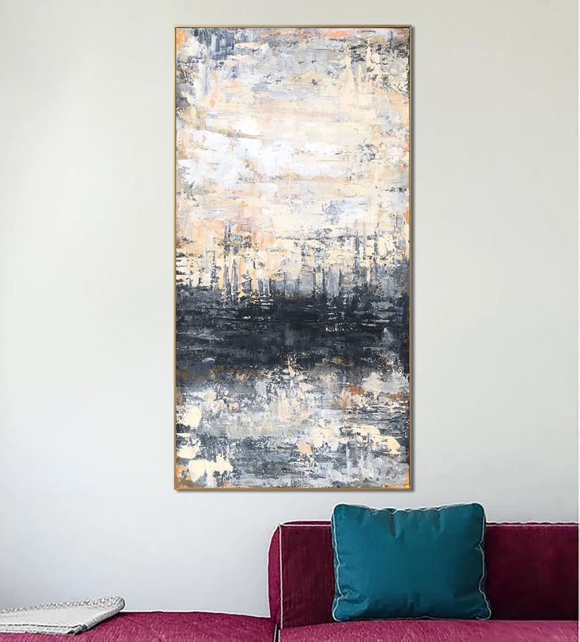 Large Abstract Original Oil Painting Canvas Black And White Wall Art Contemporary Monochrome Painting Room Decor | NATURE OF INCONCEIVABLE 36"x18" | Trend Gallery Art Great Britain – Trendgallery.co.uk