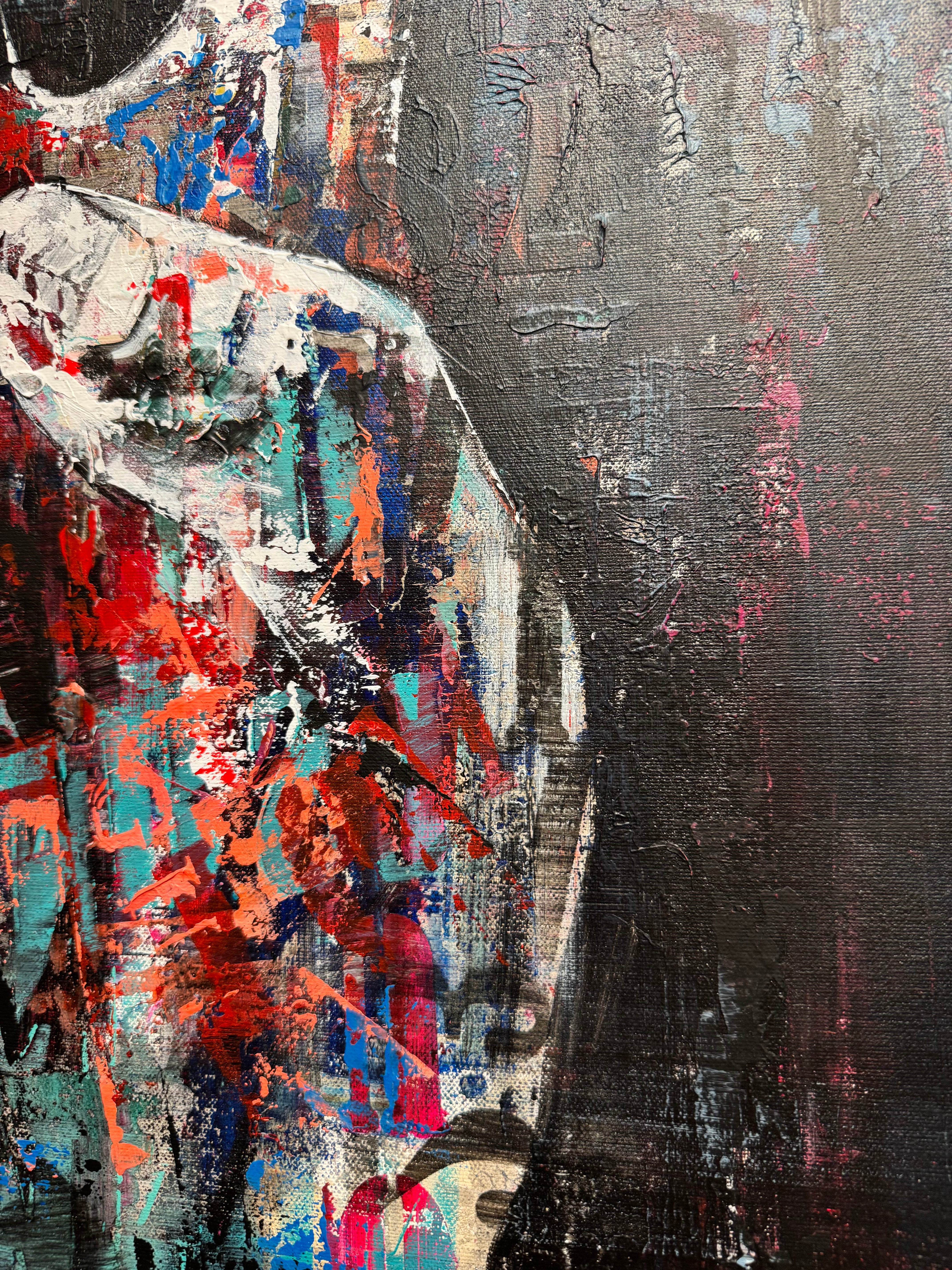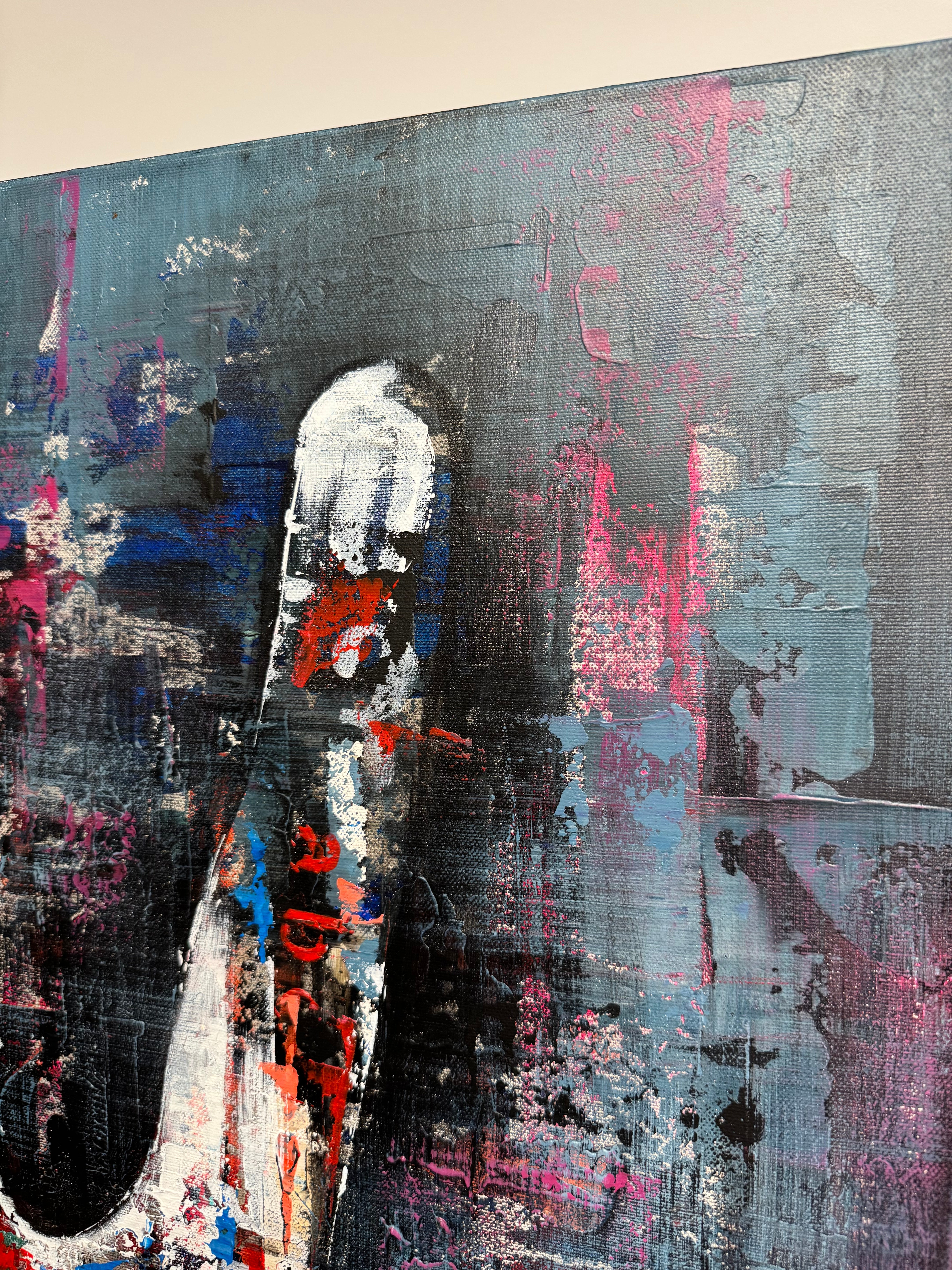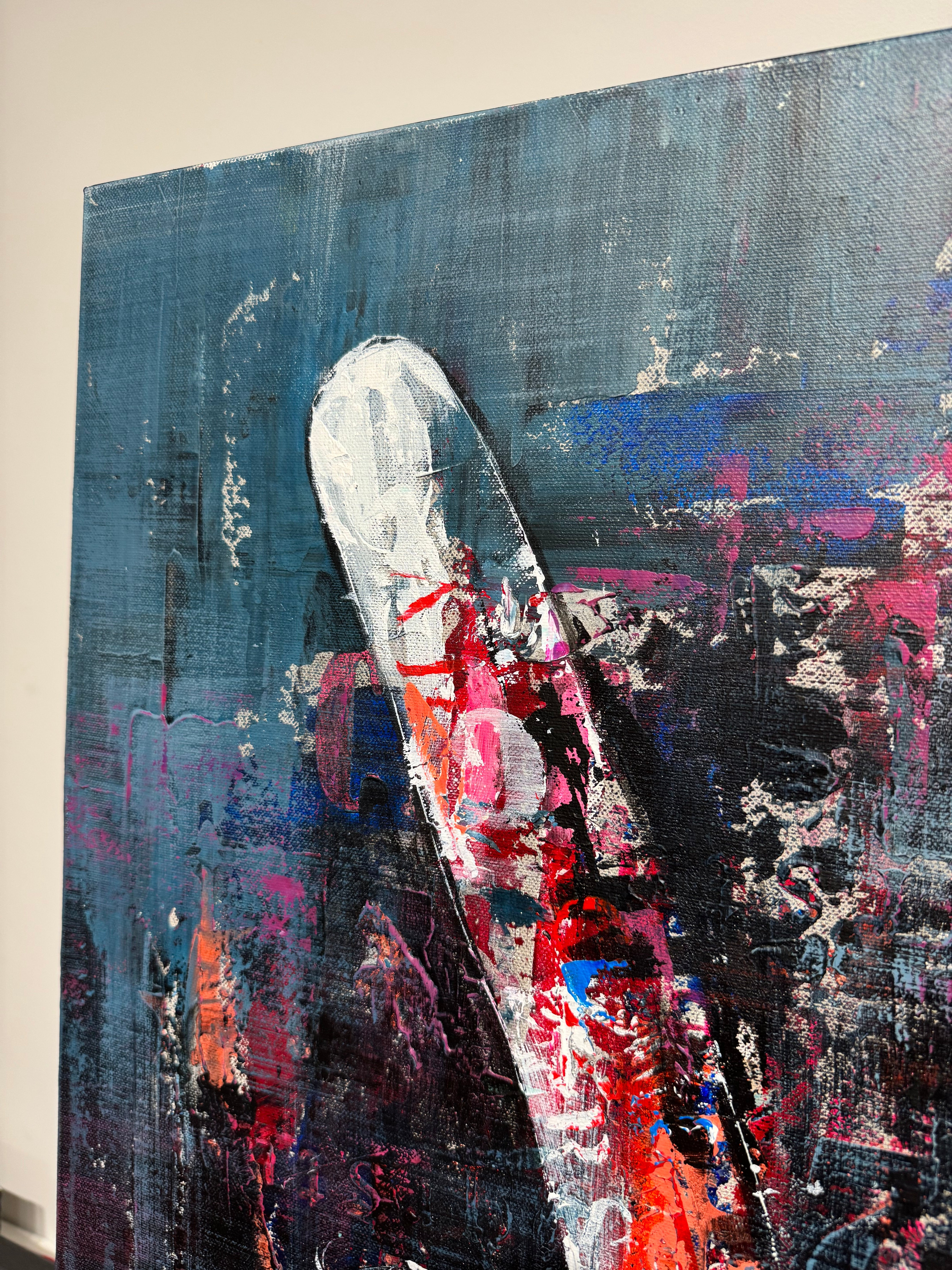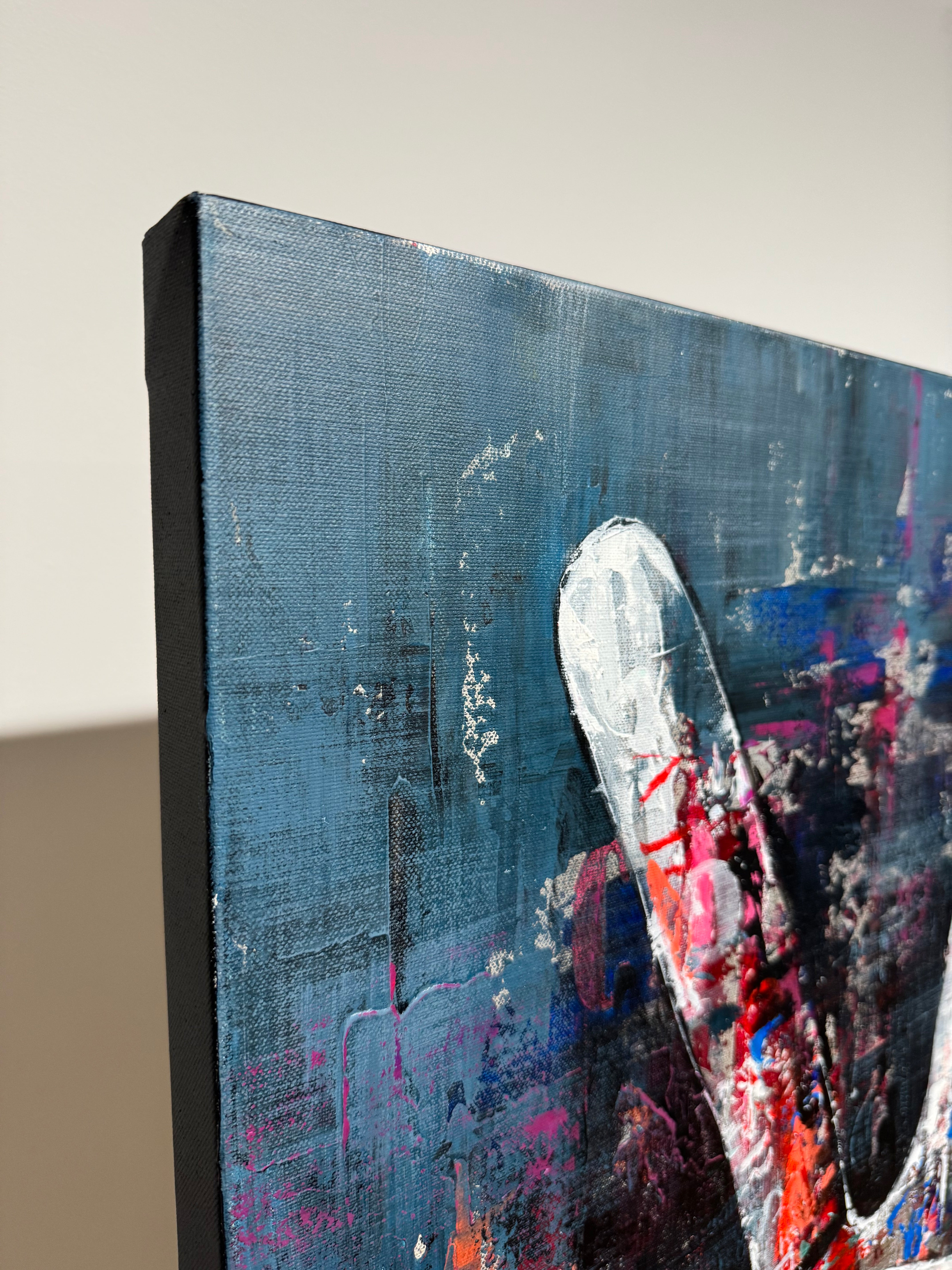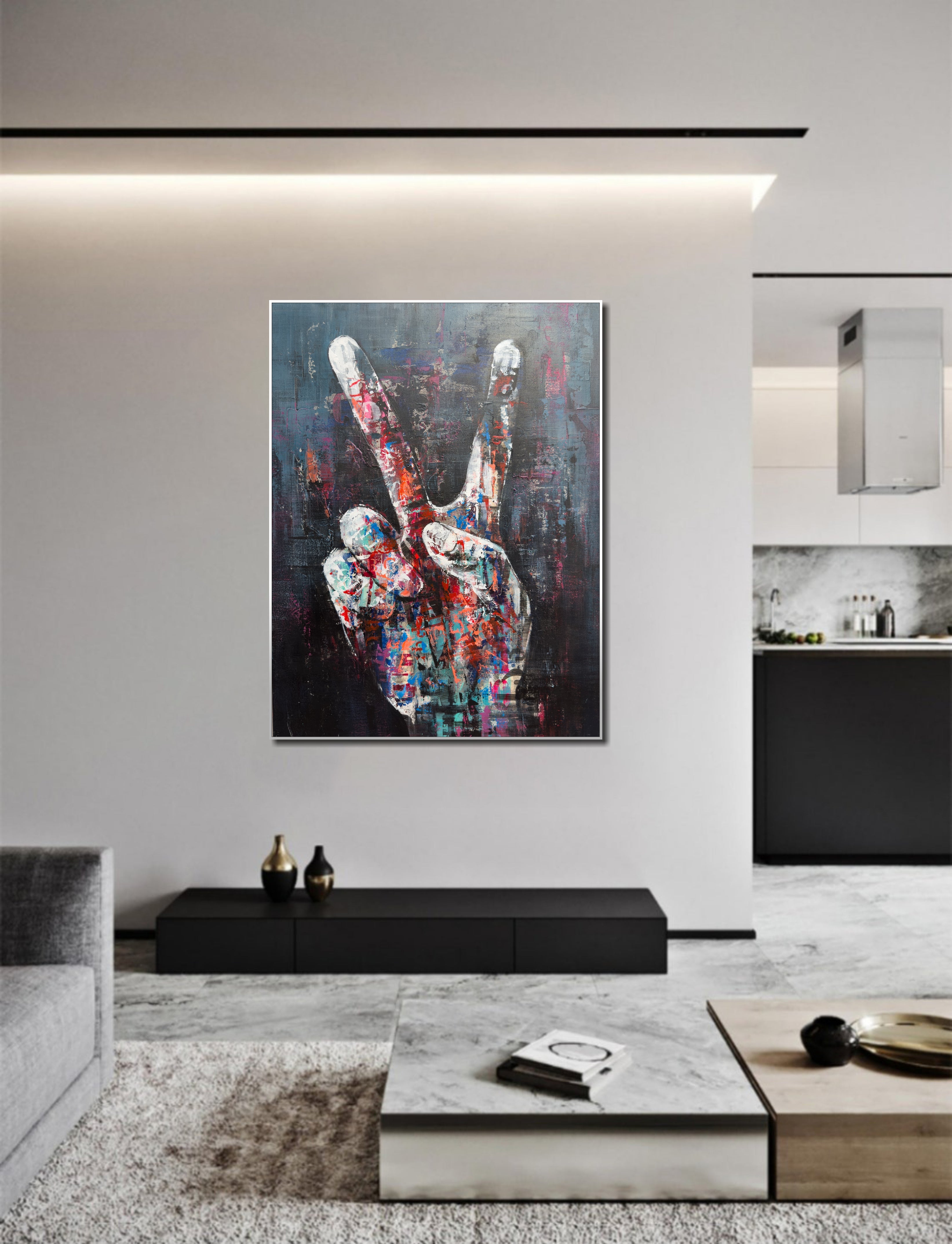 "Street Victory" is a striking and dynamic piece that embodies the spirit of resilience, unity, and triumph. This large abstract painting features a bold peace sign hand, layered with graffiti-inspired textures and vivid splashes of color. The interplay of deep blues, fiery reds, and electric whites creates a raw, urban aesthetic that feels both rebellious and uplifting.