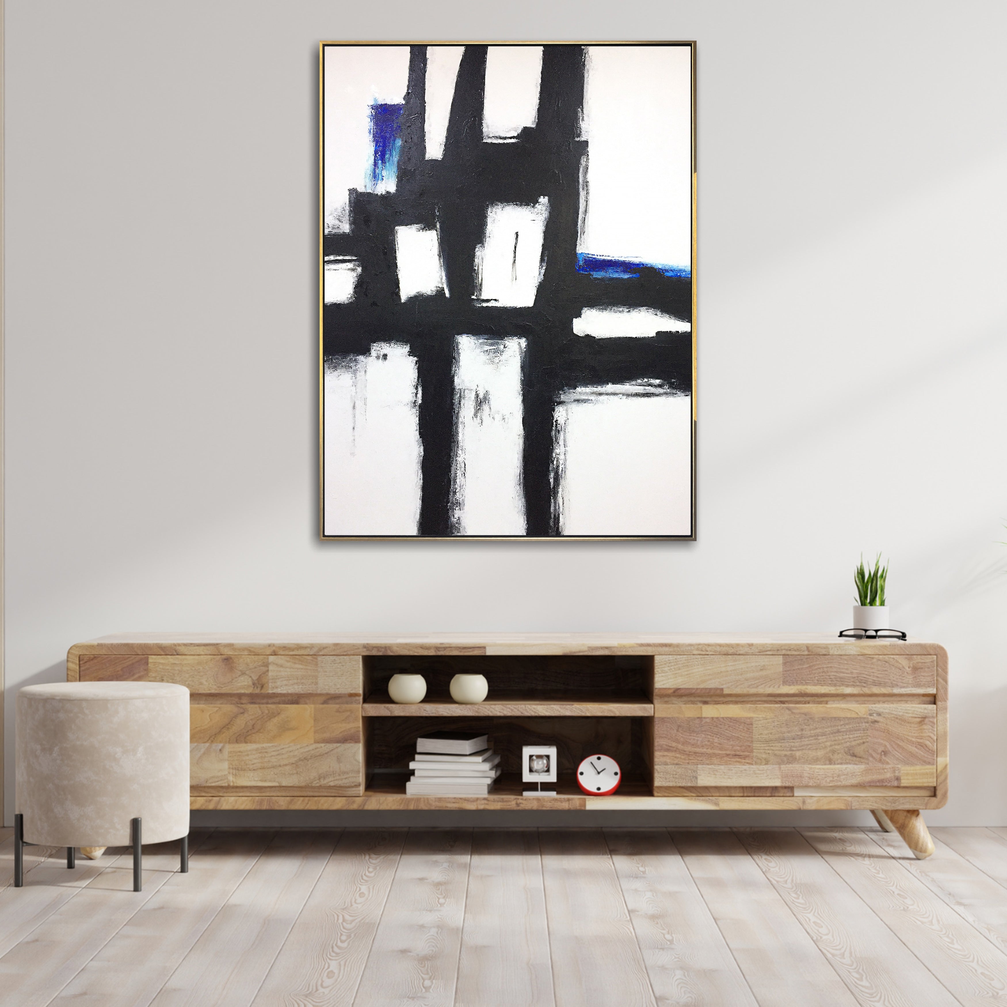 Framed painting arrives stretched on wooden bars and framed in one of the listed floating frames.
