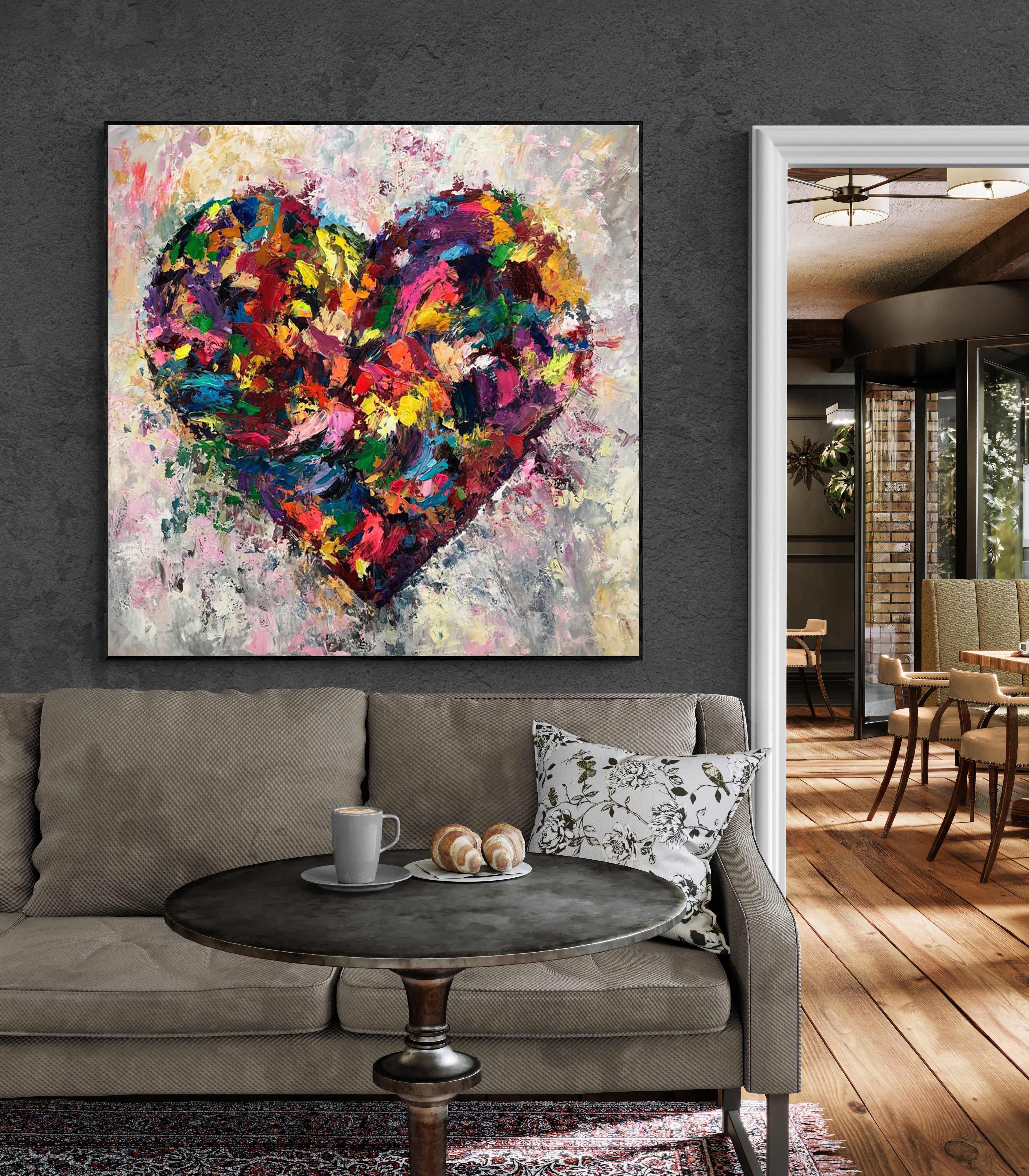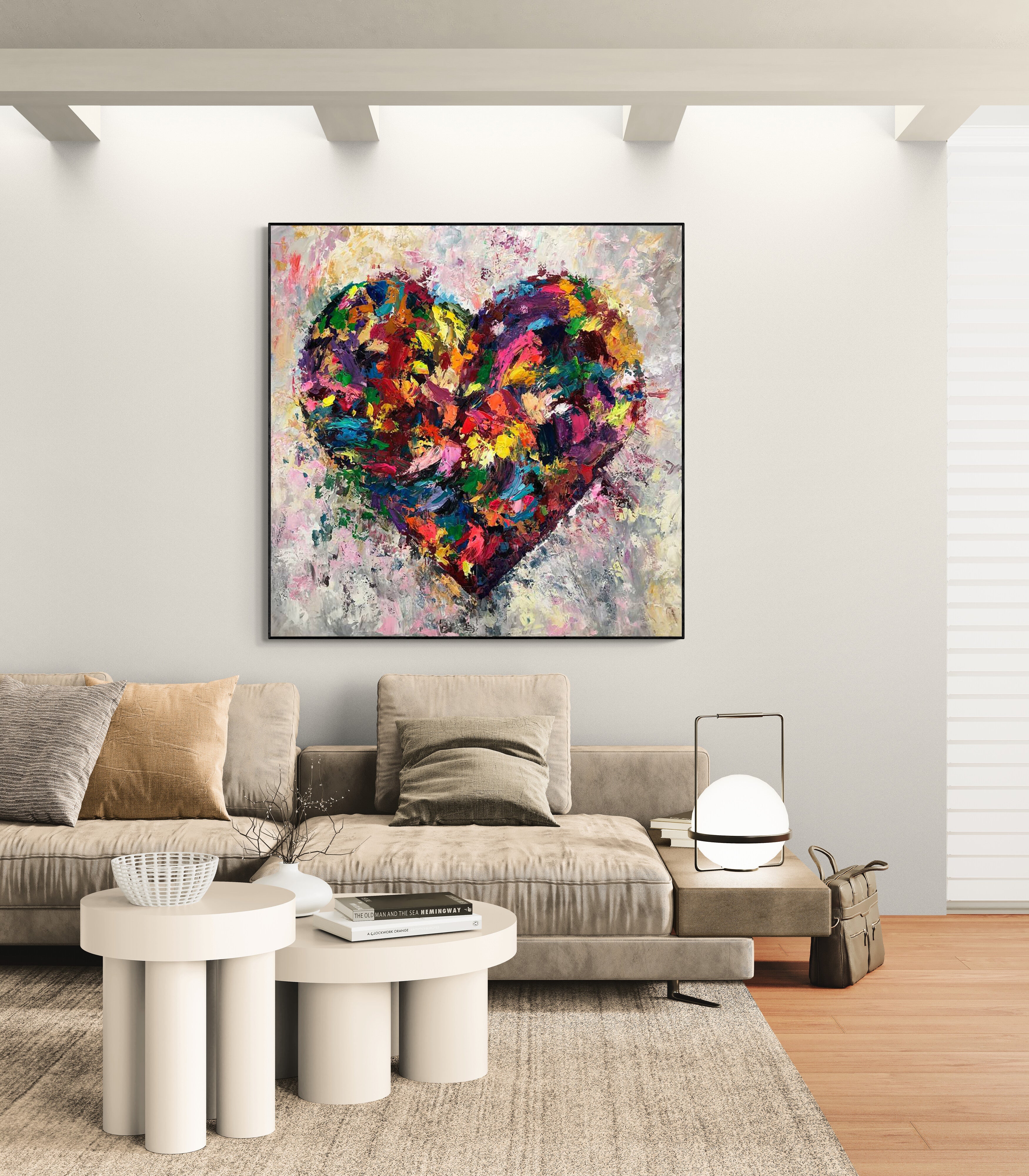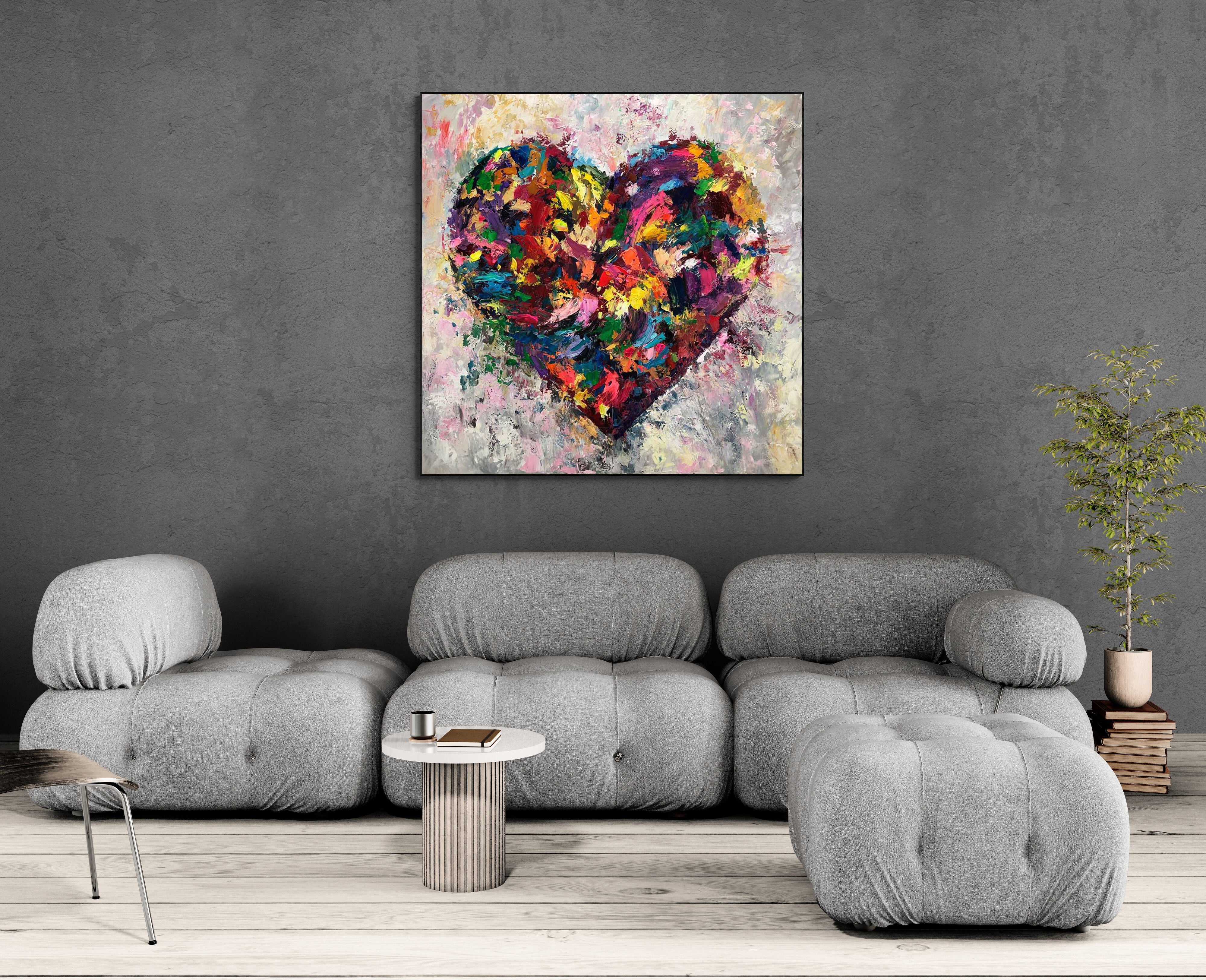 A vibrant explosion of color and emotion, this hand-painted heart artwork embodies the beauty and intensity of love. Rich textures and expressive brushstrokes form a bold abstract heart that radiates passion, joy, and warmth. Perfect as a romantic gift or a statement piece in modern interiors, this painting adds a splash of life and a heartfelt message to any space.
