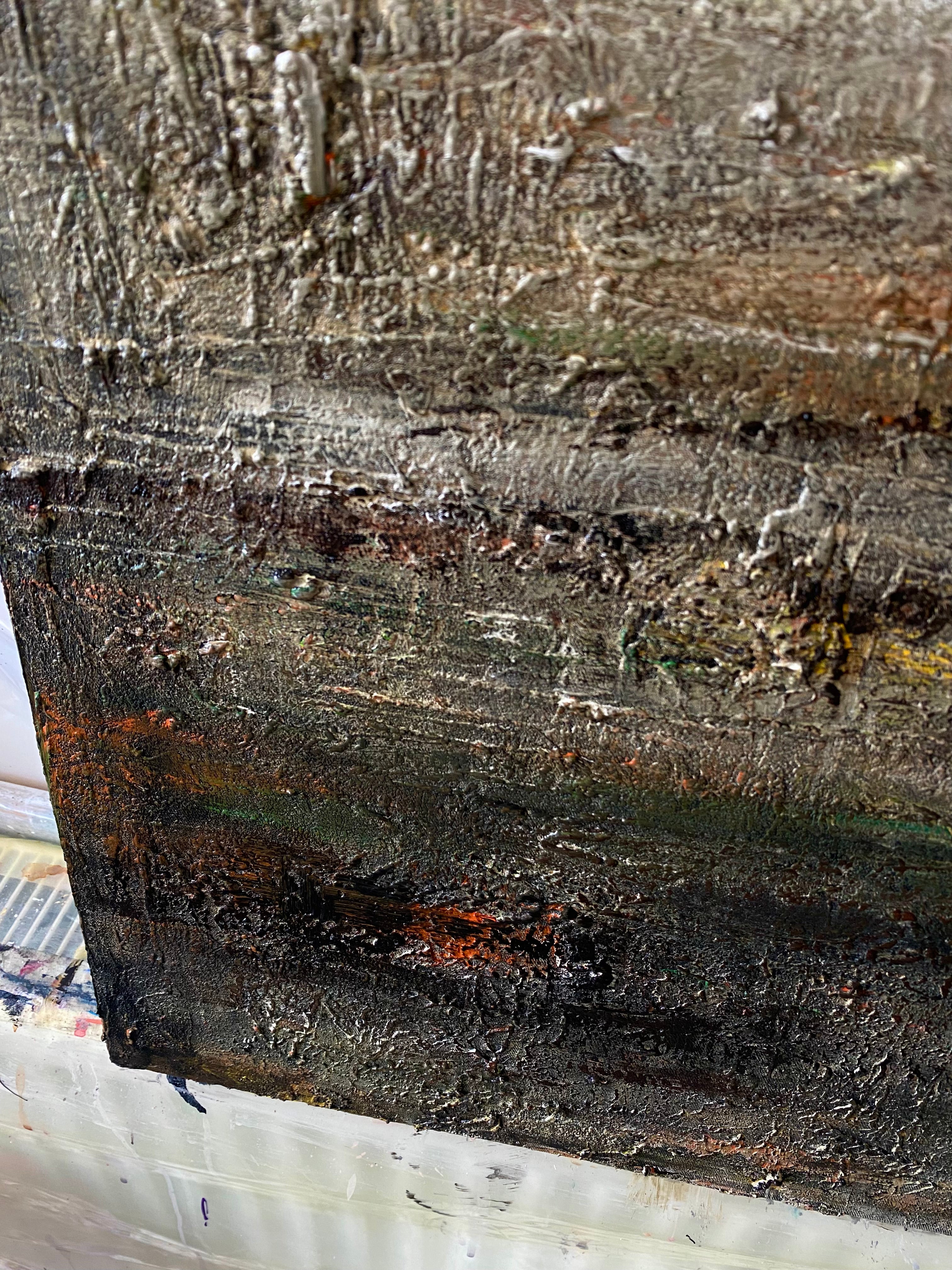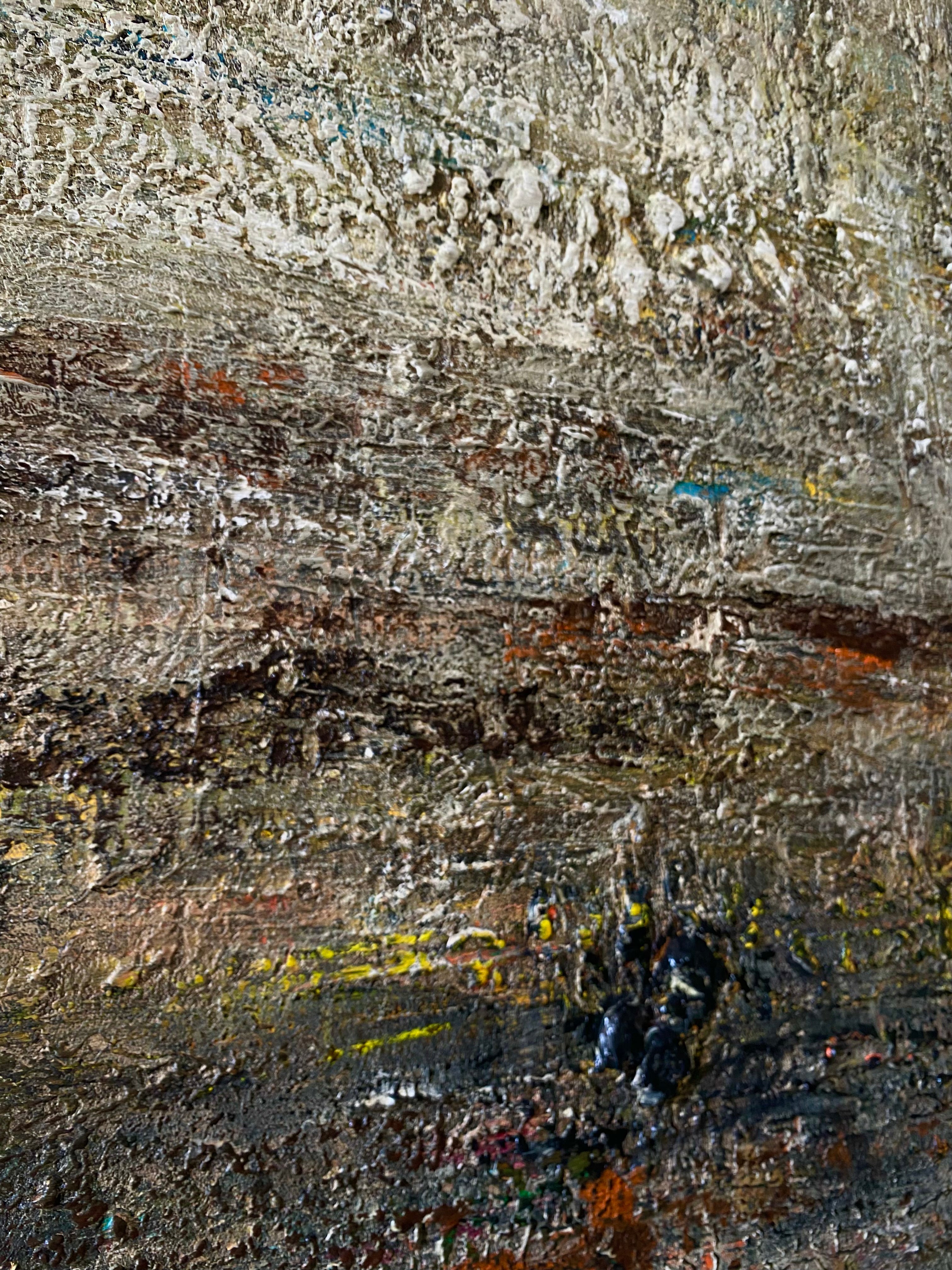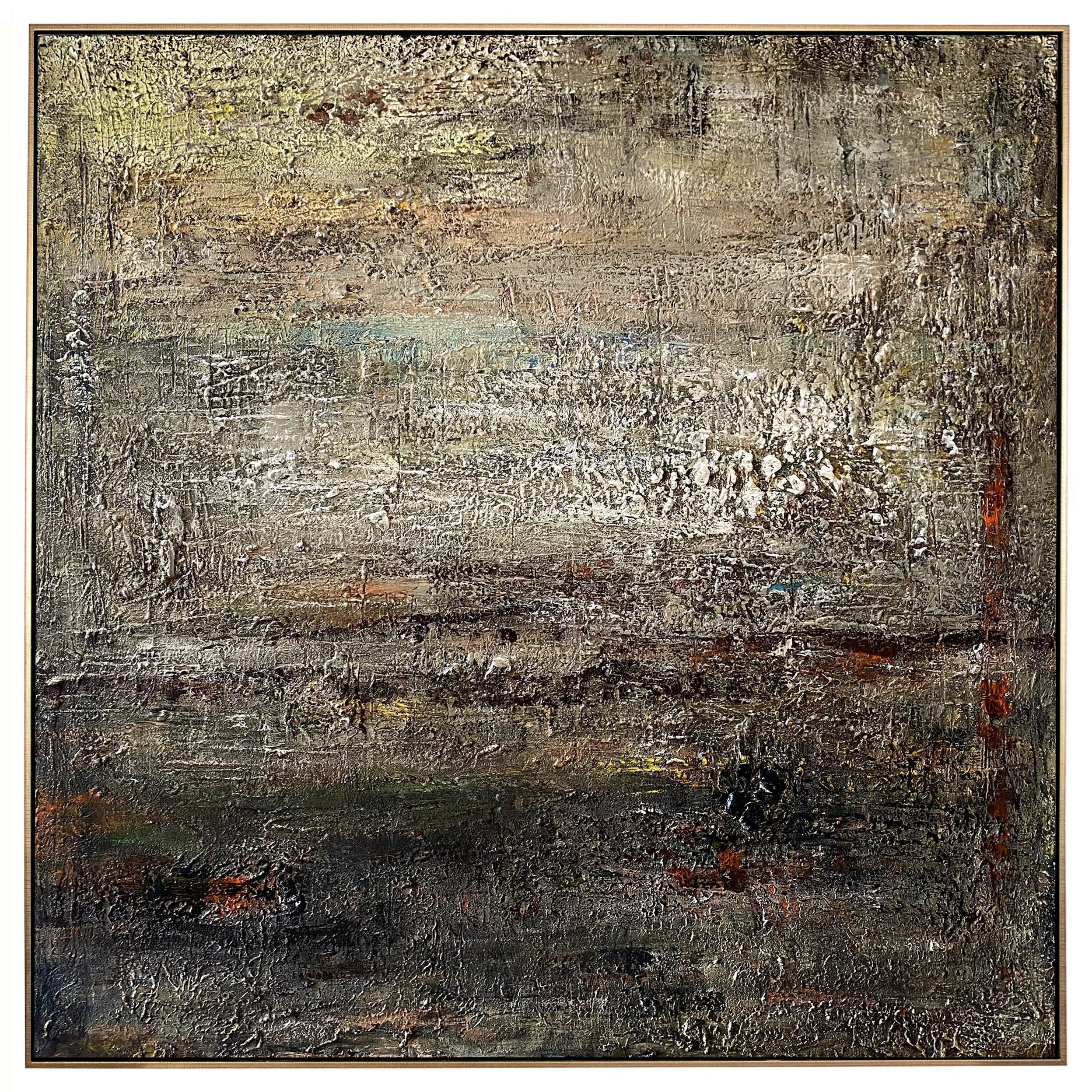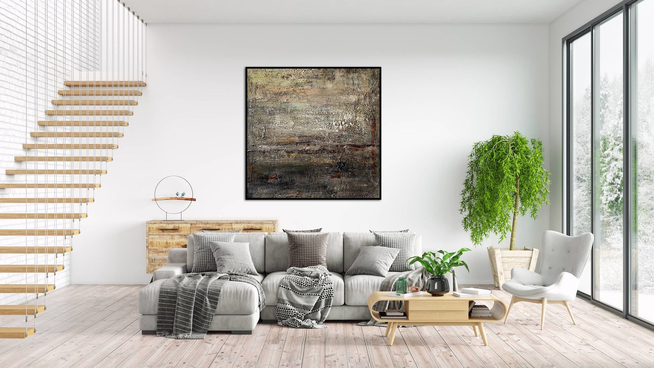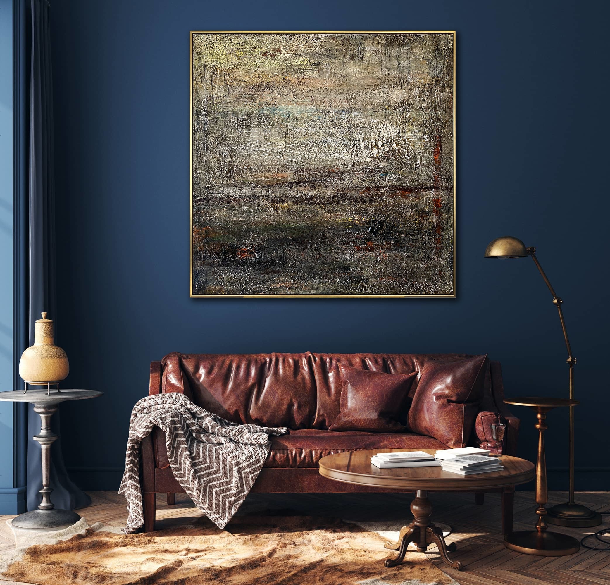 Rich impasto and subtle horizon lines shape a calm, timeworn landscape in neutral earth tones. Layers of warm grey, taupe and charcoal with hints of rust and moss green create a refined wabi-sabi mood that grounds living rooms, bedrooms and offices. Hand-painted on canvas, available in custom sizes with an optional floater frame. Ready to hang when stretched or shipped rolled. Perfect above a sofa, bed or mantel—color tweaks welcomed. Add gallery-level texture and serene depth to your space.