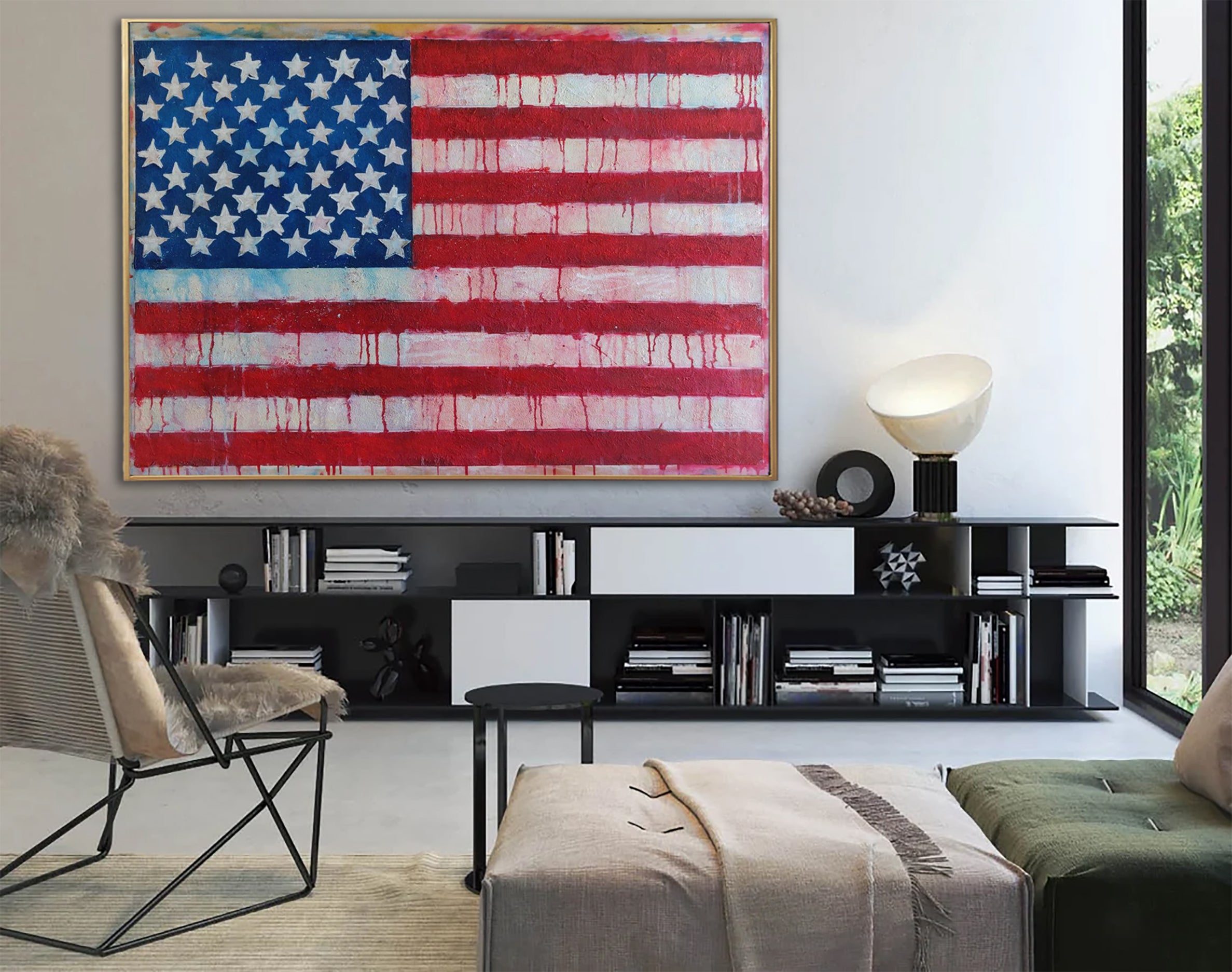 Large USA Flag Painting United States Flag Artwork on Canvas Original Neo-Expressionism Art Textured Paintings On Canvas Handmade Map Room Decor | USA FLAG 31.49"x43.30" | Trend Gallery Art Great Britain – Trendgallery.co.uk
