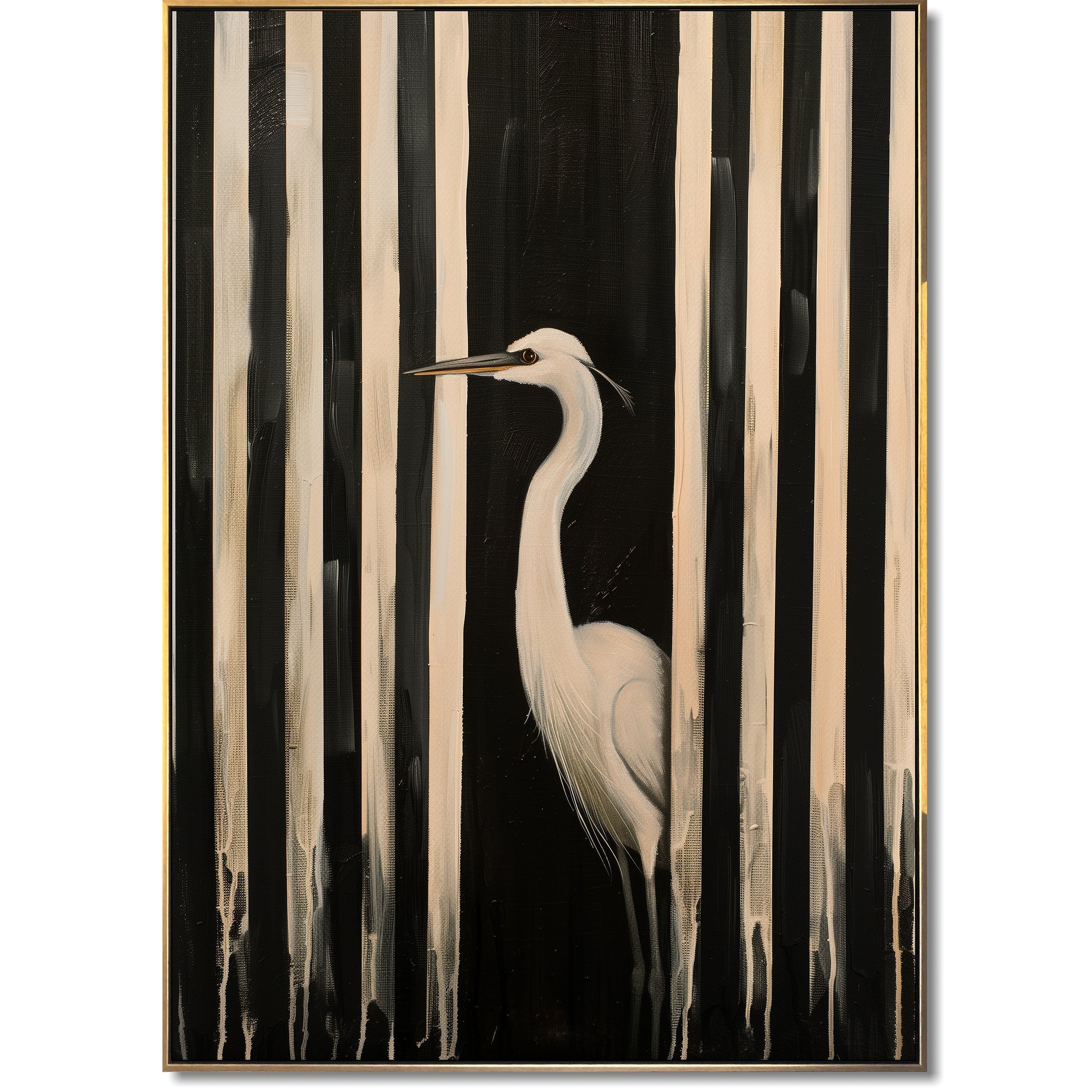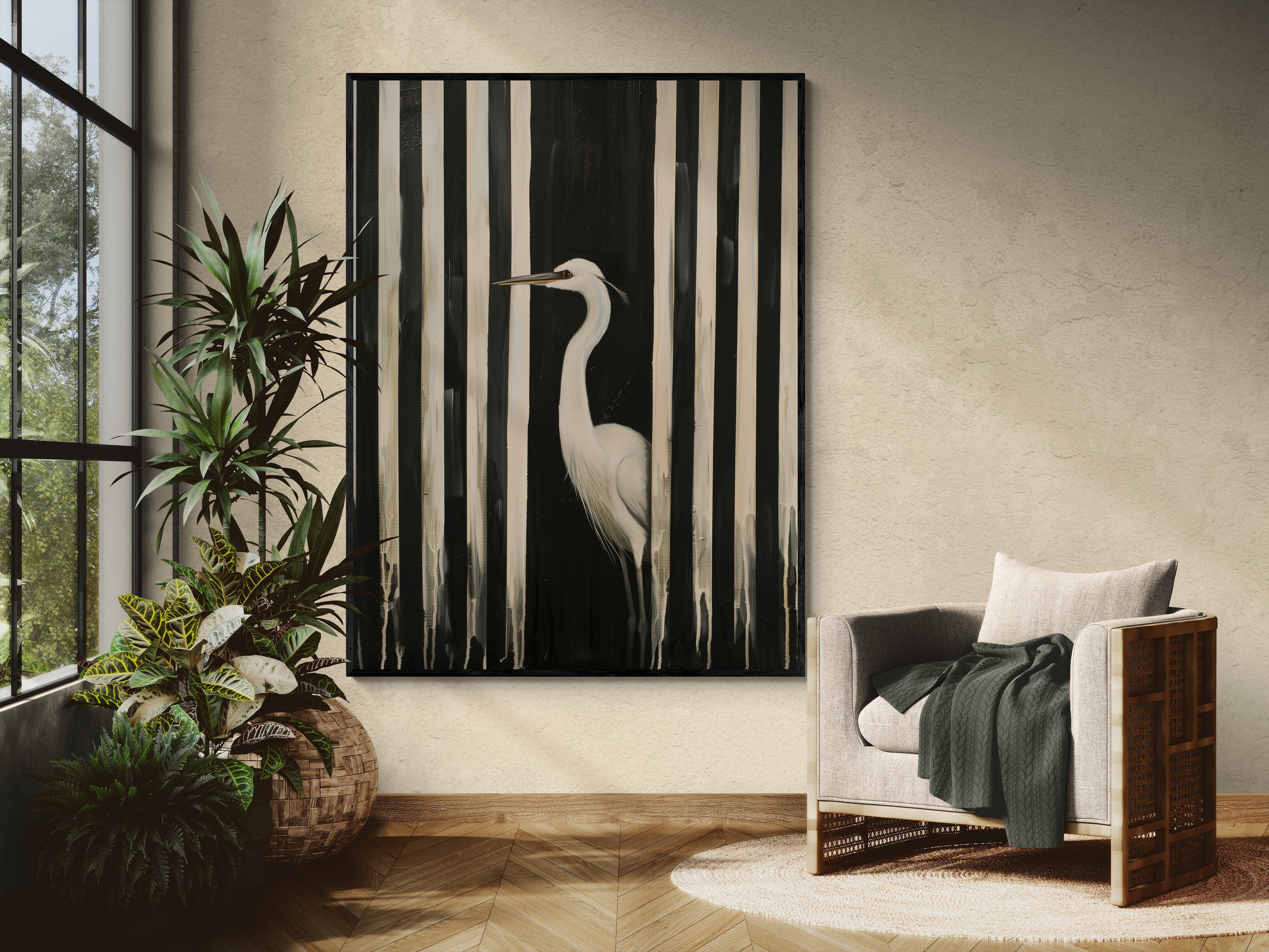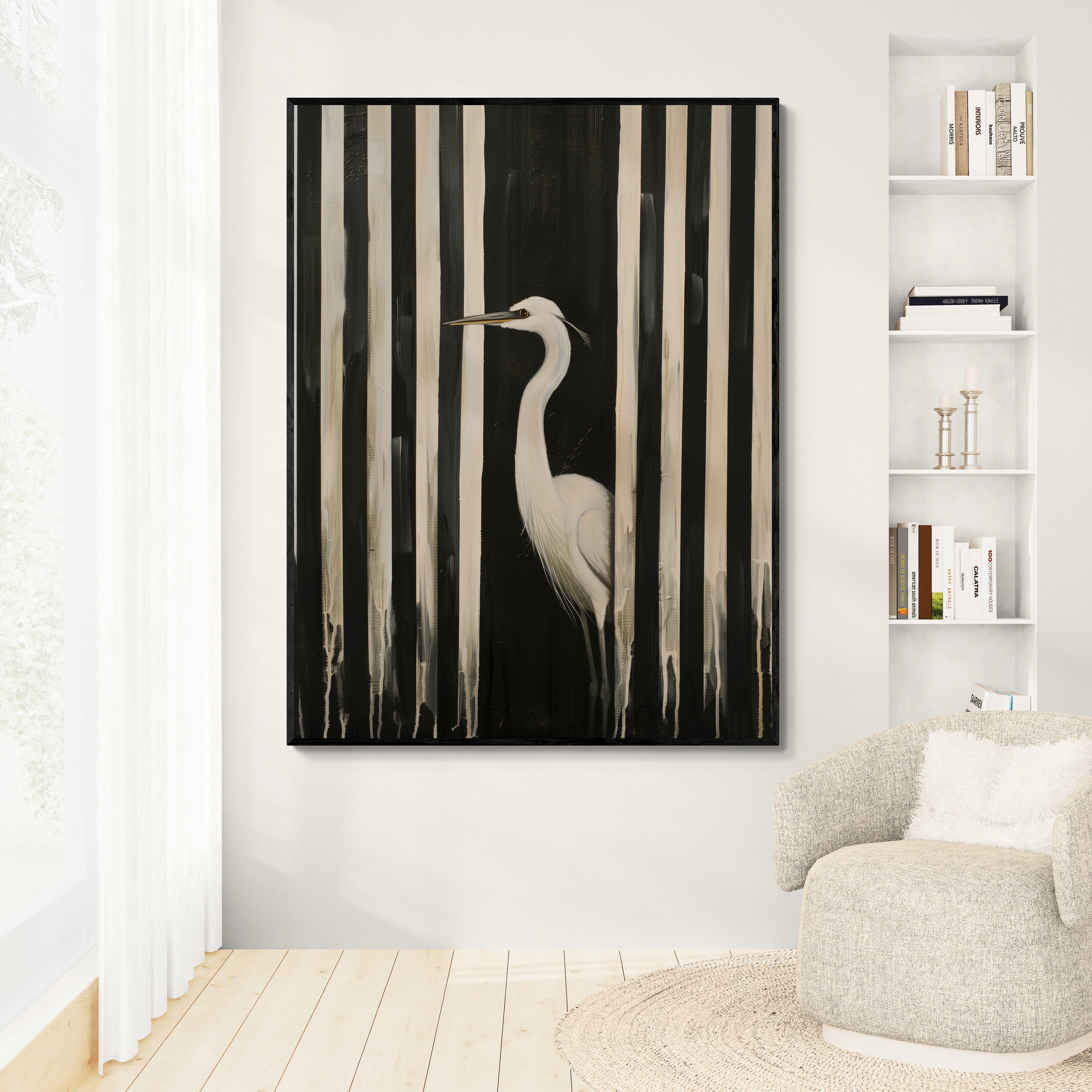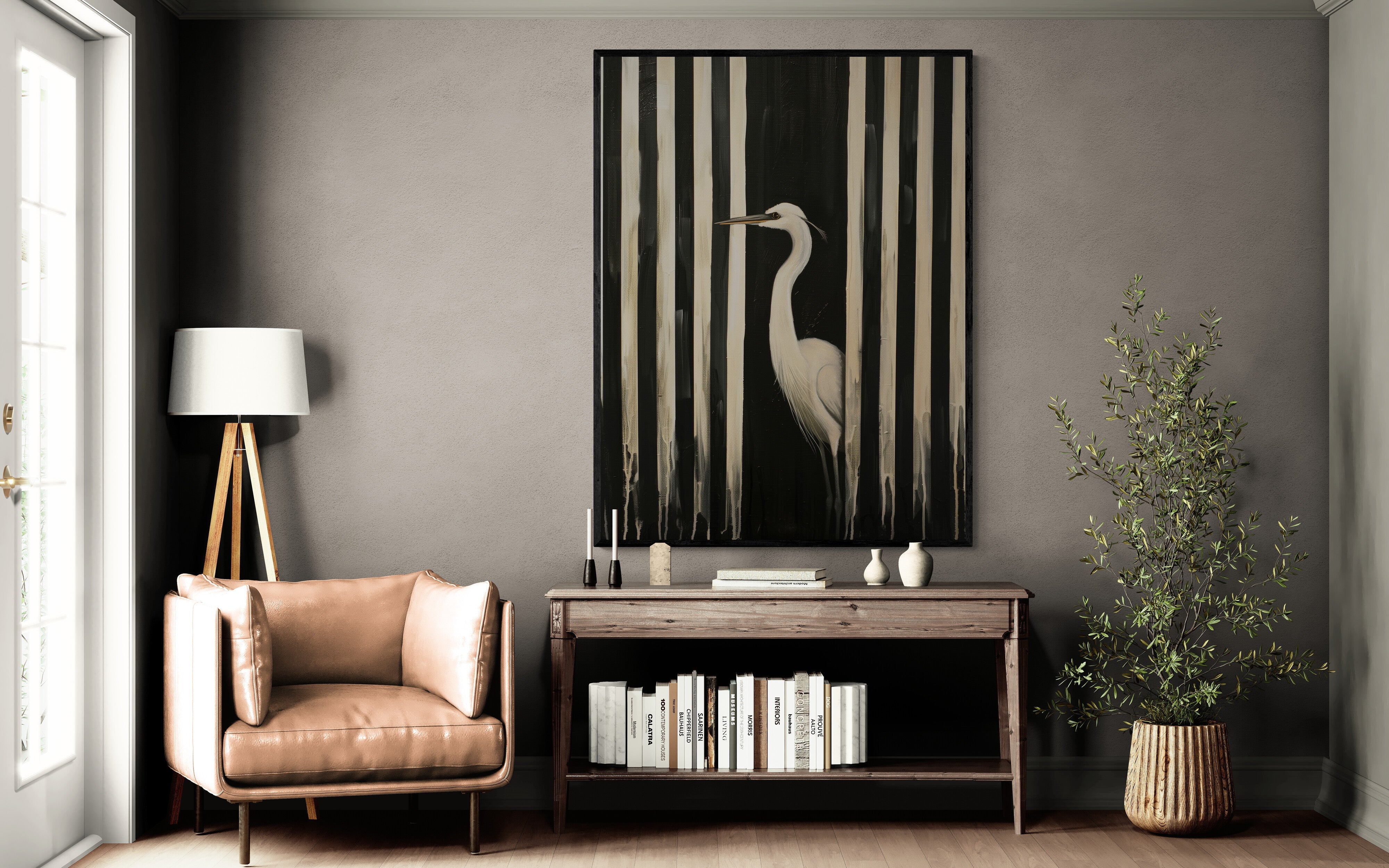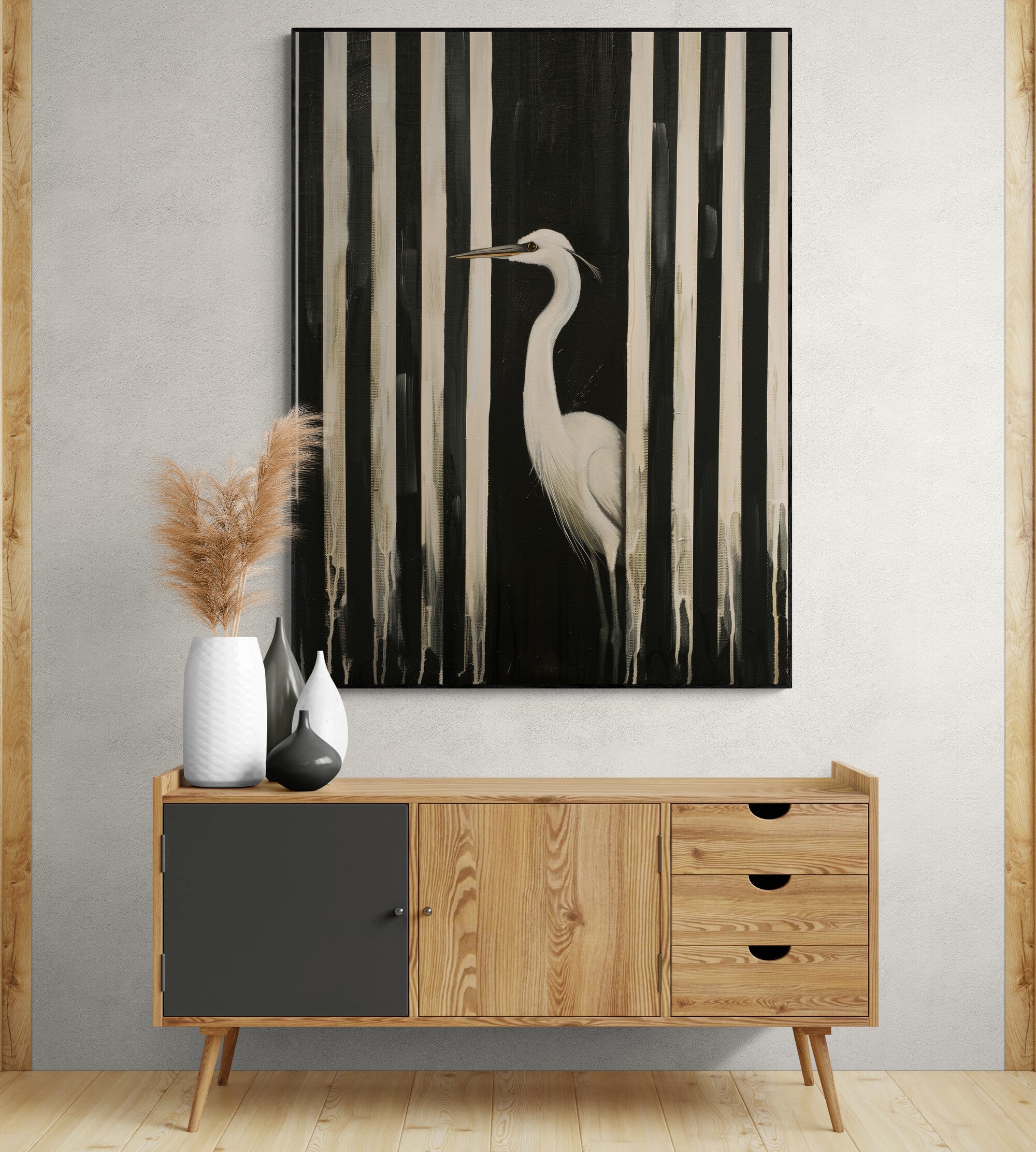 Large White Heron Painting, Minimalist Black Bird Art, Elegant Modern Wildlife Wall Decor | TrendGallery | Trend Gallery Art Great Britain – Trendgallery.co.uk