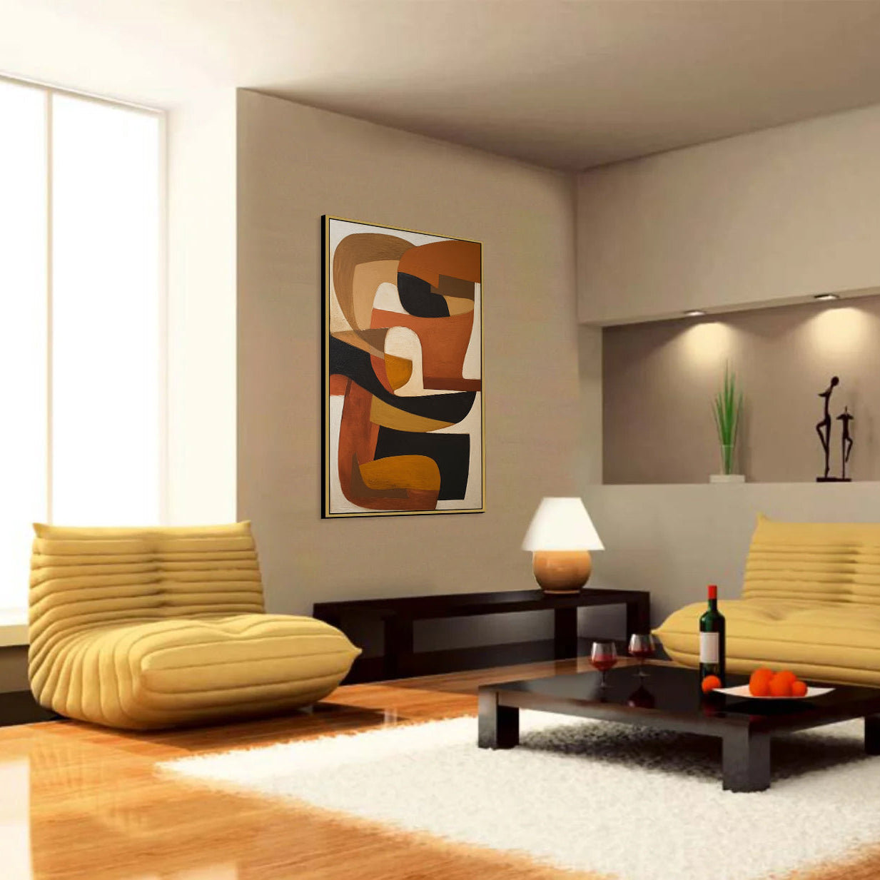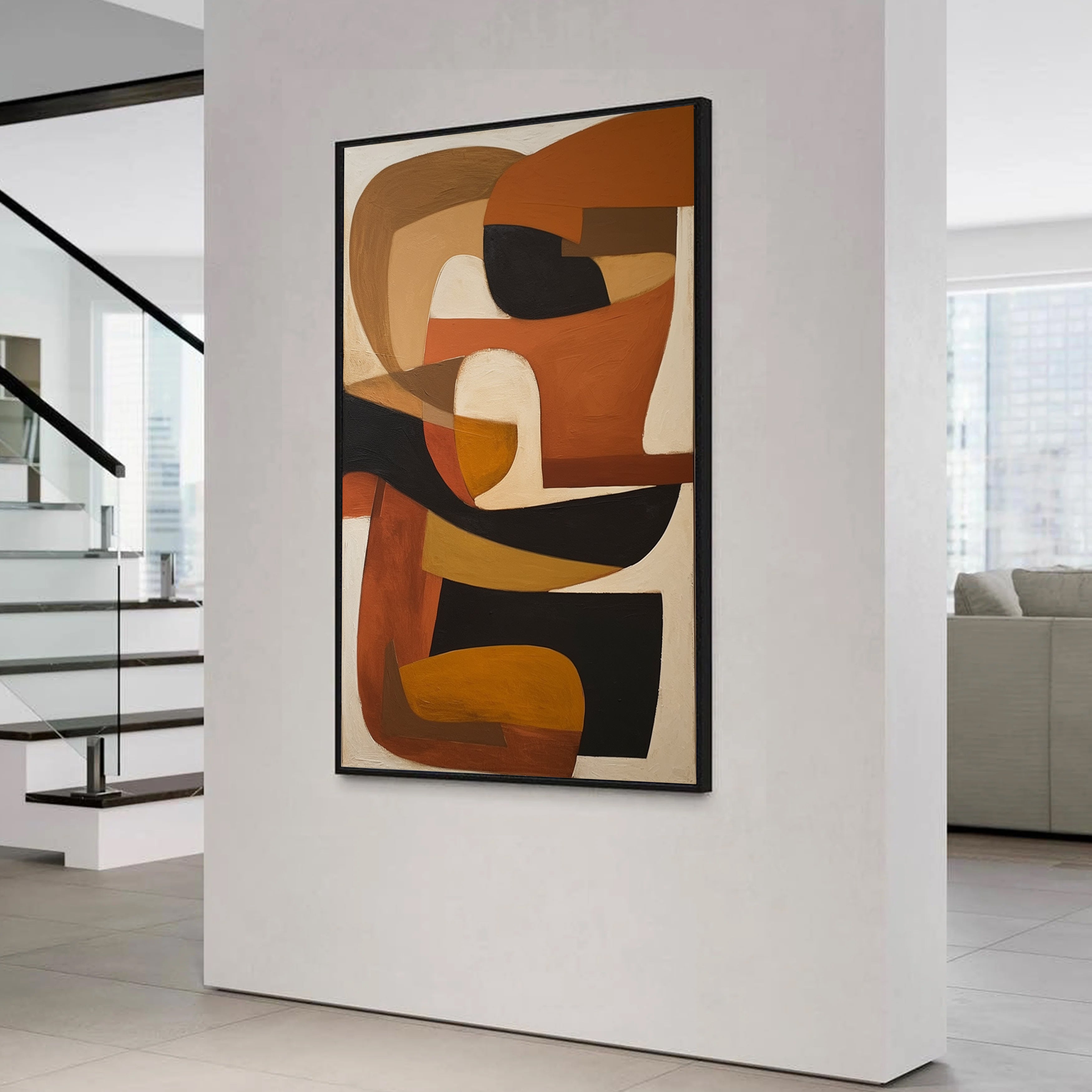 Modern Abstract Earth Tone Wall Art Terracotta Mustard and Black Canvas Painting Midcentury Style Decor for Living Room or Office | TERRACOTTA GEOMETRY | Trend Gallery Art Great Britain – Trendgallery.co.uk