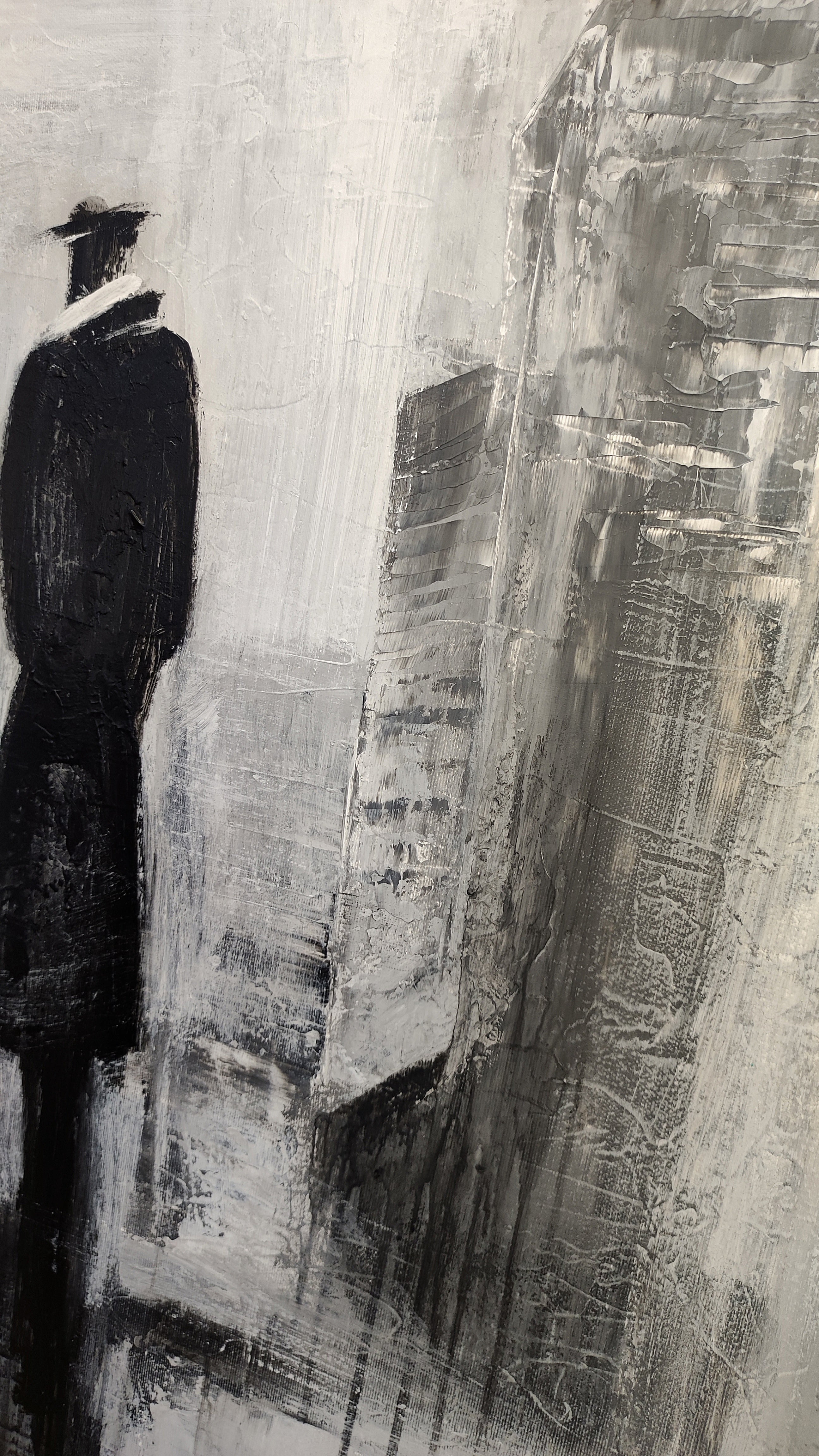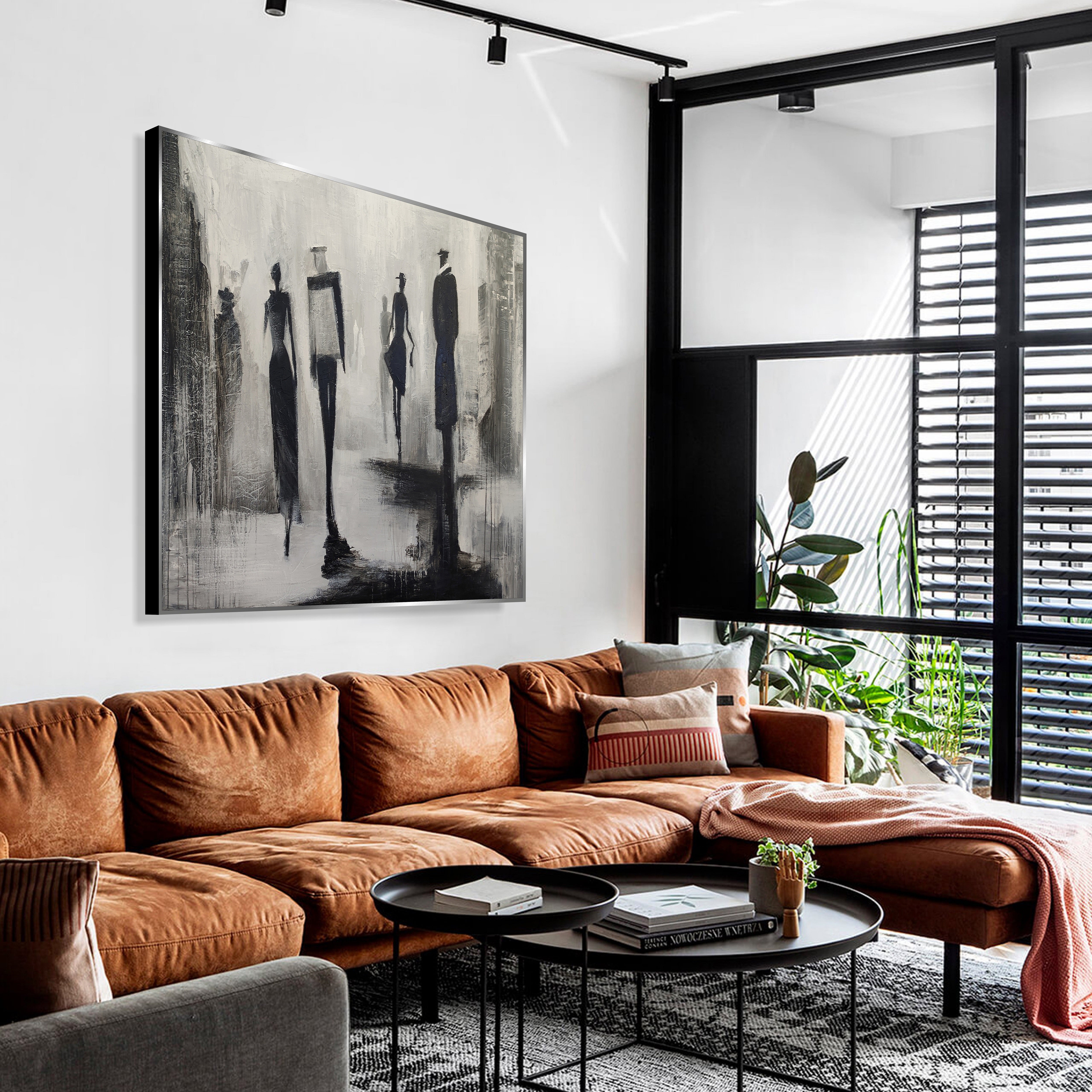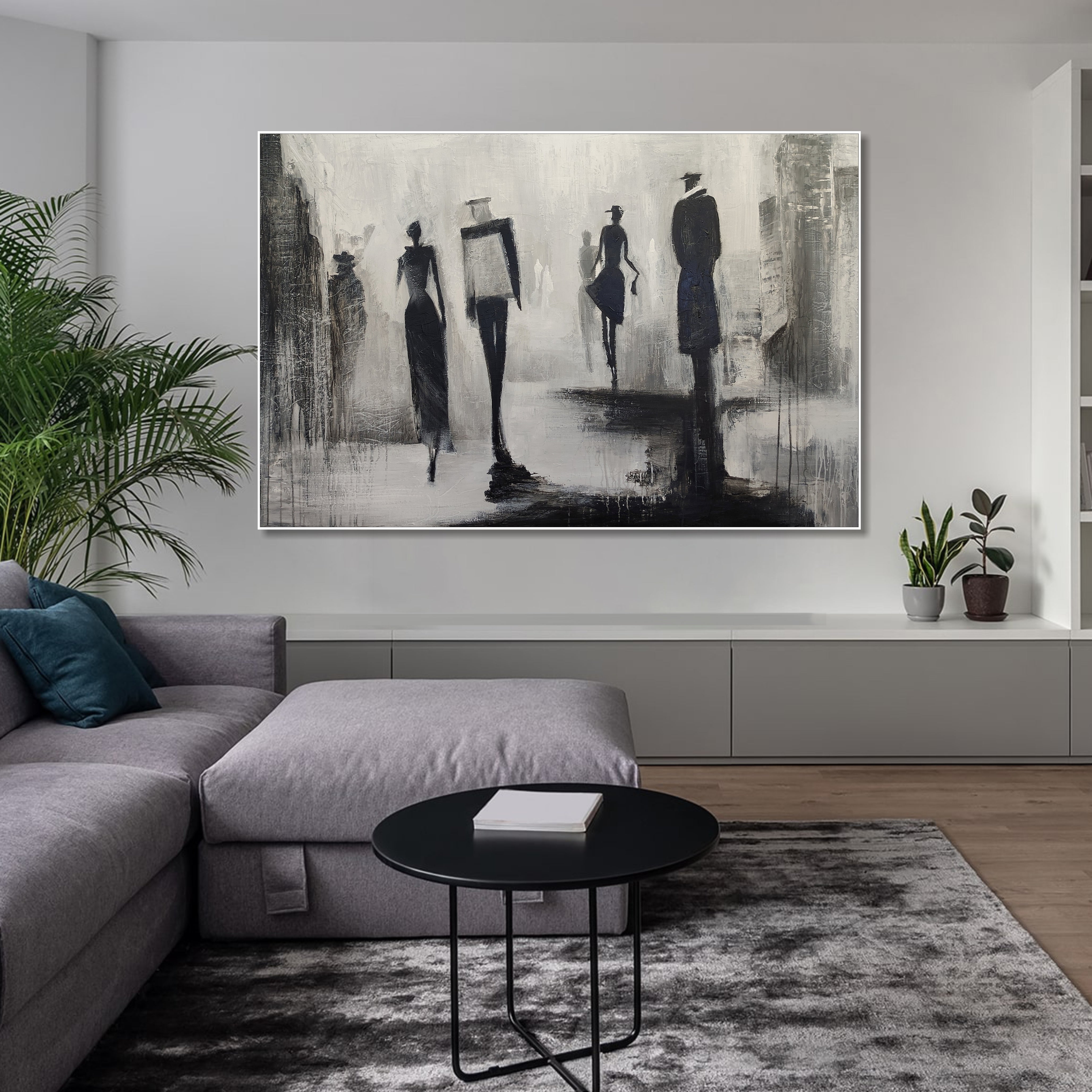 Refined yet expressive, "Shadows of the City" is more than a painting—it is an invitation to step into the poetry of the streets, where every silhouette holds a story untold. A stunning addition to any contemporary space, this piece embodies the grace, intrigue, and timeless charm of modern urban life.