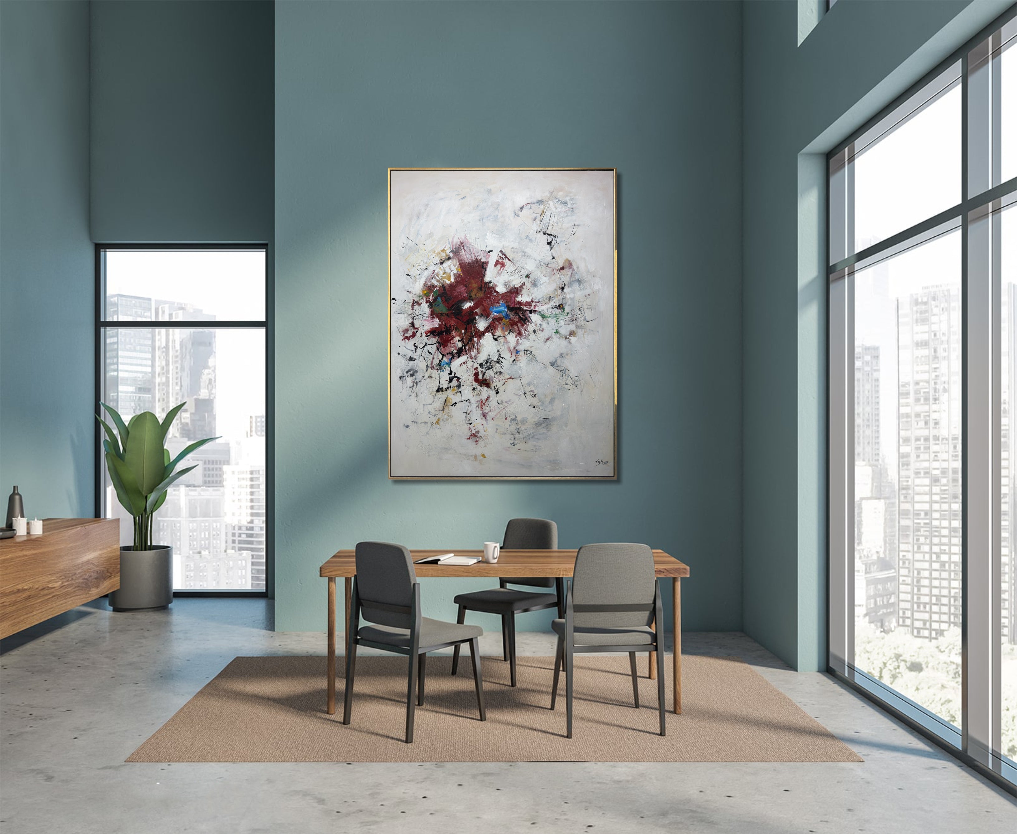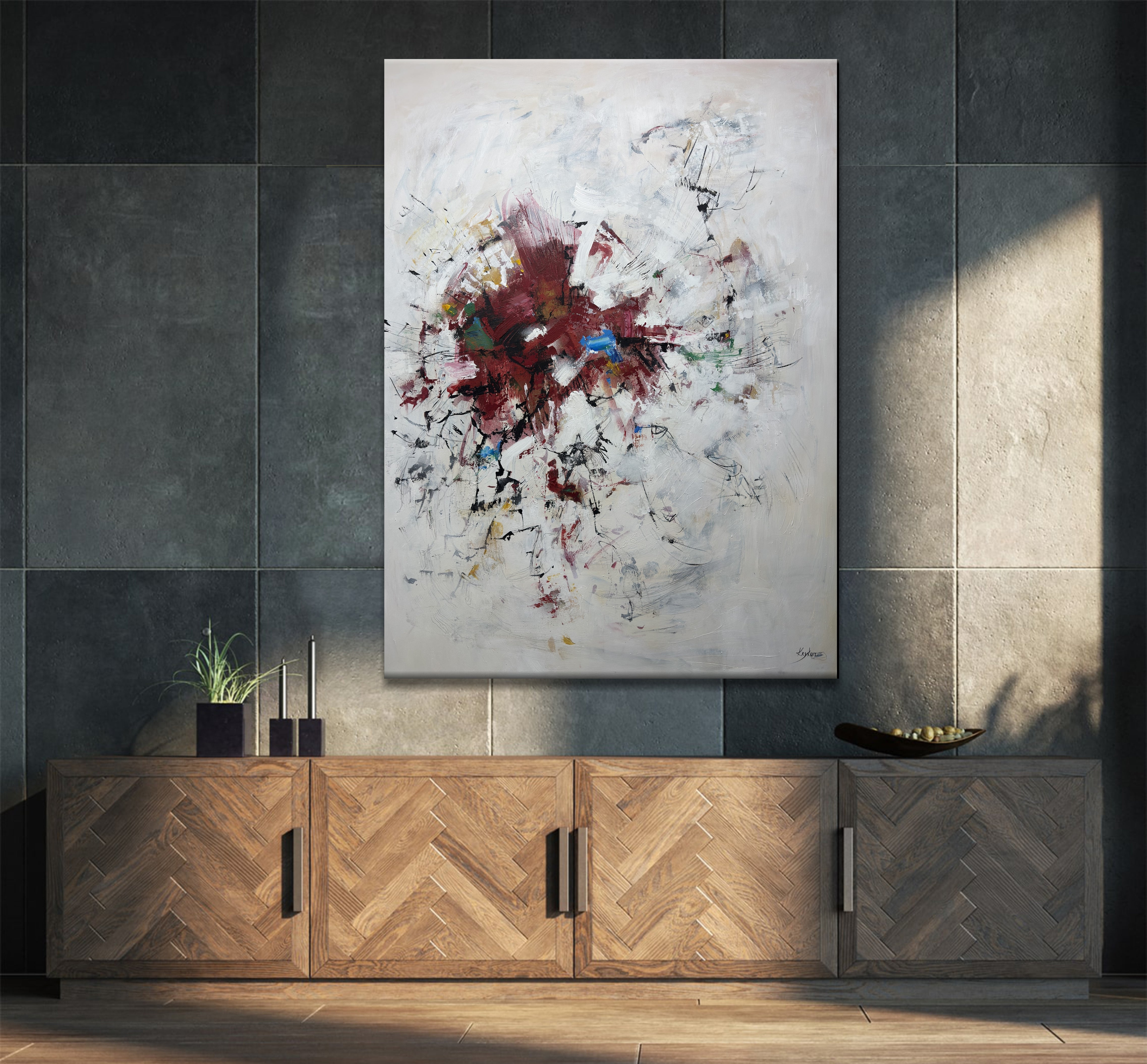 “Core of Chaos“ is a powerful modern minimalist painting that captures the tension between serenity and disruption. With a neutral beige backdrop accented by bold red and black splashes, this original abstract artwork evokes raw emotion and fluid energy. The expressive strokes and layered textures create a dynamic focal point, making it a perfect piece of statement wall art for contemporary interiors. Ideal for living rooms, creative workspaces, or gallery-inspired spaces, this painting brings intensity and elegance into balance — a visual exploration of structure within spontaneity.