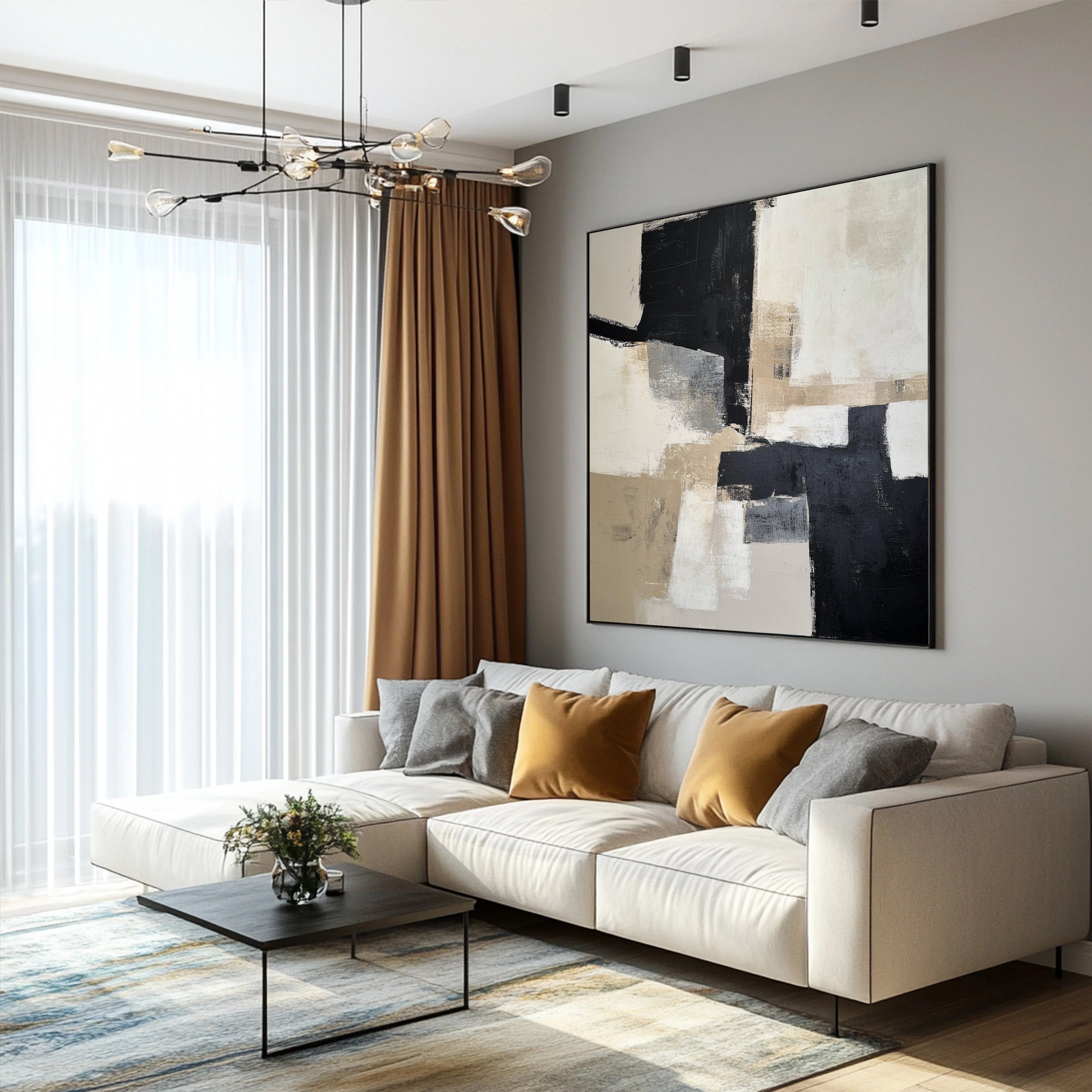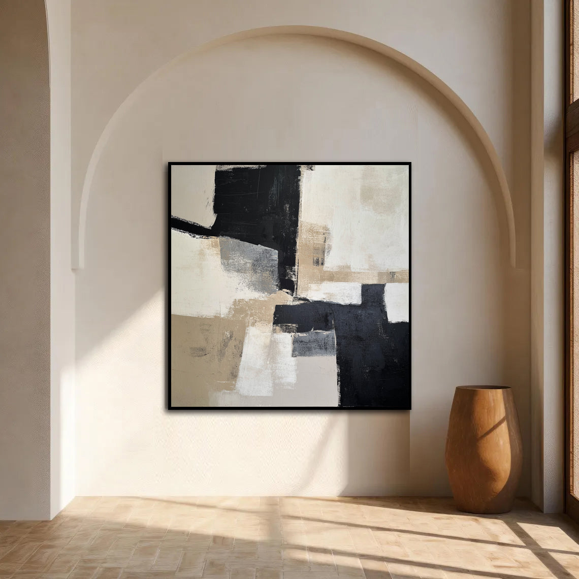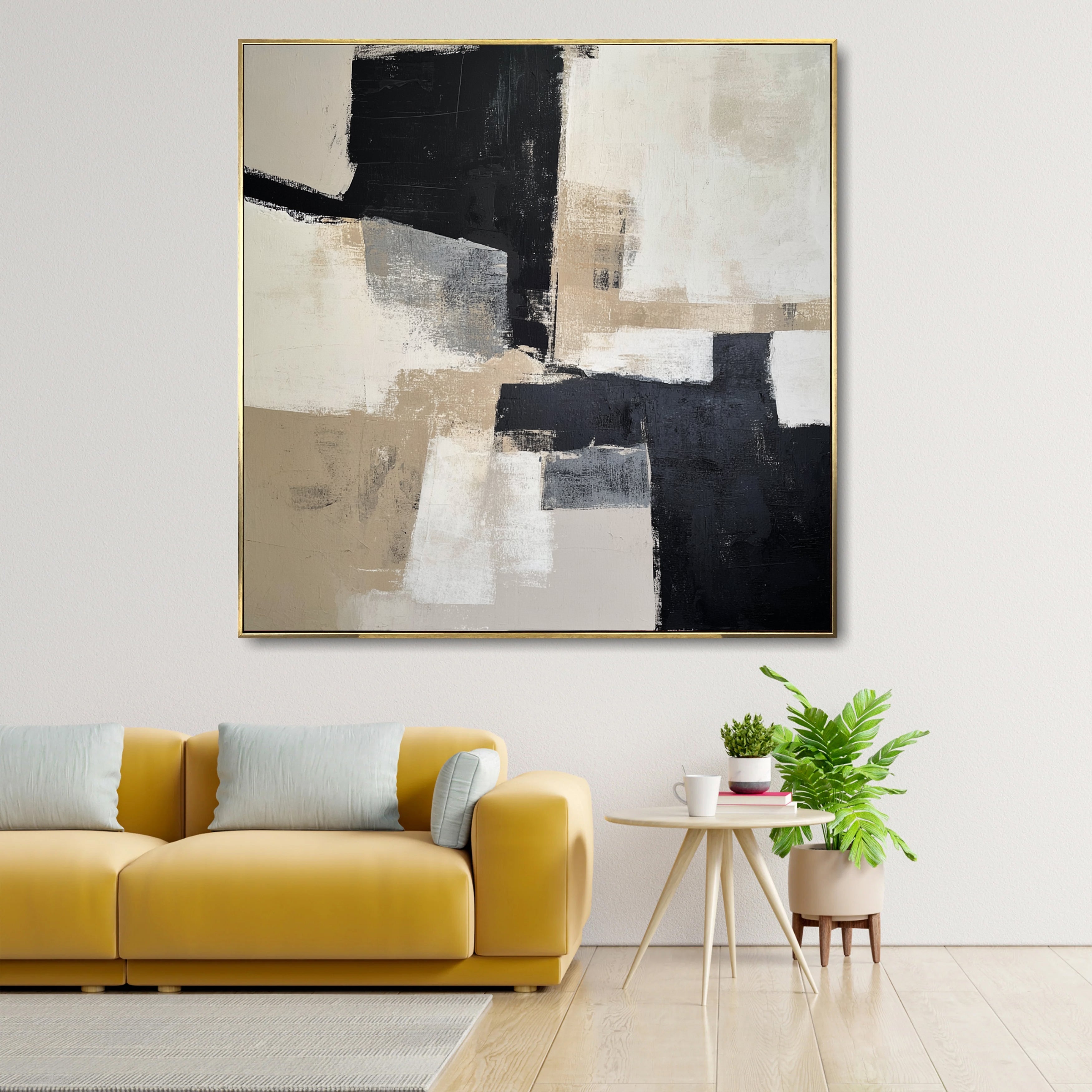 Neutral Abstract Minimalist Painting Beige and Black Modern Canvas Wall Art Contemporary Urban Painting for Scandinavian Style Wall Decor | URBAN SILENCE | Trend Gallery Art Great Britain – Trendgallery.co.uk