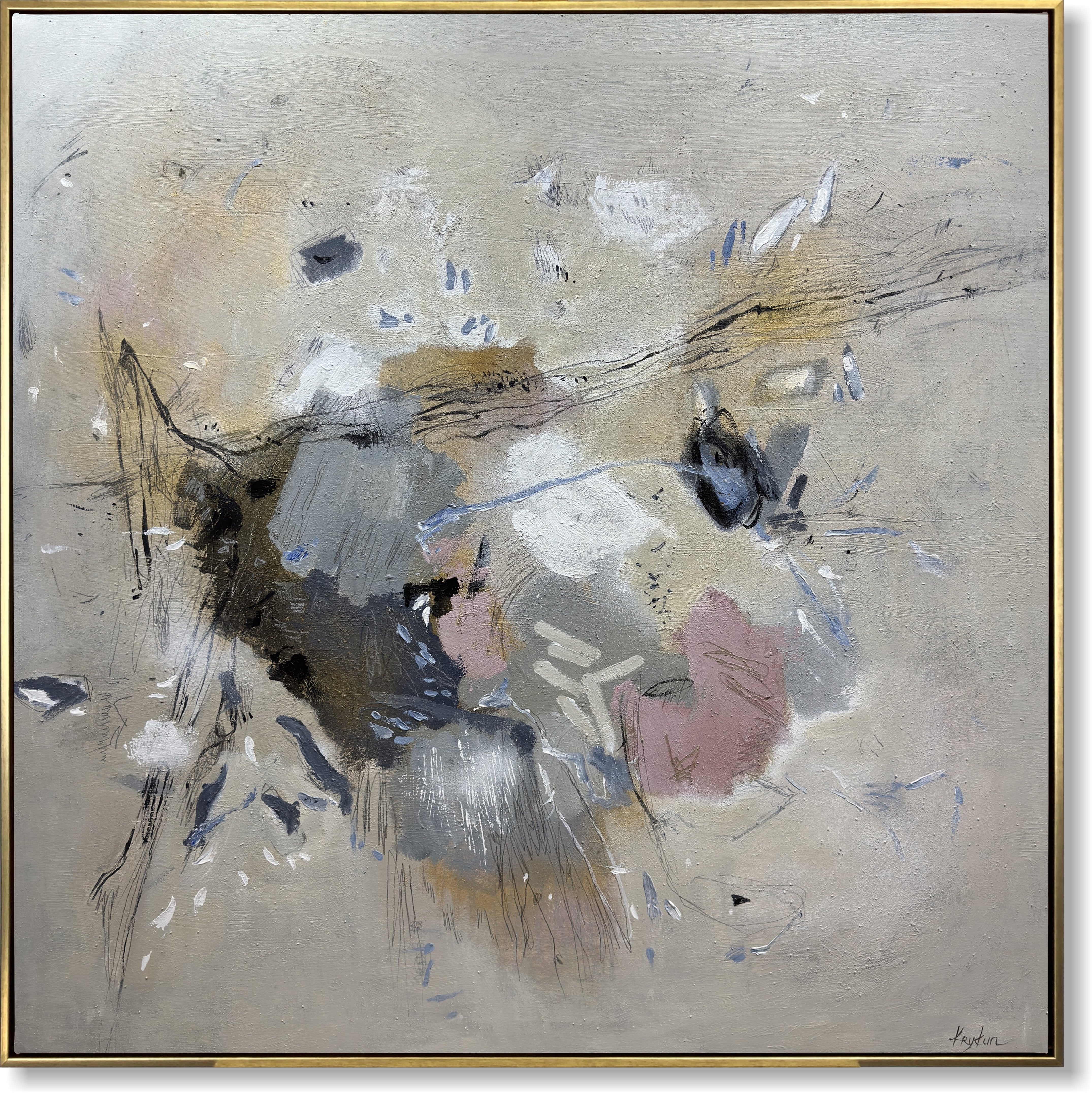 Neutral Abstract Painting on Canvas Modern Textured Wall Art in Beige, Gray & Rose Living Room Wall Art Office Framed Decor SOFT COLLISION | Trend Gallery Art Great Britain – Trendgallery.co.uk