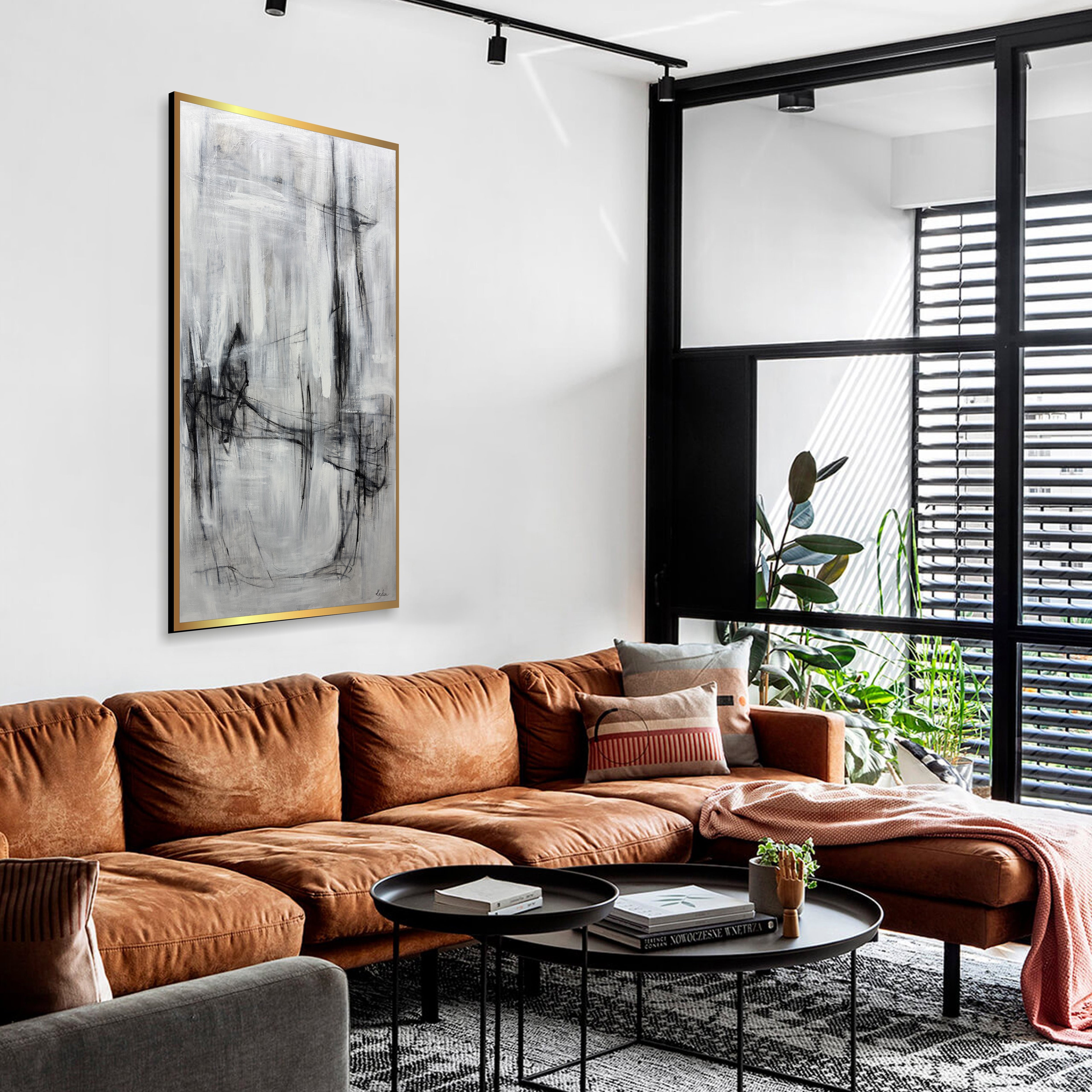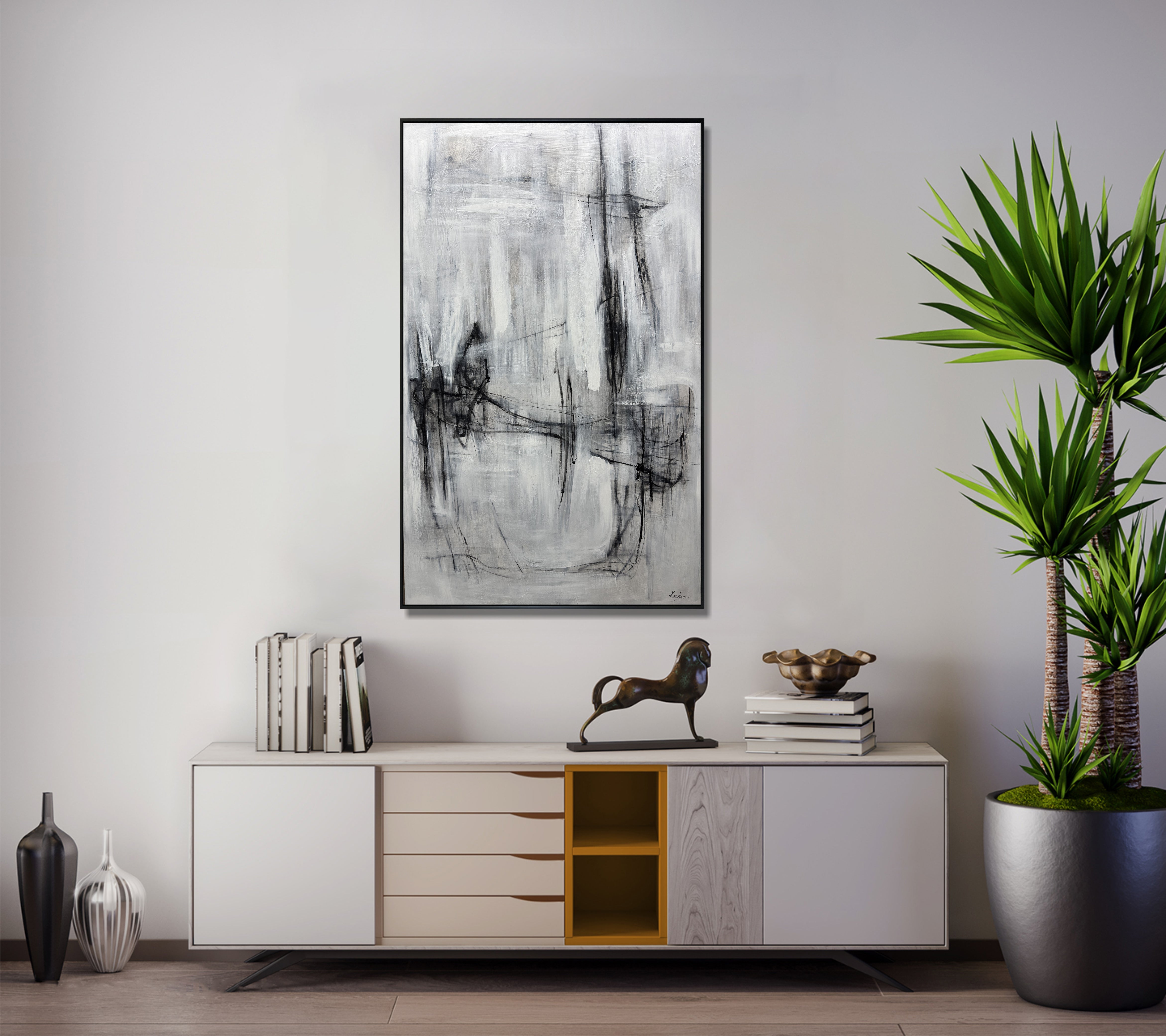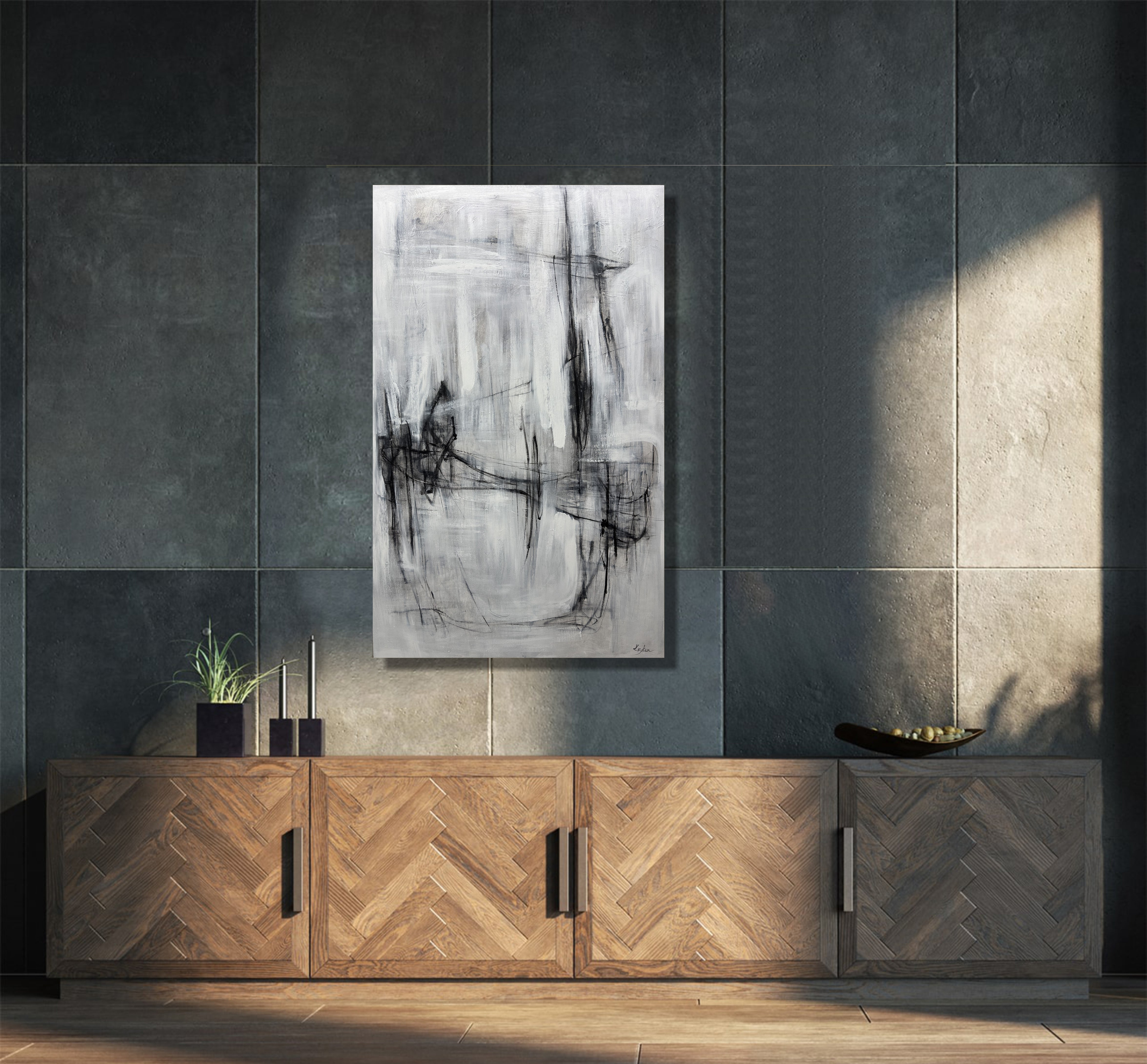 Original Abstract Painting Black and White Painting On Canvas Modern Art For Living Room Handmade Wall Decor Office Wall Art ECHOES IN SILENCE 55x35" | Trend Gallery Art Great Britain – Trendgallery.co.uk