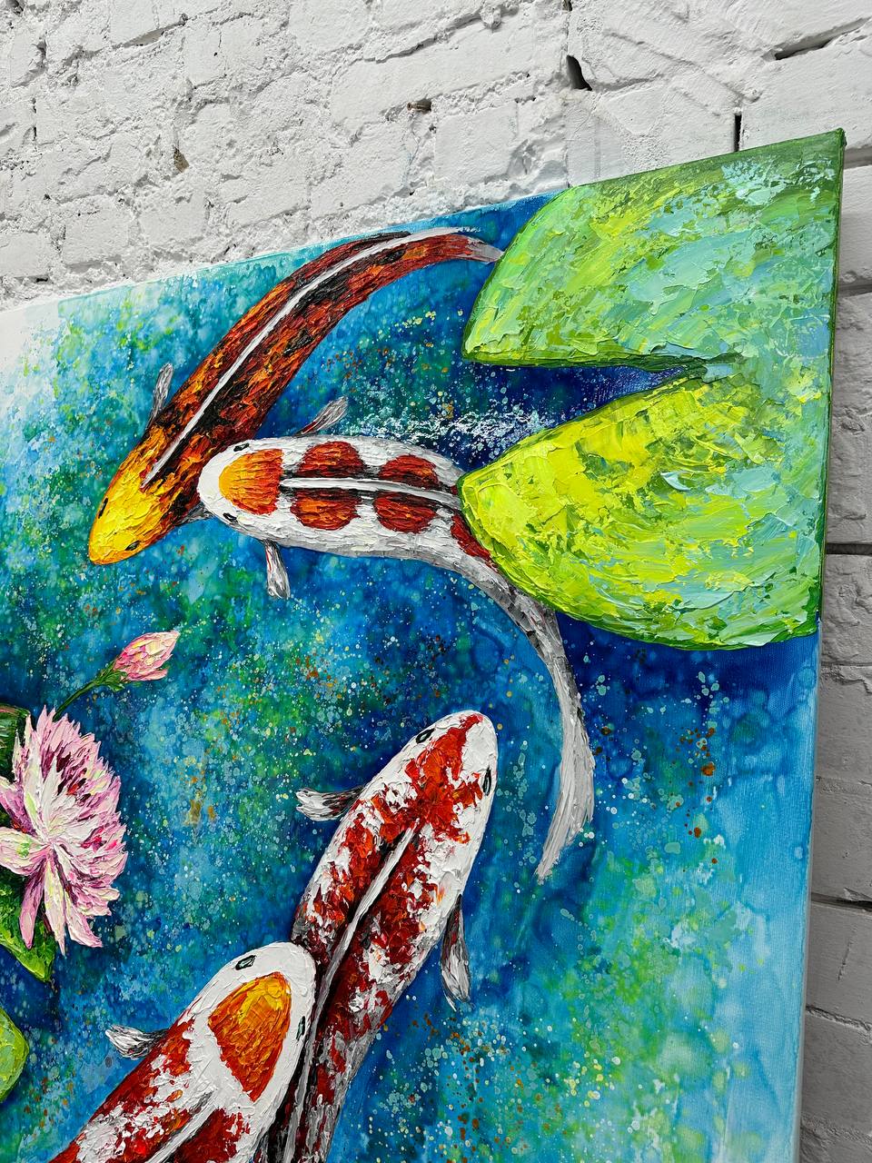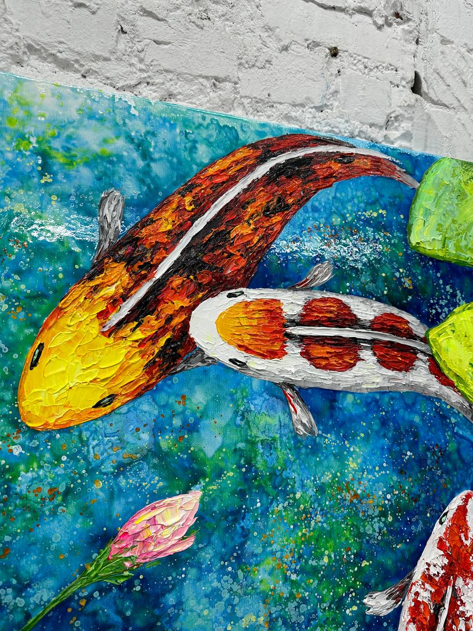 Original Fish Pond Oil Painting Colorful Fish Koi Artwork Abstract Textured Wall Art for Bedroom | KOI POND | Trend Gallery Art Great Britain – Trendgallery.co.uk