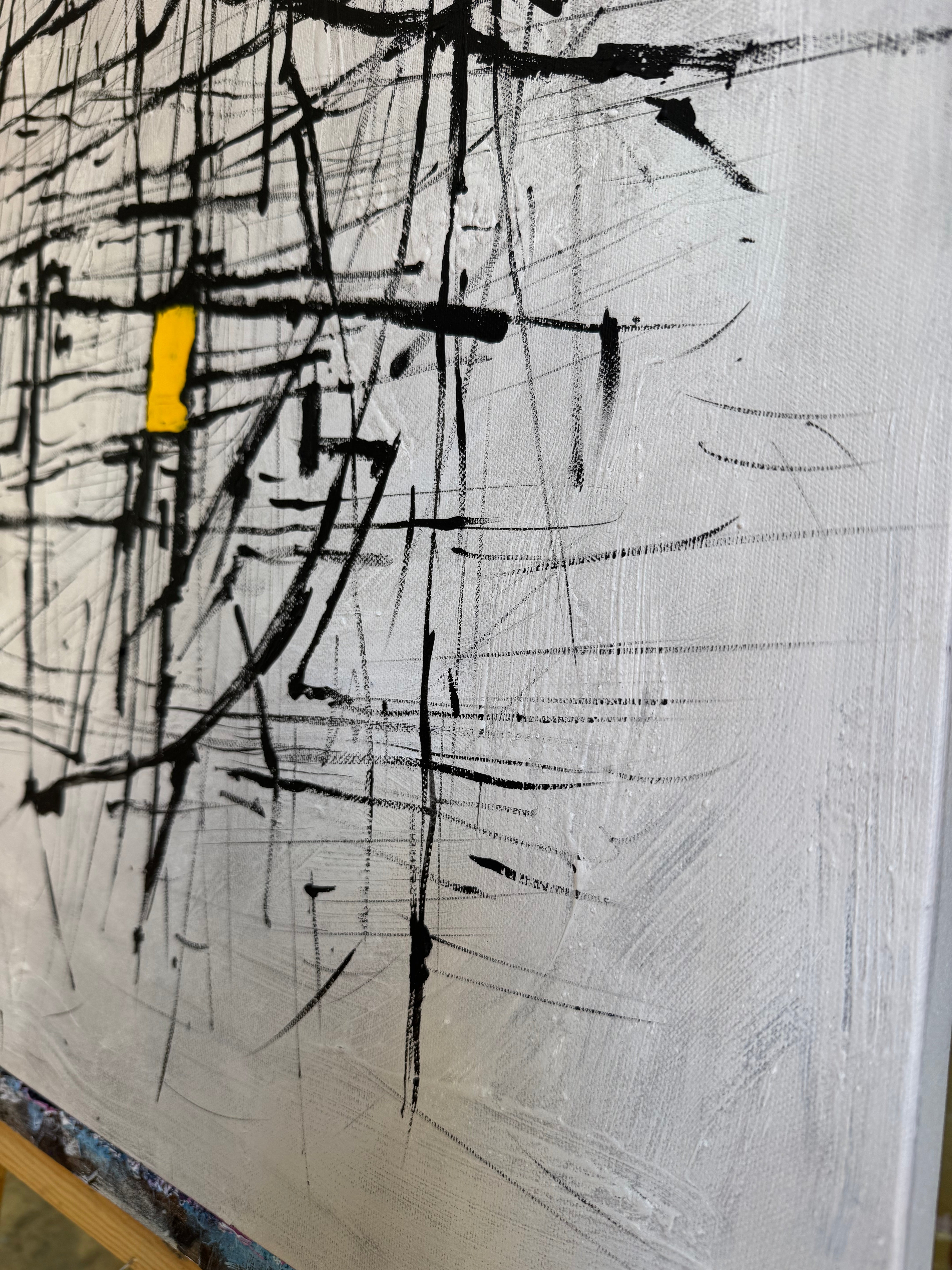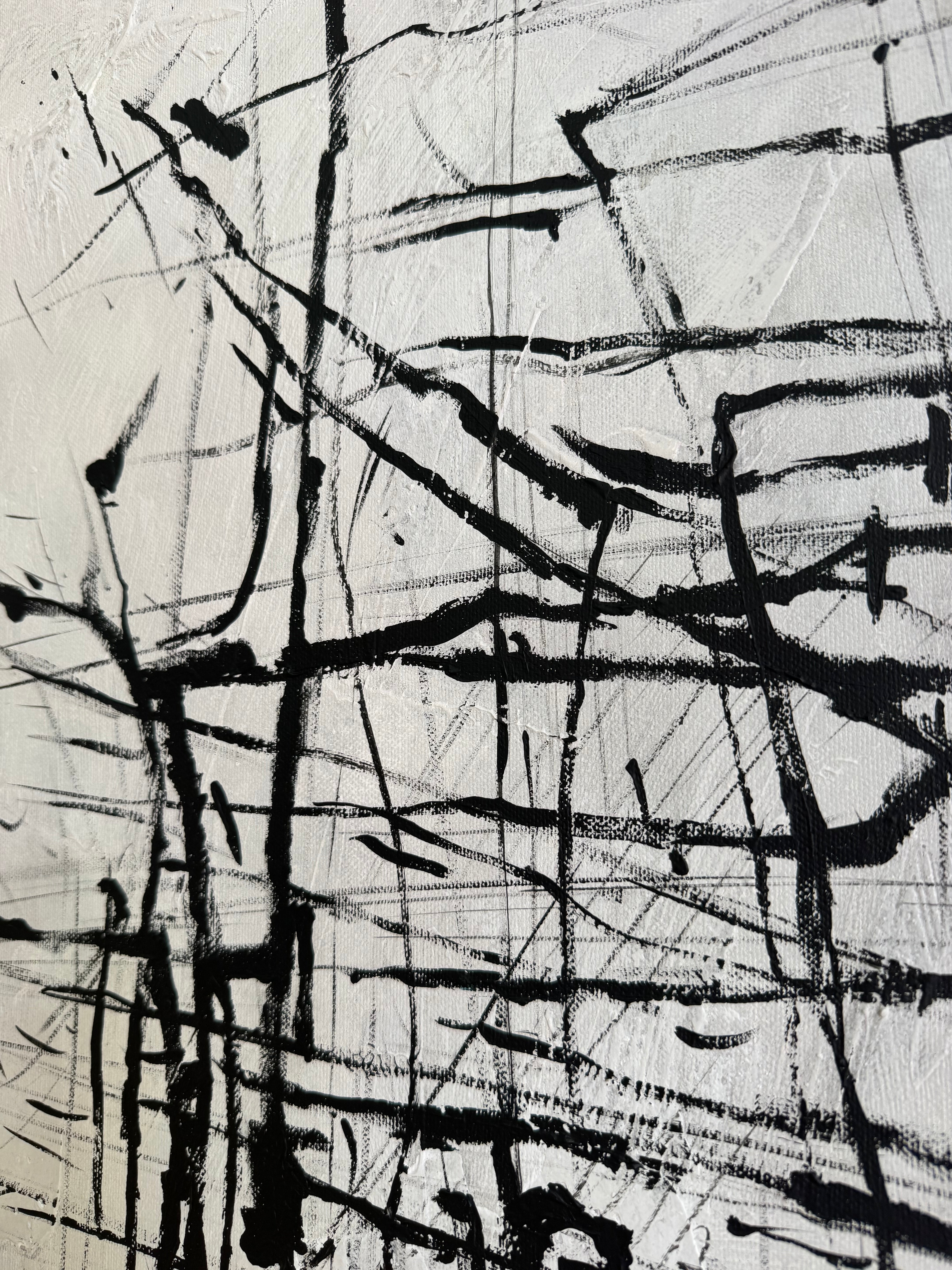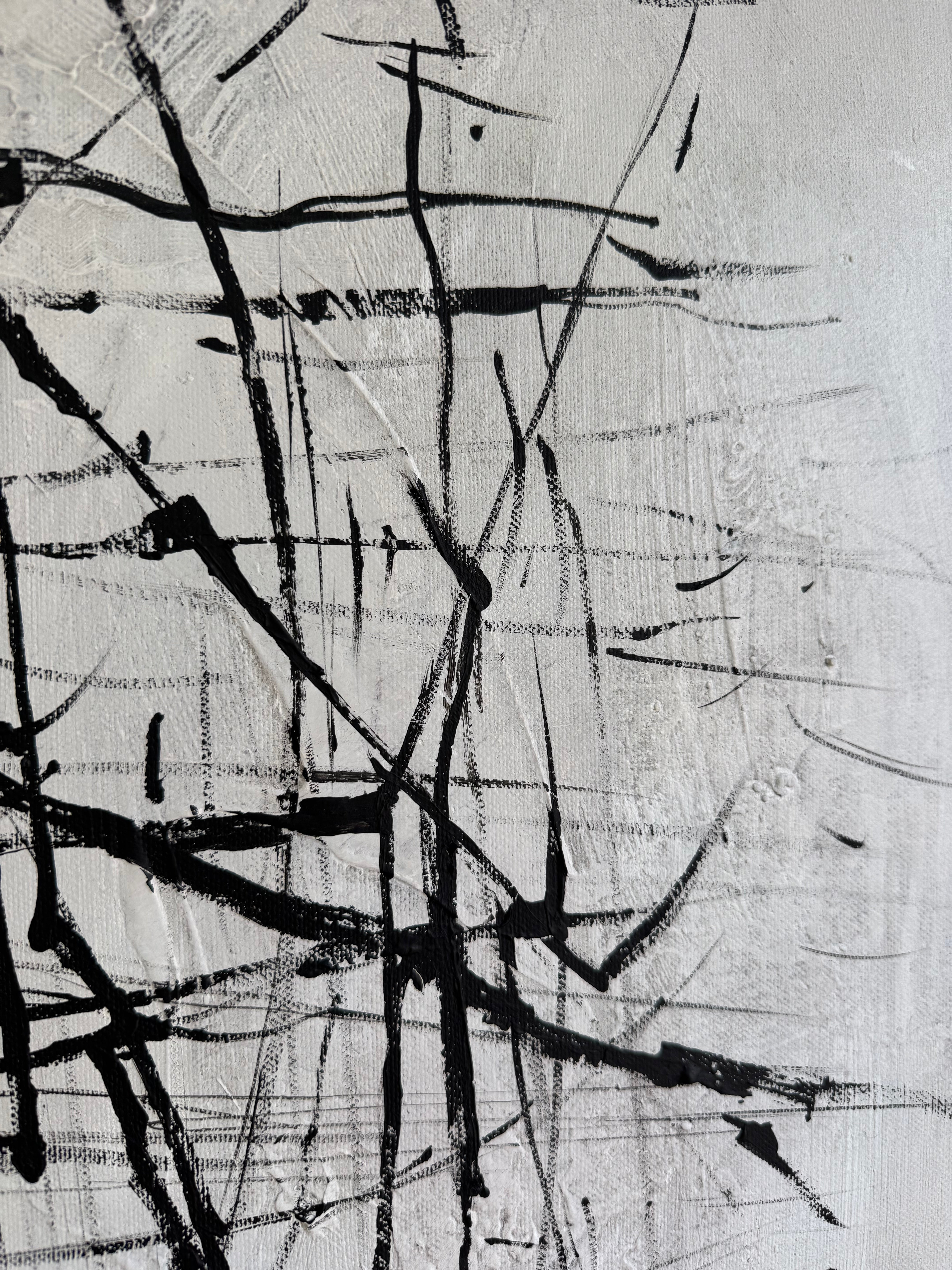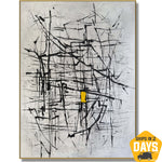 "Geometric Balance" is a striking black-and-white abstract painting that embodies harmony through bold geometric forms and rich texture. Its minimalist yet dynamic composition creates a sense of order and rhythm, where contrasting tones interact with precision. The interplay of light and shadow adds depth, making it a captivating centerpiece for any modern space—be it home or office. A statement of balance, simplicity, and sophistication.