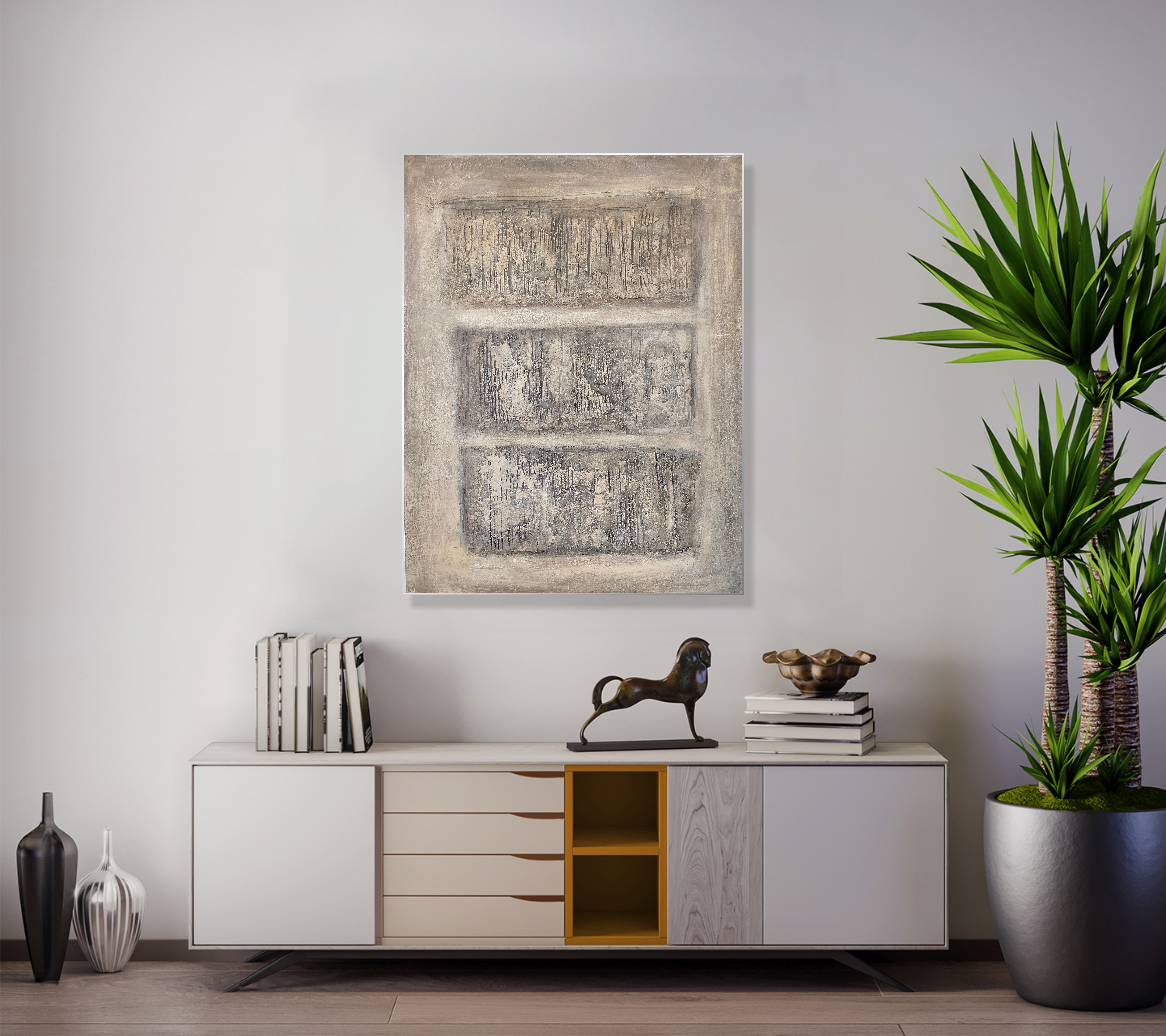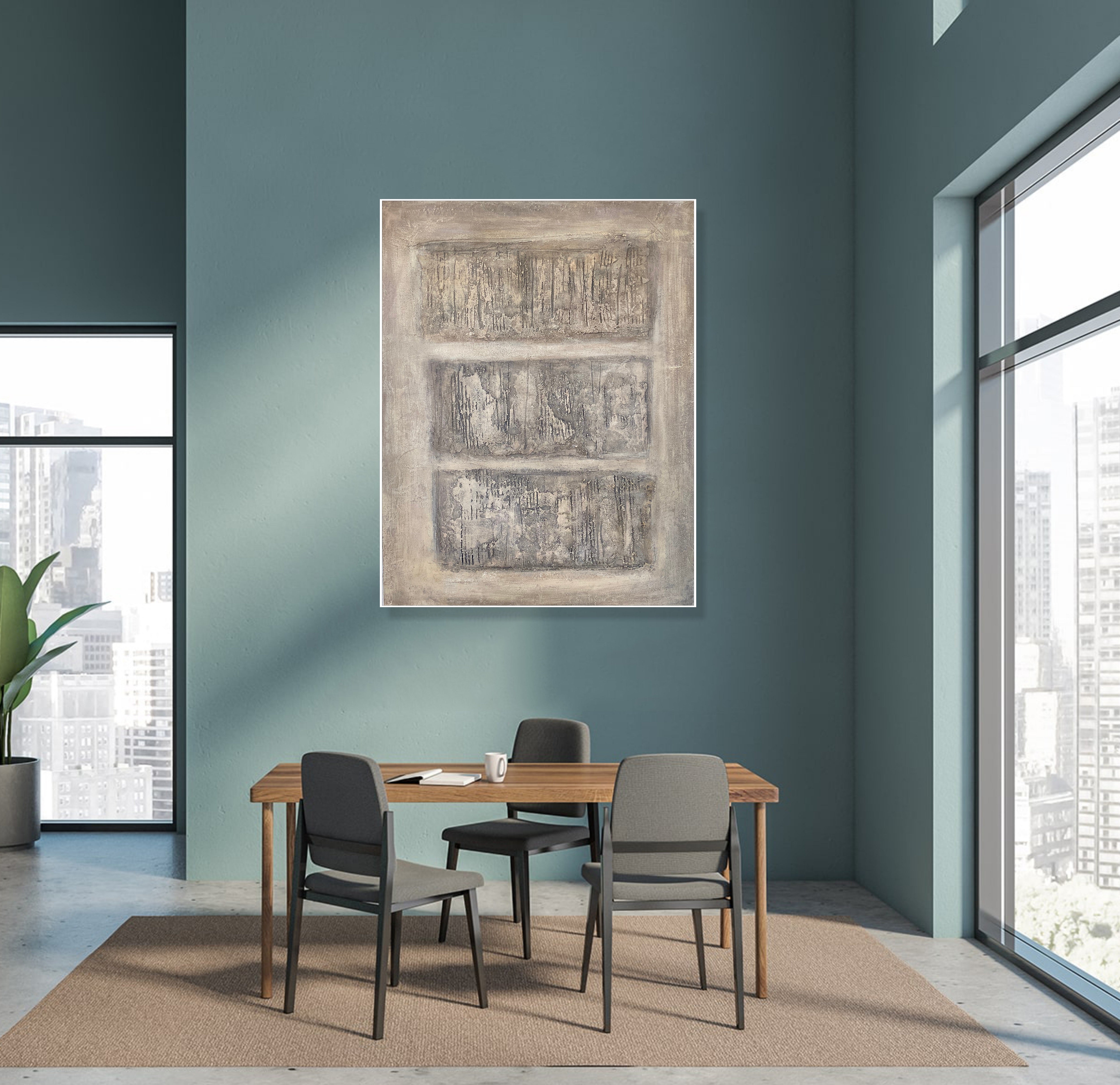 Transform your space with this handcrafted neutral-toned abstract painting featuring layered textures and earthy tones of beige and gray. Perfect for minimalist and modern interiors, this original artwork brings serenity and warmth to your living room or office. Its textured acrylic design adds depth and sophistication to any décor. Elevate your wall art collection with this one-of-a-kind piece, tailored for art enthusiasts seeking natural and neutral aesthetics.