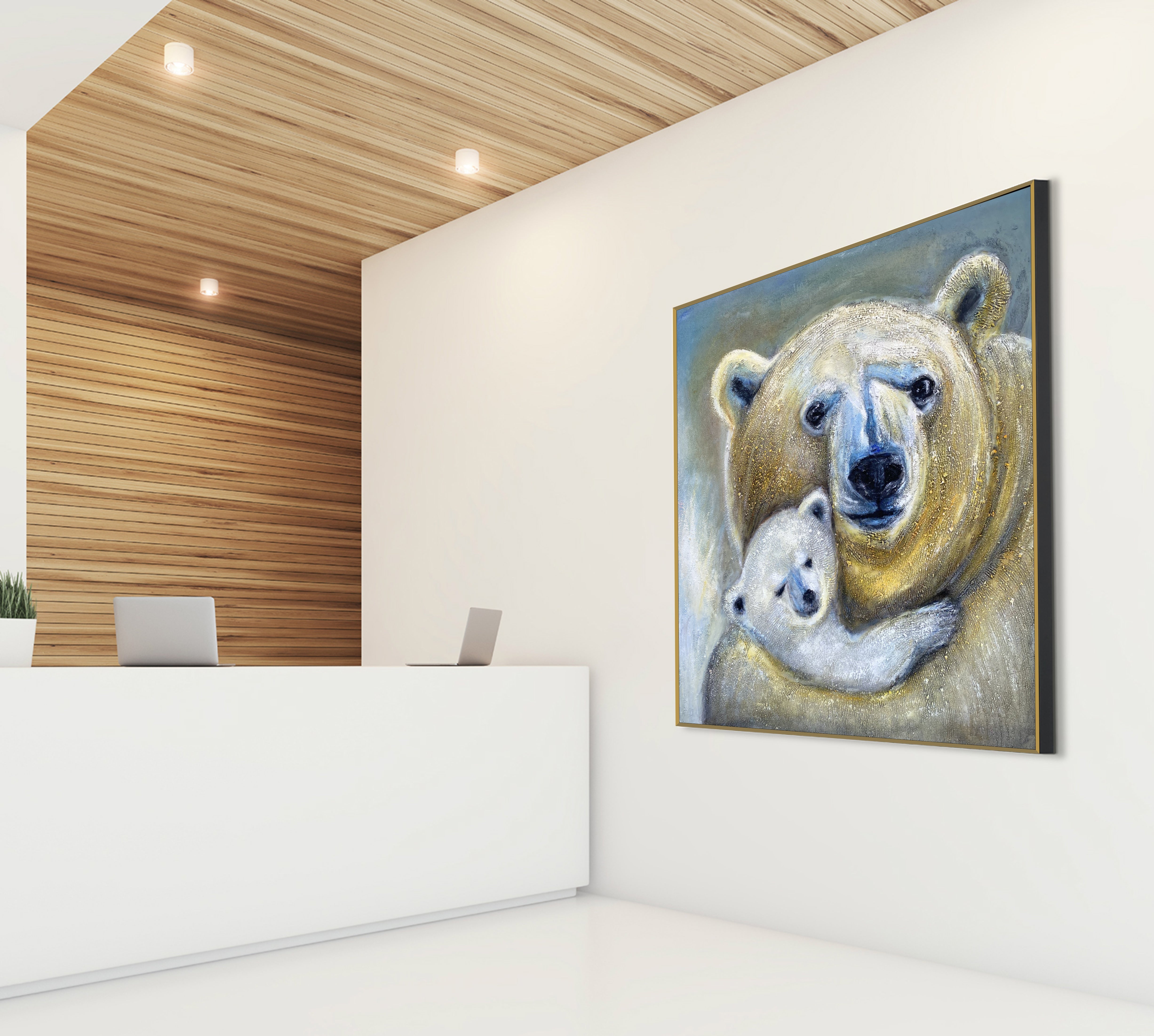 Polar Bear Painting Animal Canvas Wall Art Wildlife Mother and Cub Painting Textured Art Gift for Nature Lovers Handmade Cozy Home Decor | MOTHER CARE | Trend Gallery Art Great Britain – Trendgallery.co.uk