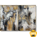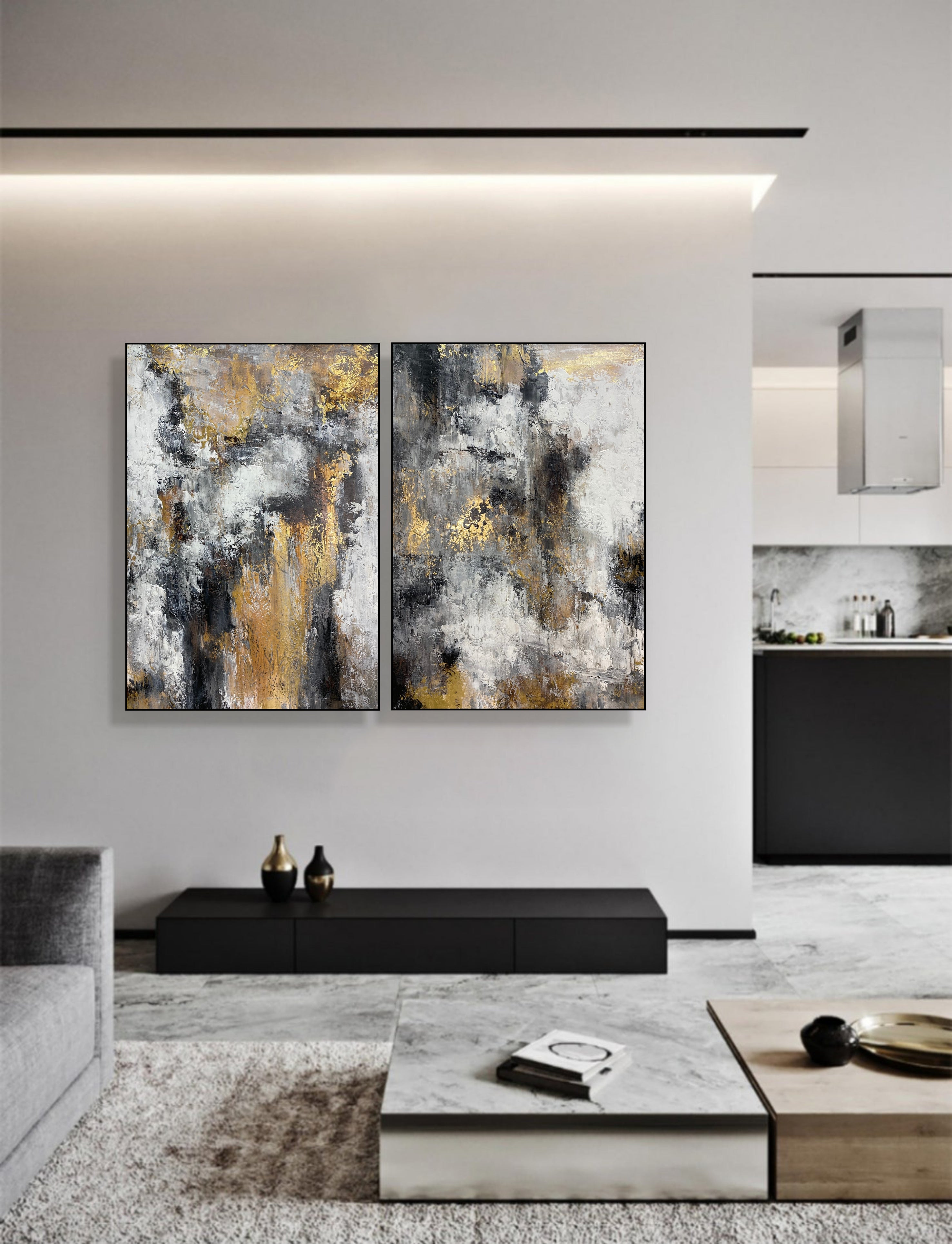 Set of 2 Gold Abstract Paintings Large Original Textured Wall Art Modern Hand-Painted Diptych Living Room Art Office Interior Decor ENERGY FLOWS 46x60" | Trend Gallery Art Great Britain – Trendgallery.co.uk